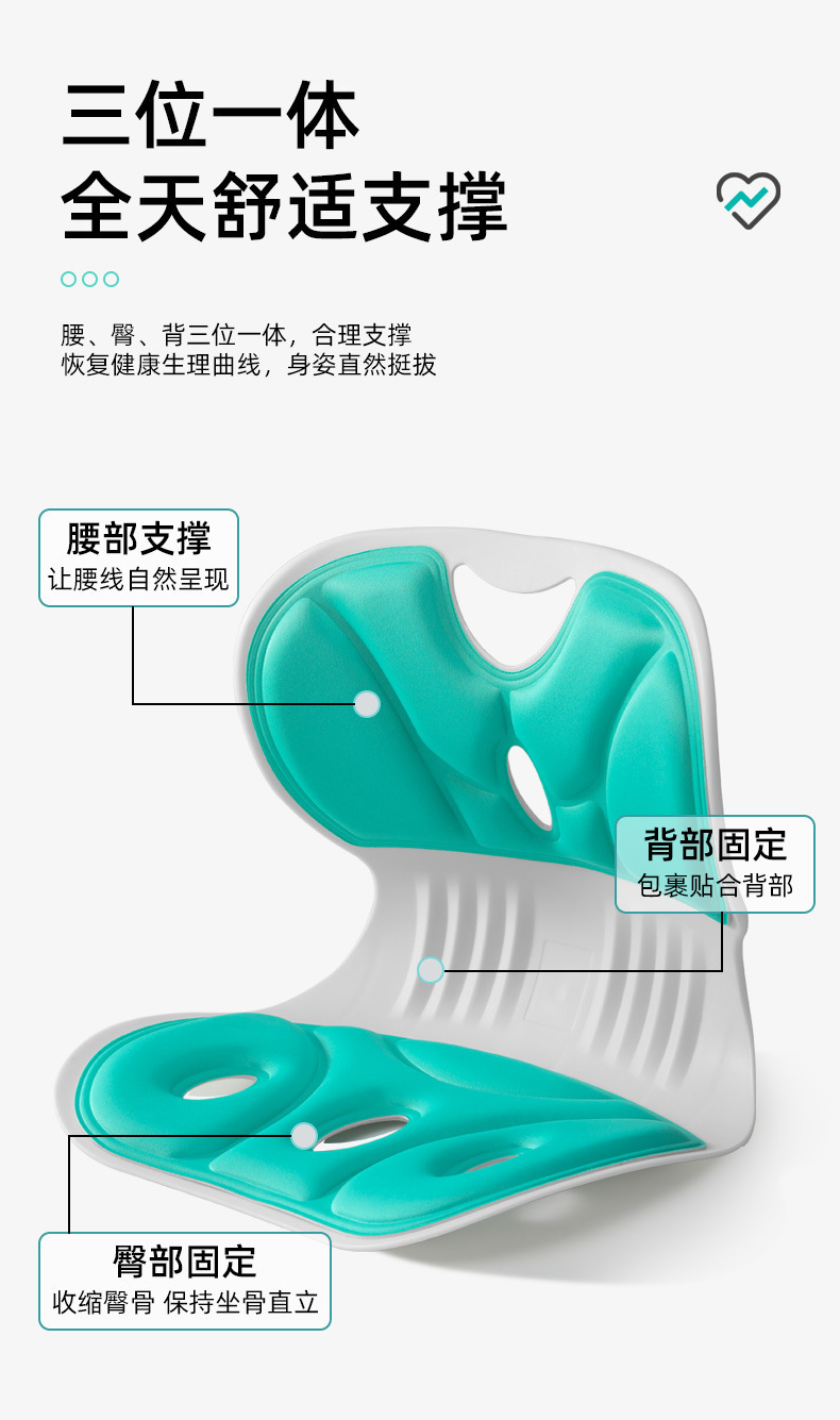 新款护腰坐姿椅儿童矫正坐垫办公室座椅靠垫一体久坐神器护脊美臀