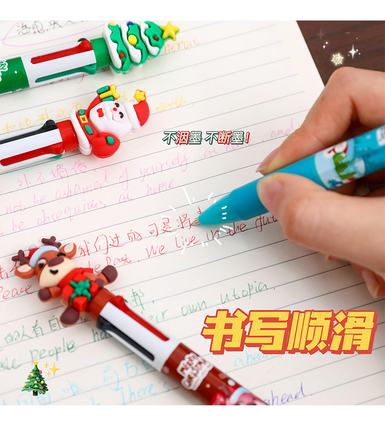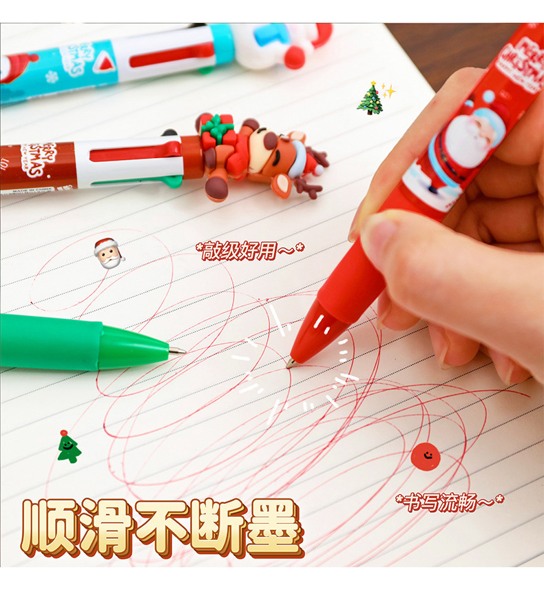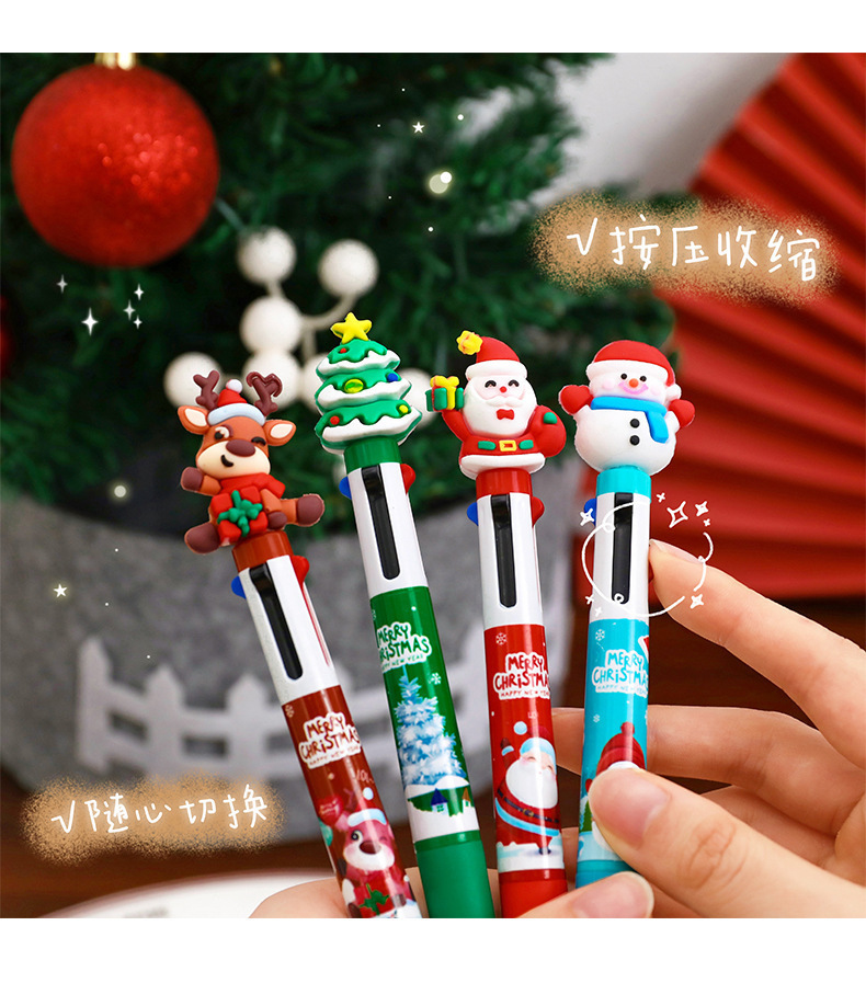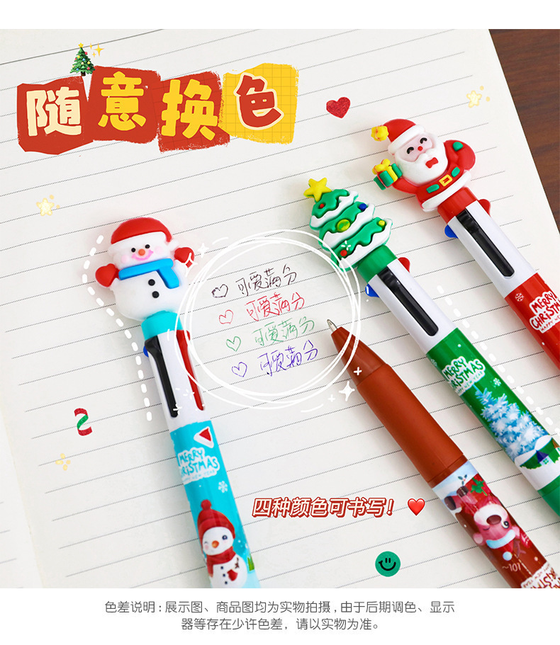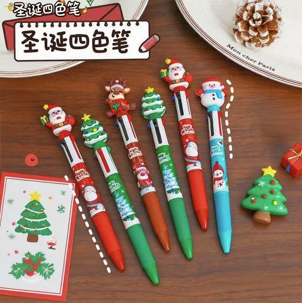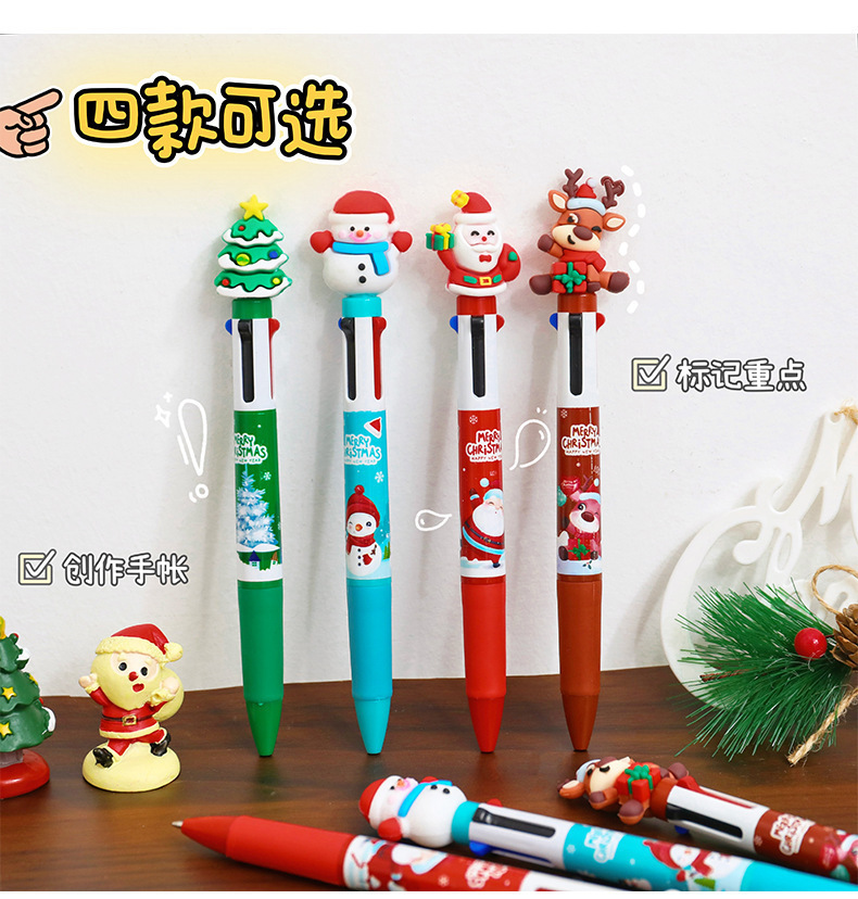 跨境圣诞四色笔可爱卡通圣诞老人多色中性笔划高颜值文具伴手礼