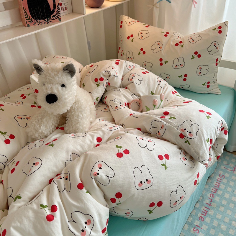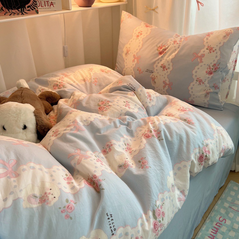 A类母婴级纯棉四件套ins小清新全棉床单被套床笠款学生宿舍三件套