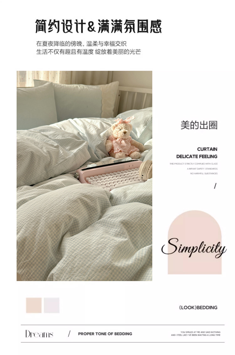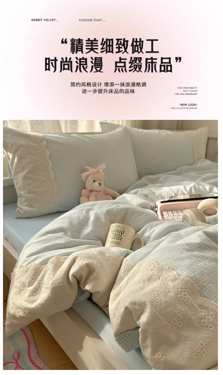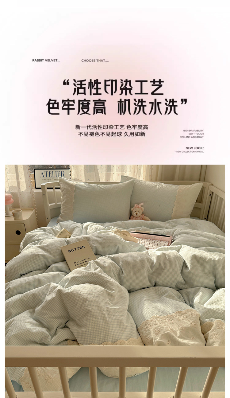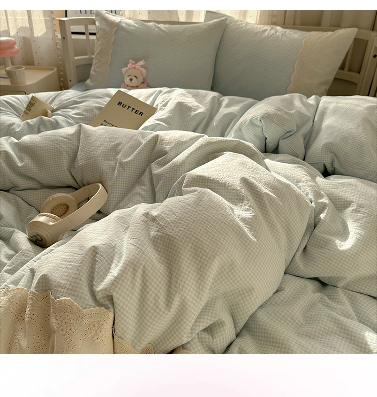 A类法式床上用品纯水洗棉四件套双层纱宿舍全高端棉被套床单床笠