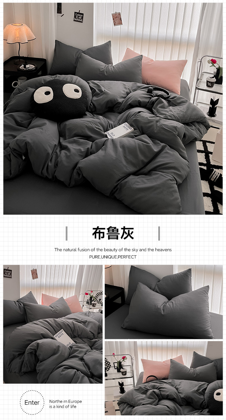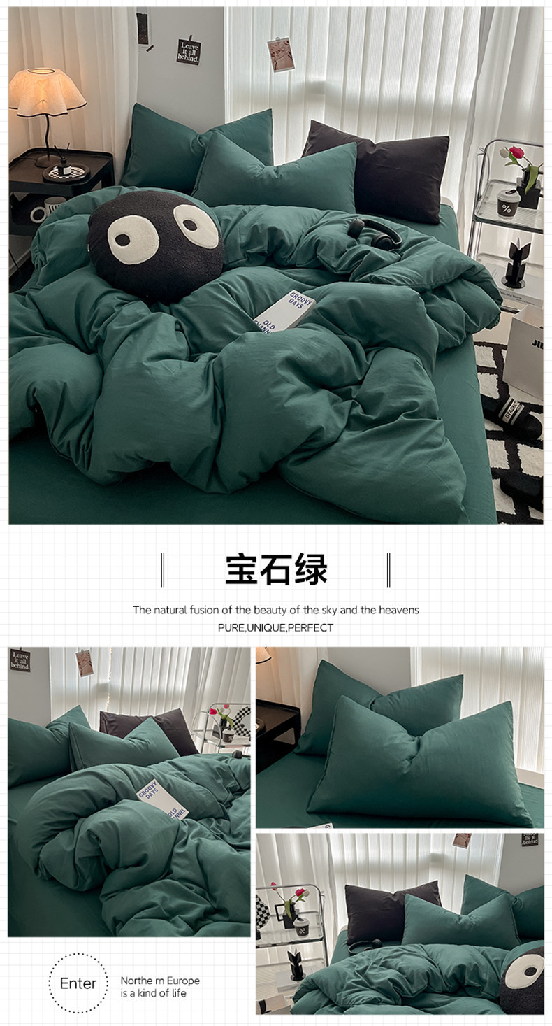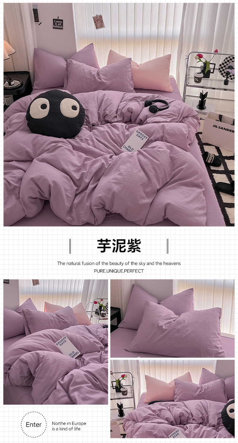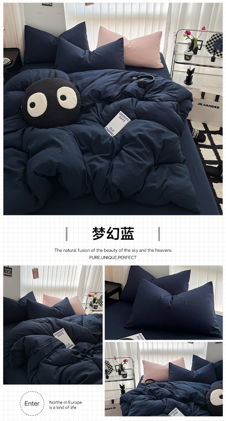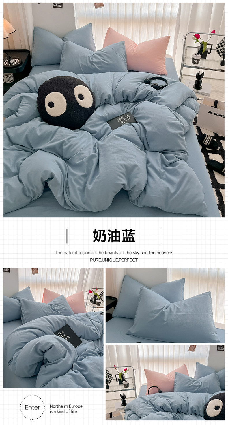 new class a washed cotton solid color four-piece set skin-friendly ins student dormitory bed sheet quilt cover bedding