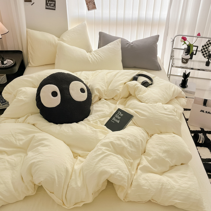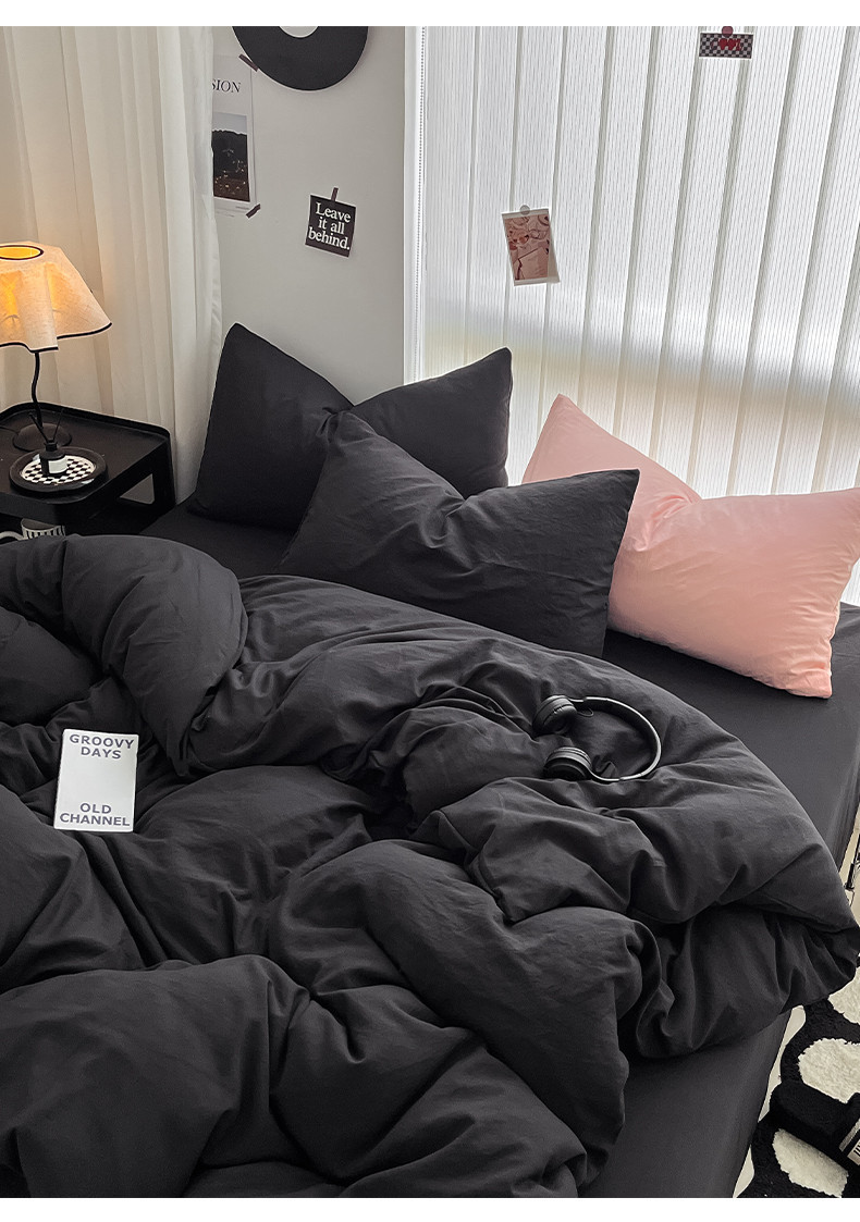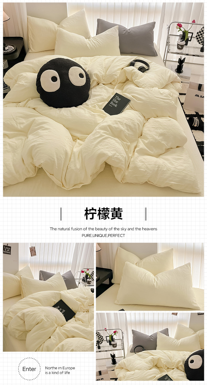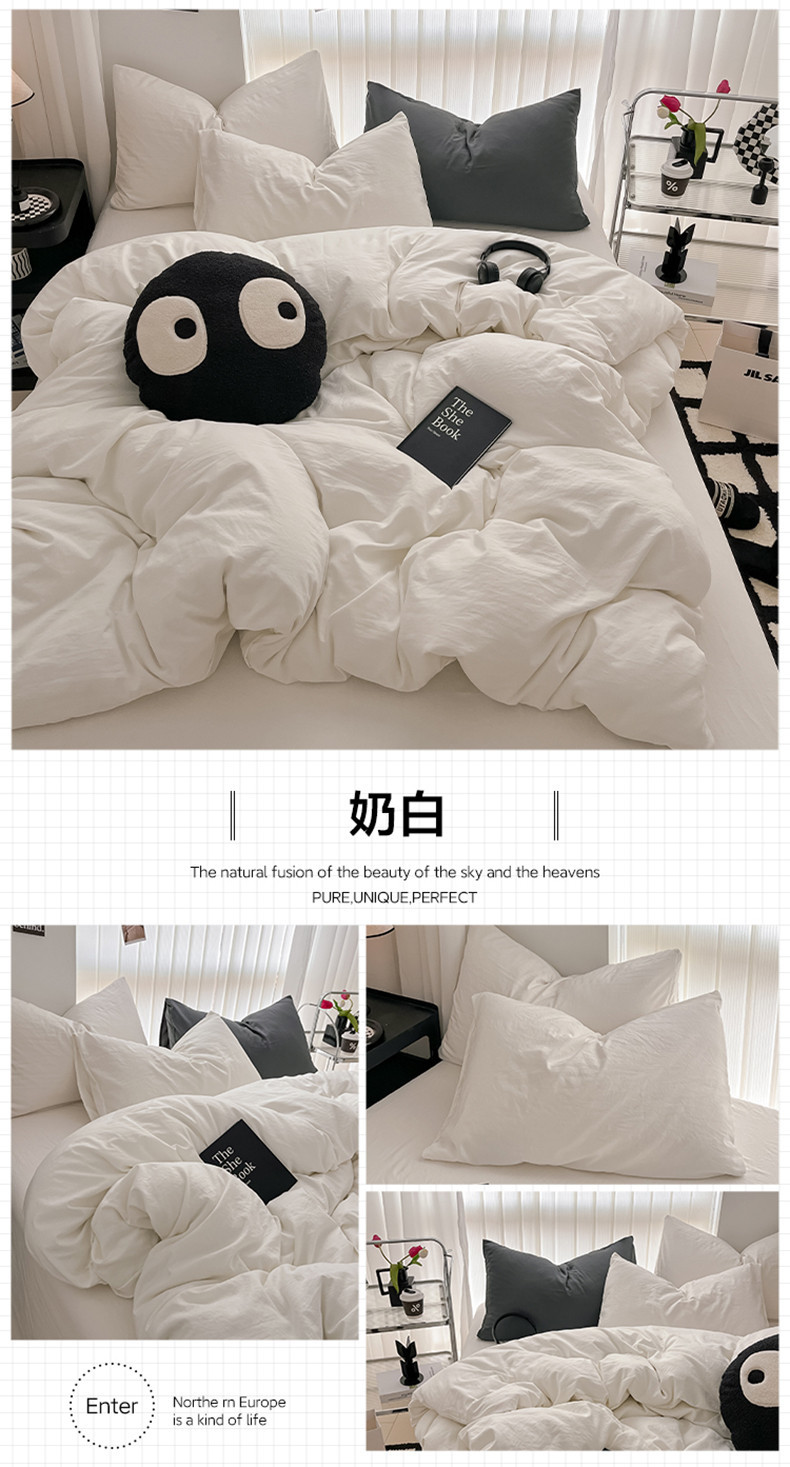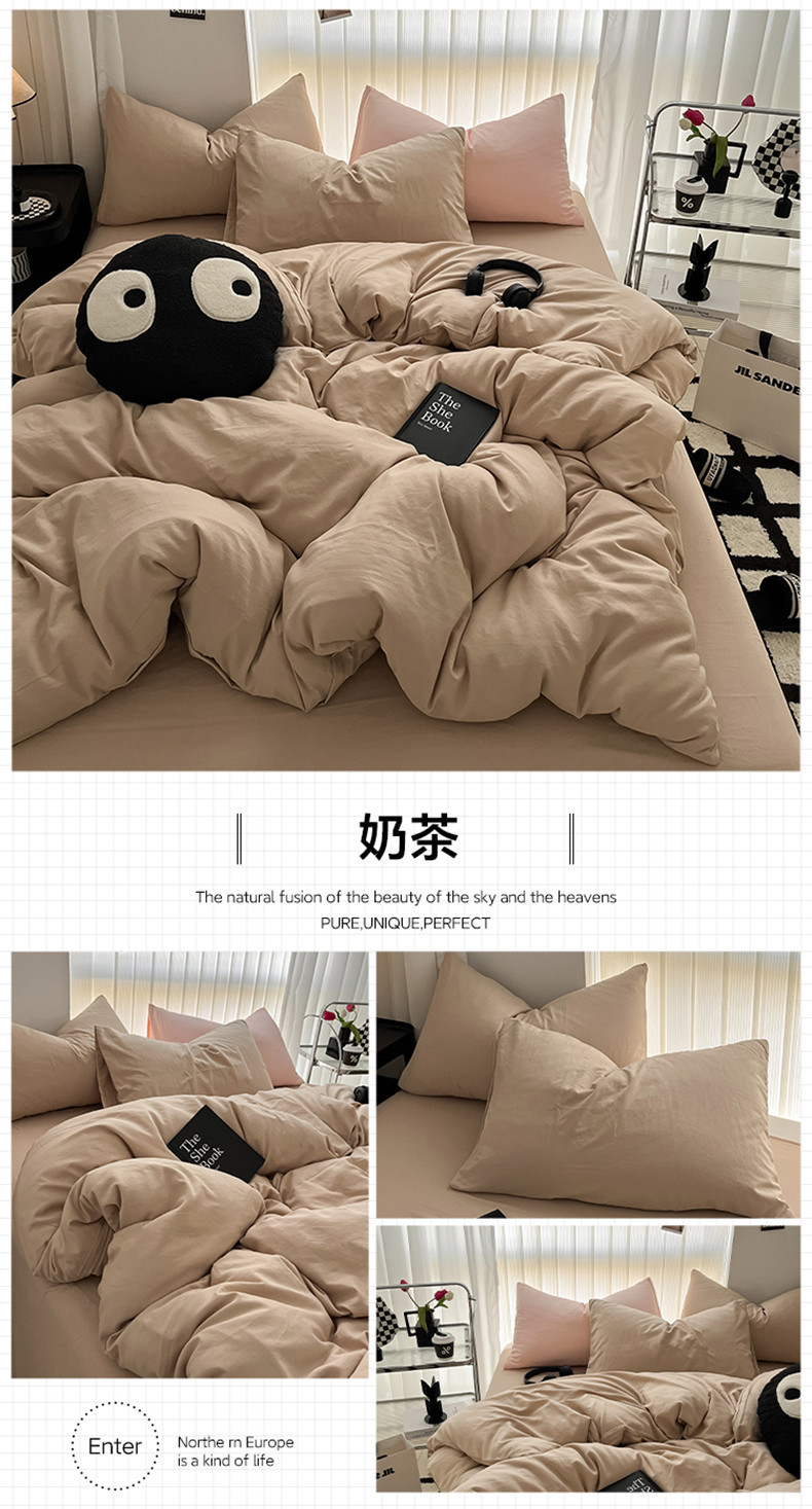 new class a washed cotton solid color four-piece set skin-friendly ins student dormitory bed sheet quilt cover bedding