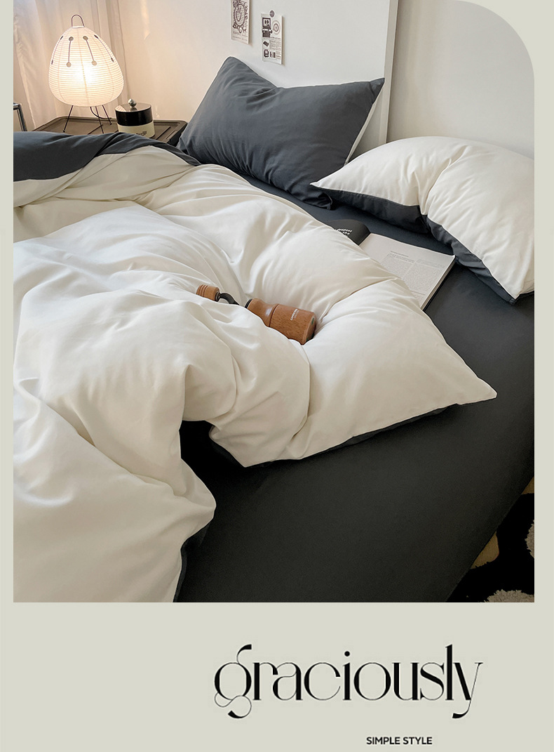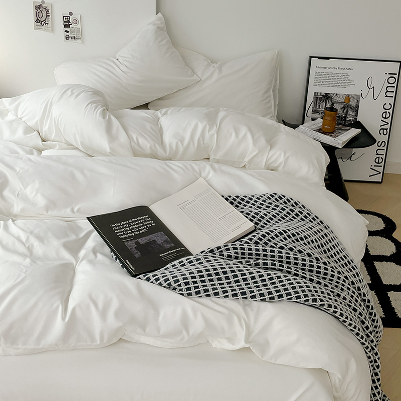 ins裸睡纯棉四件套A类小清新纯色全棉床单被套床上用品学生三件套