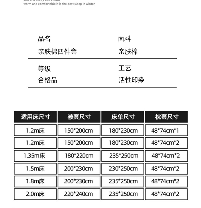 | 1.8m fitted sheet four-piece set (200 x230cm)(1.8m床笠款四件套(200x230cm)) | USD $15.42 | 88888 set available |
