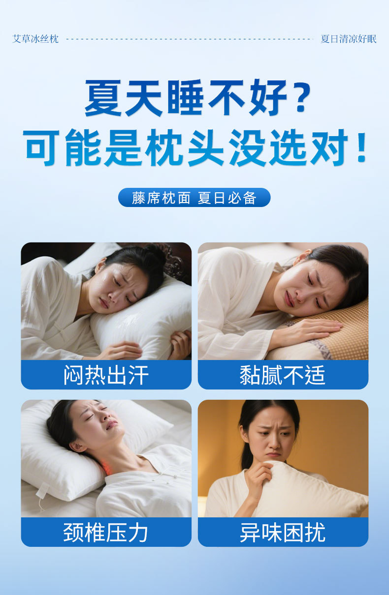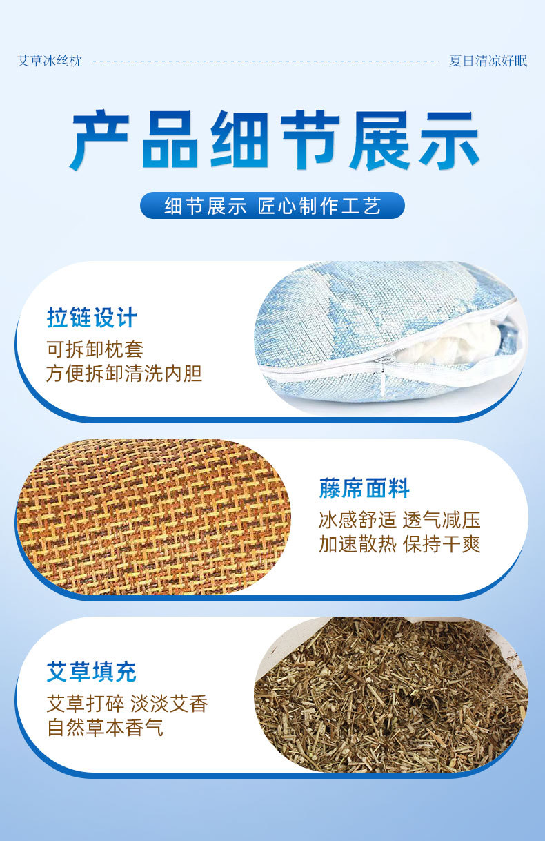 冰丝骨头枕艾草枕夏季家用助睡艾灸枕保健枕纯艾草颈椎枕护颈枕头
