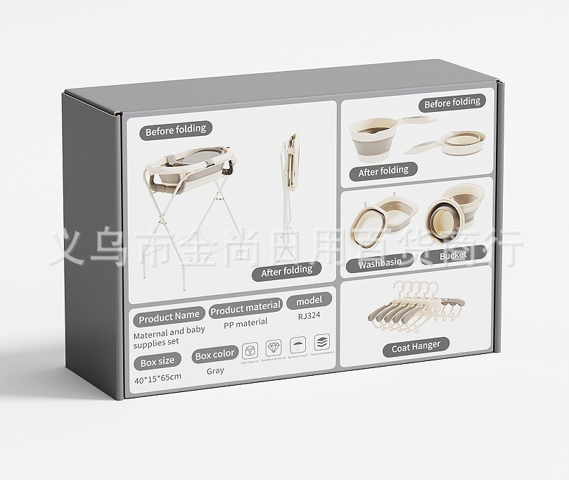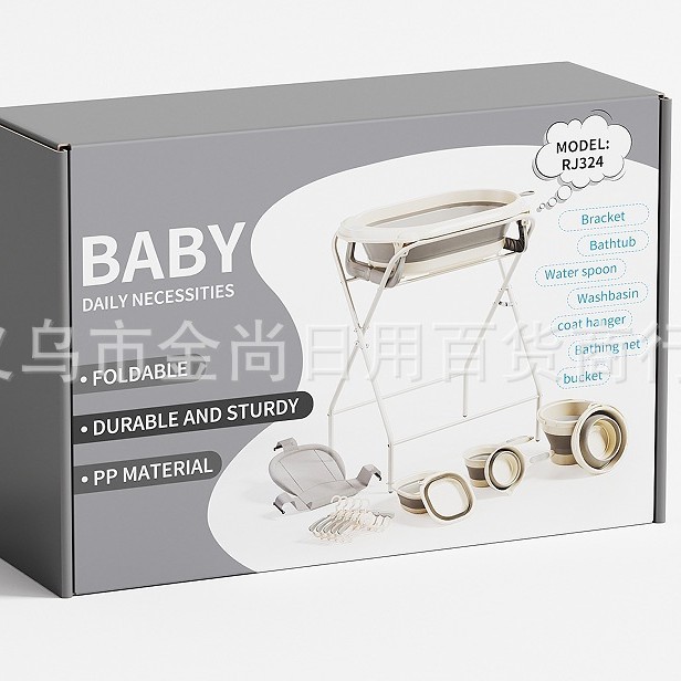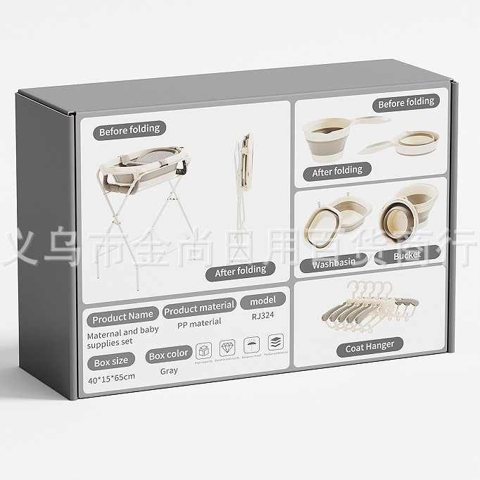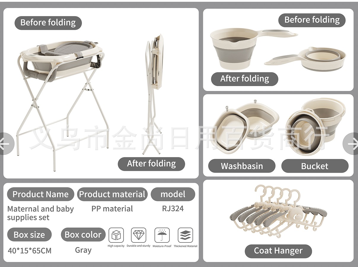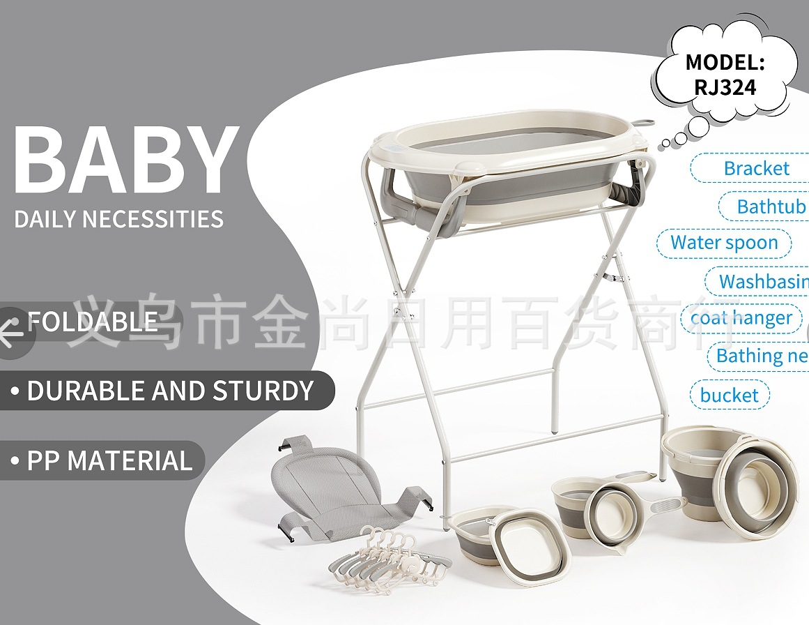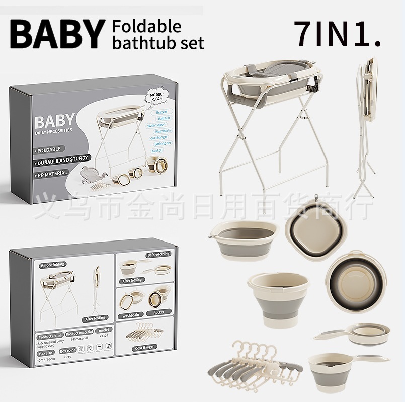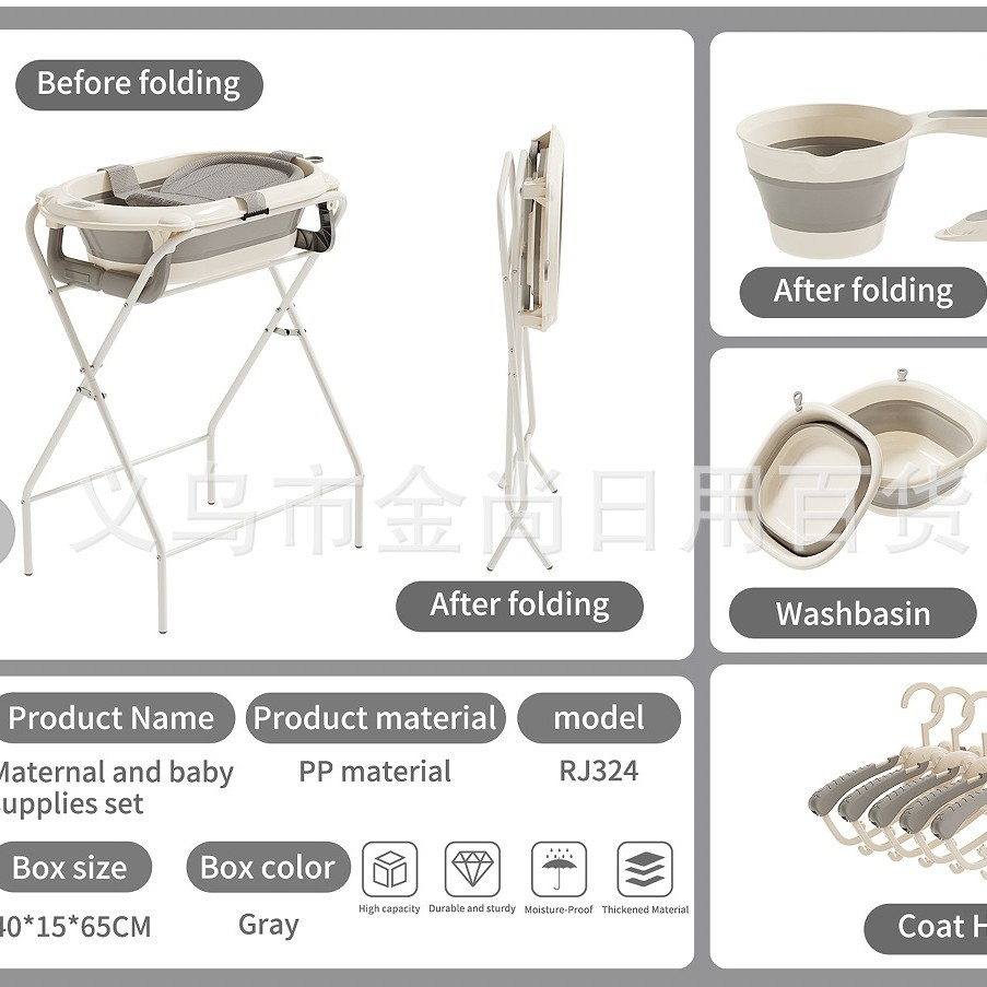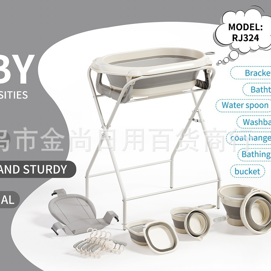 可爱婴儿家用折叠浴盆带架子折叠盆折叠水勺衣架套装浴室专用