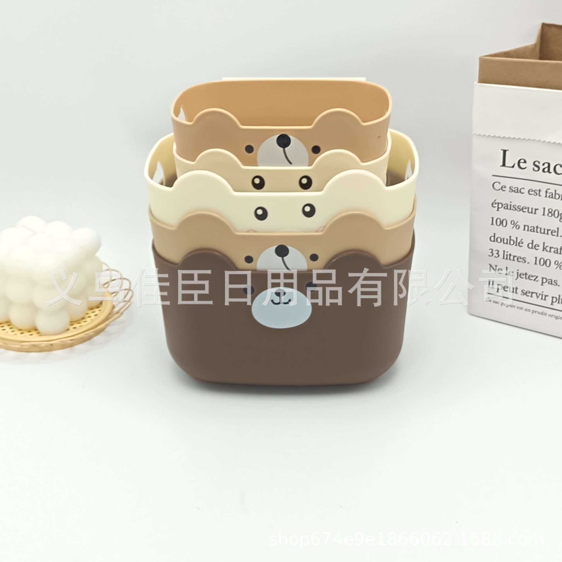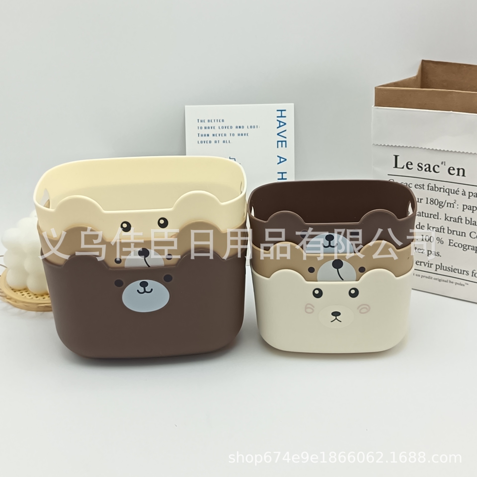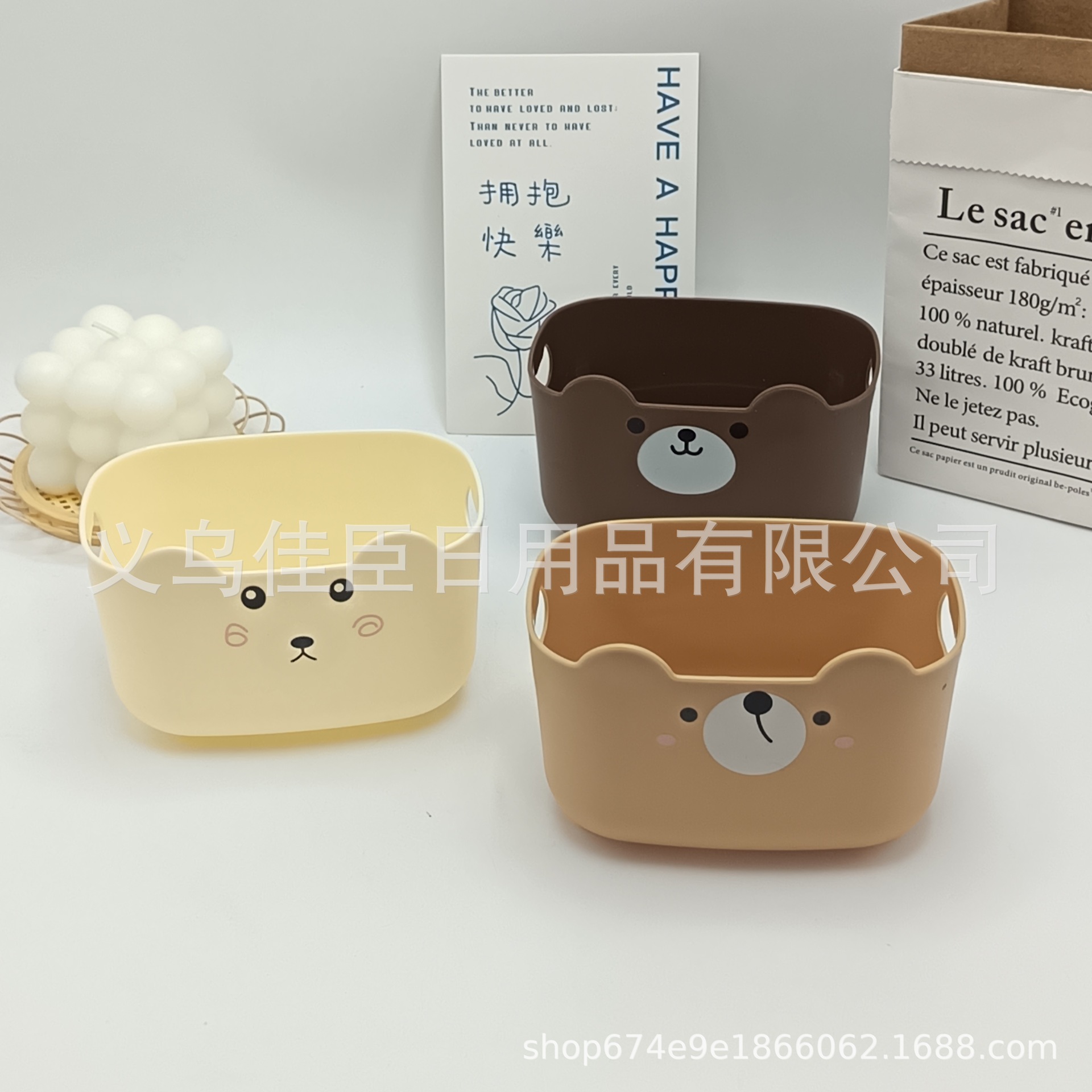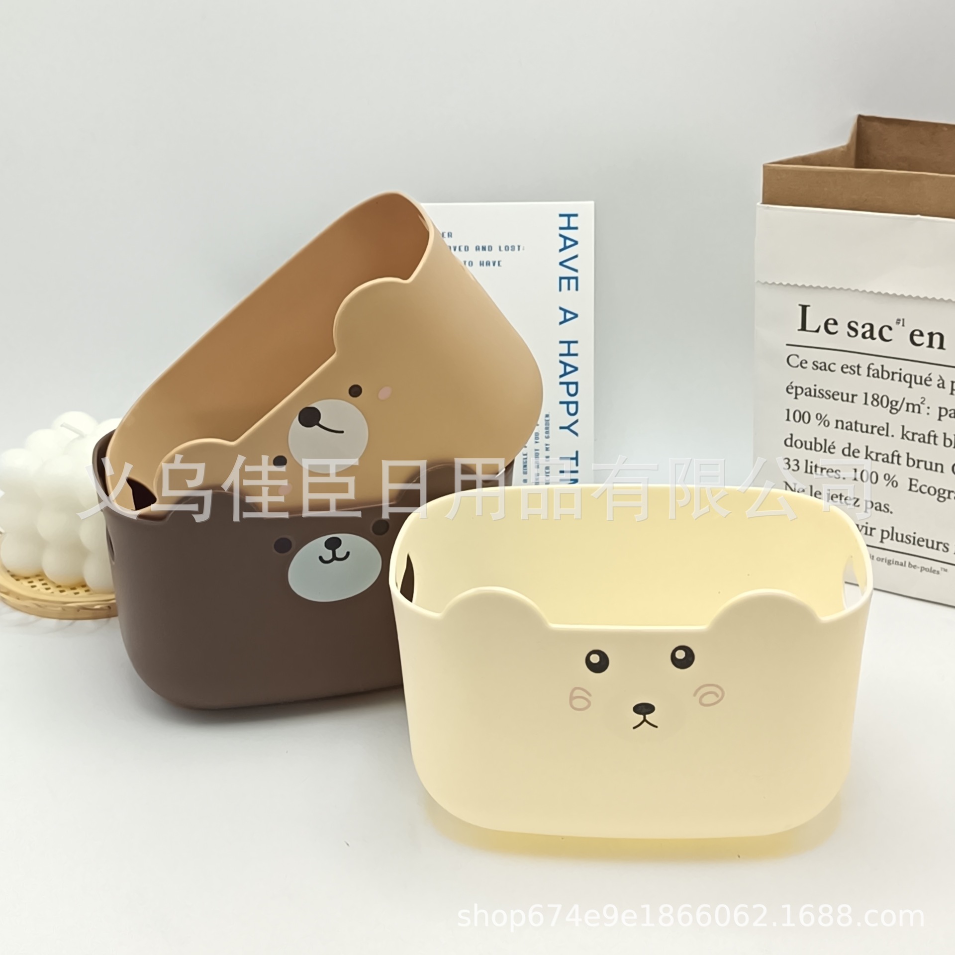 新款卡通熊长方形桌面整理收纳盒客厅桌面杂物收纳盒化妆品收纳盒