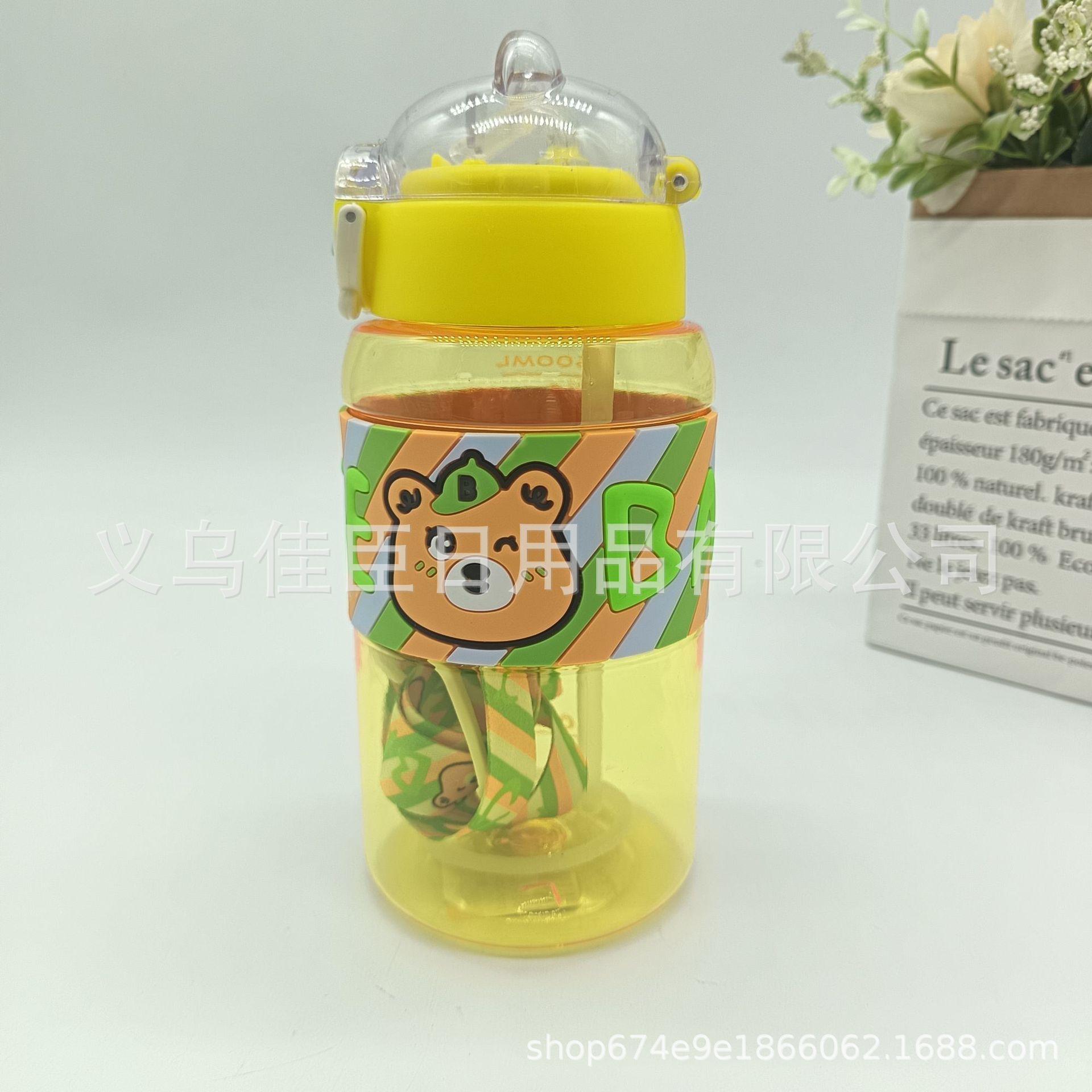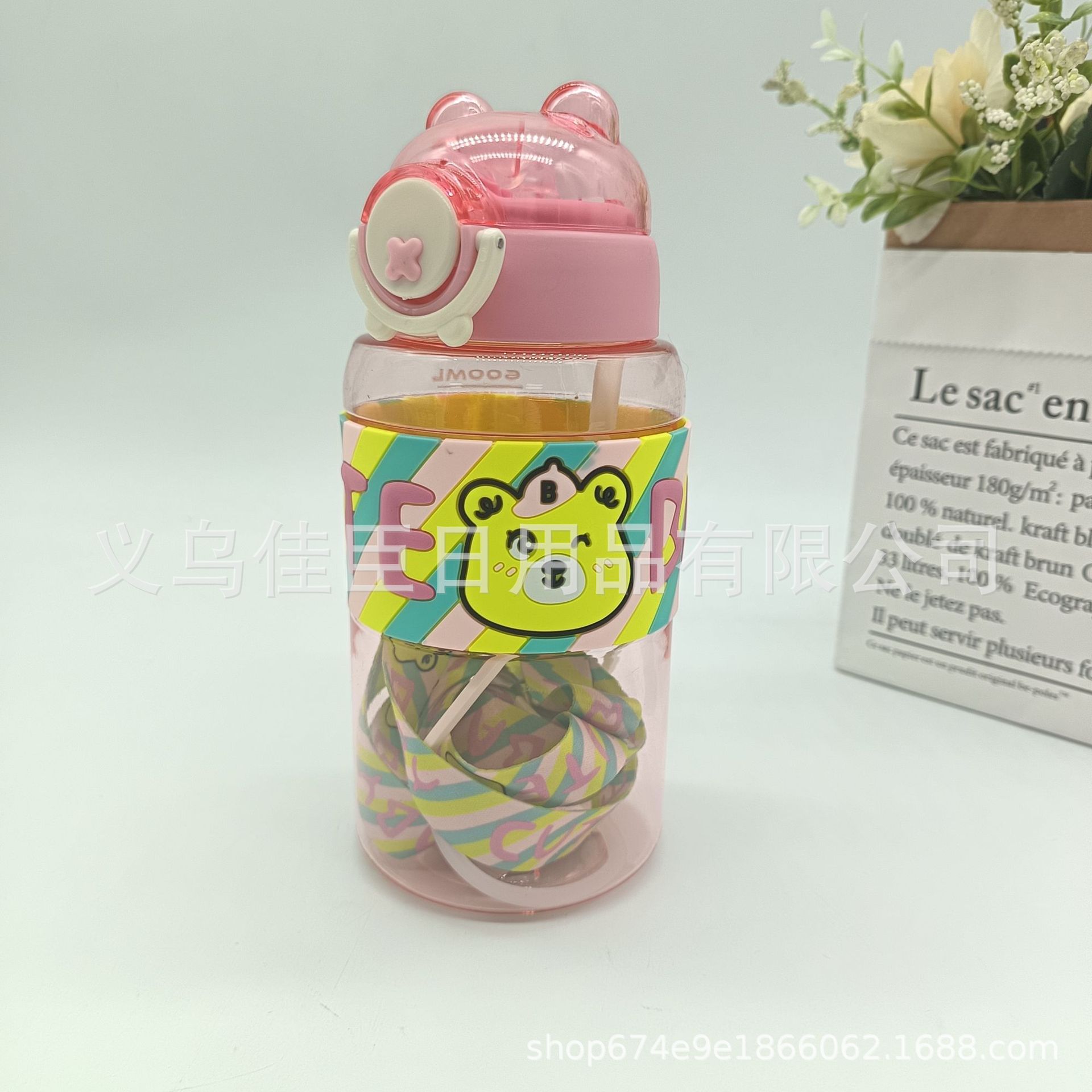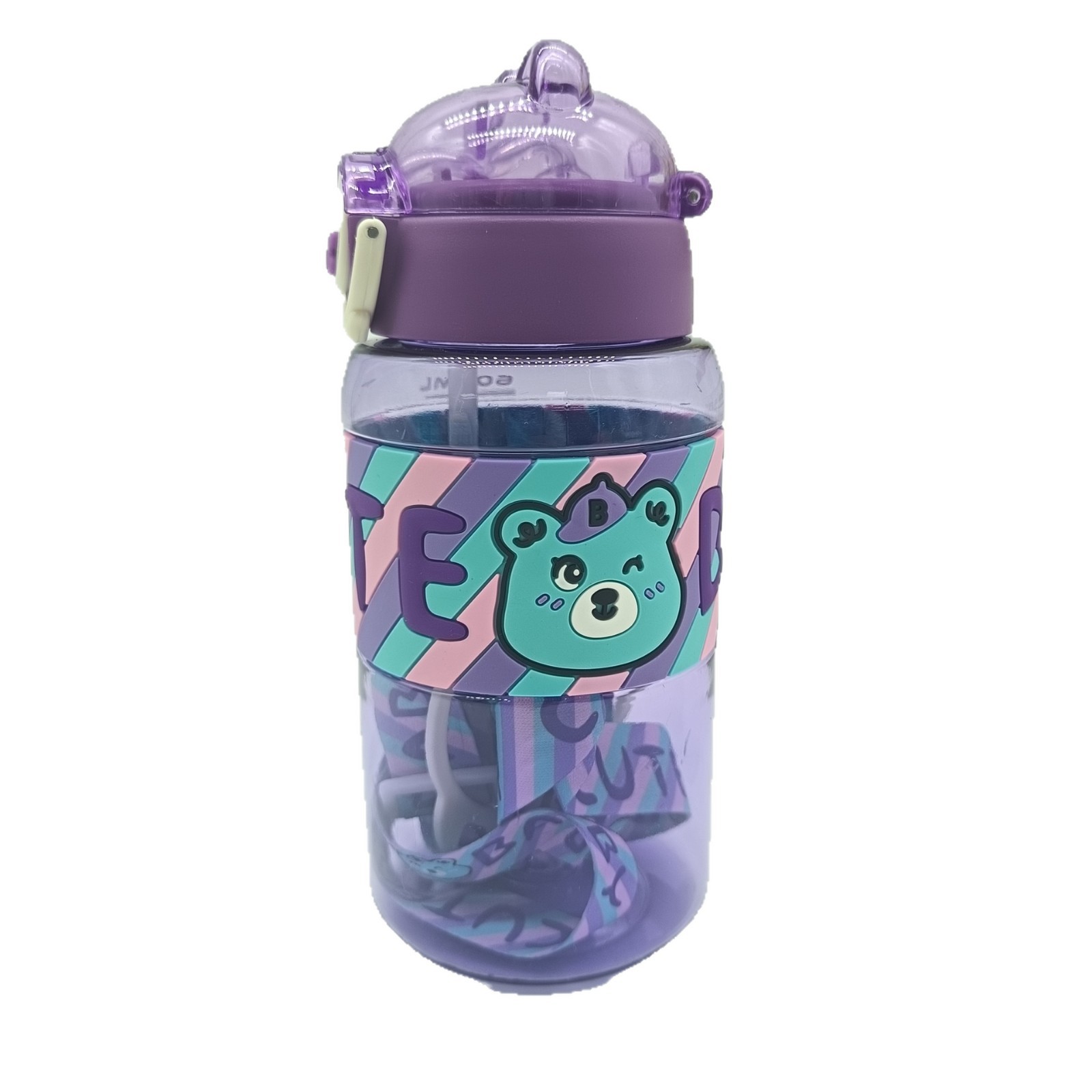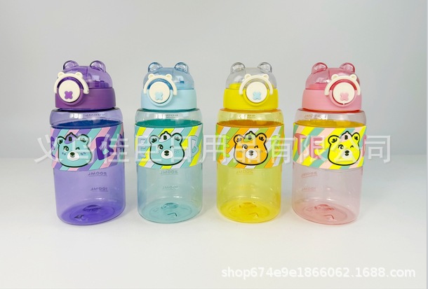 亚马逊夏季新款 太空杯 小熊图案吸管杯塑料学生户外运动防摔水杯