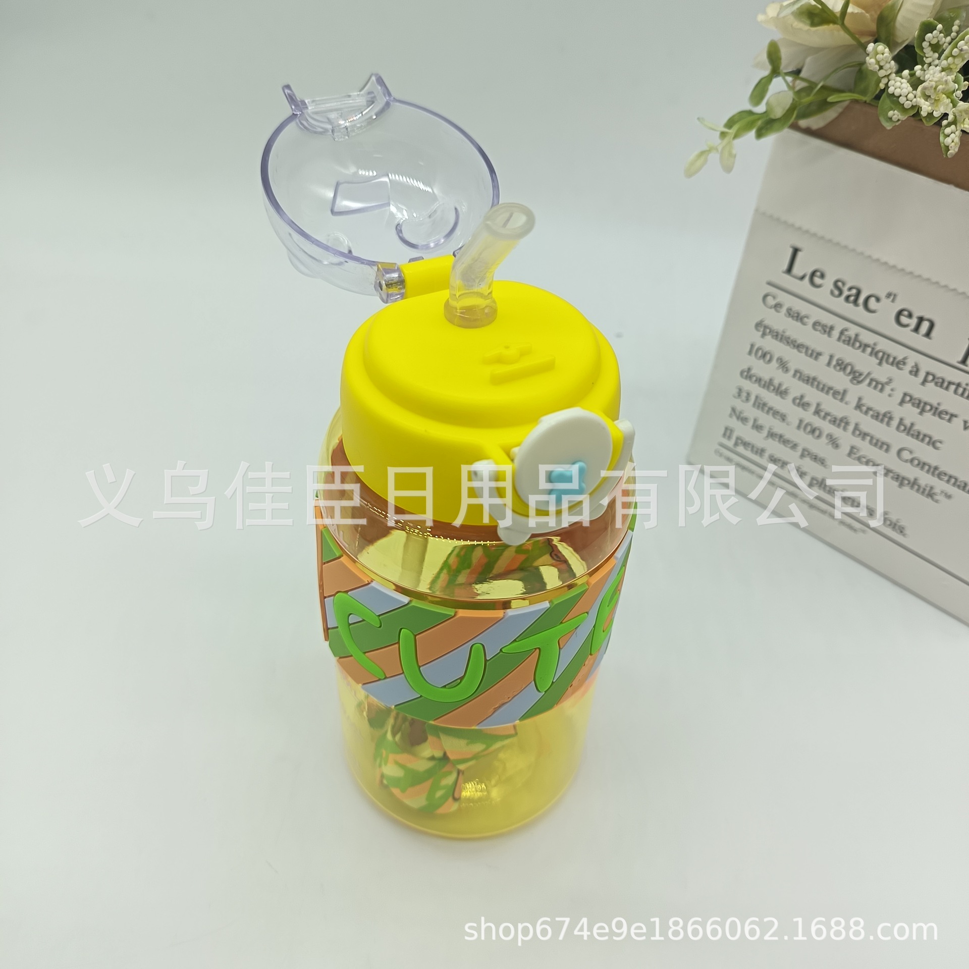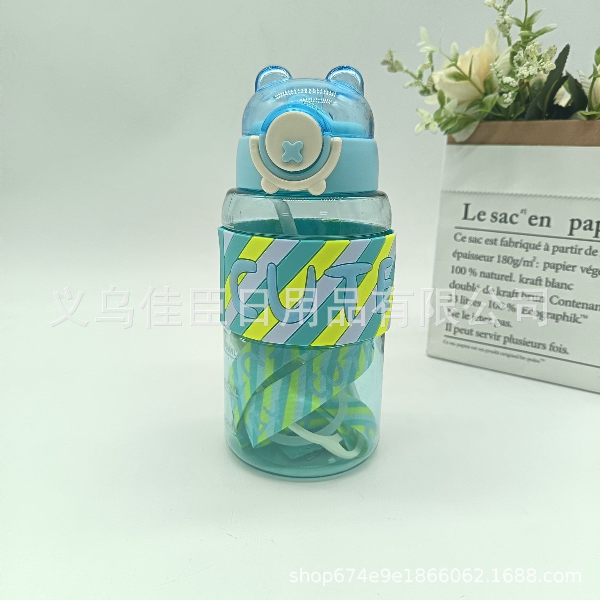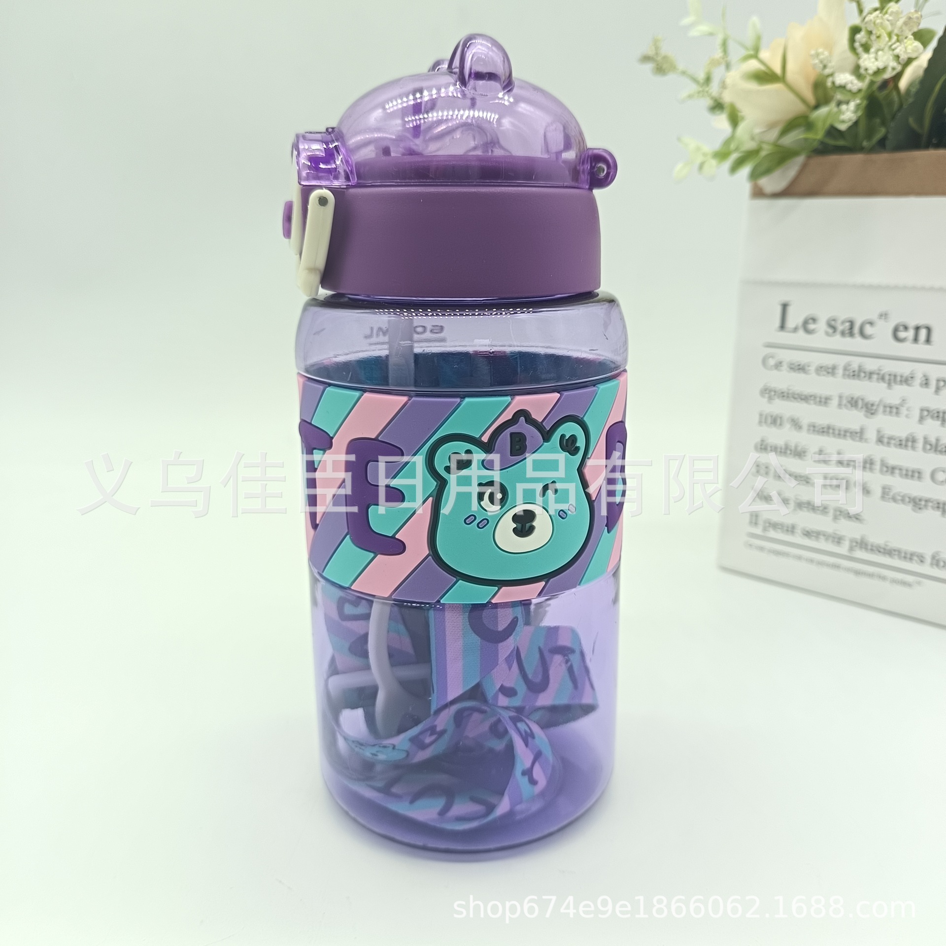 亚马逊夏季新款 太空杯 小熊图案吸管杯塑料学生户外运动防摔水杯