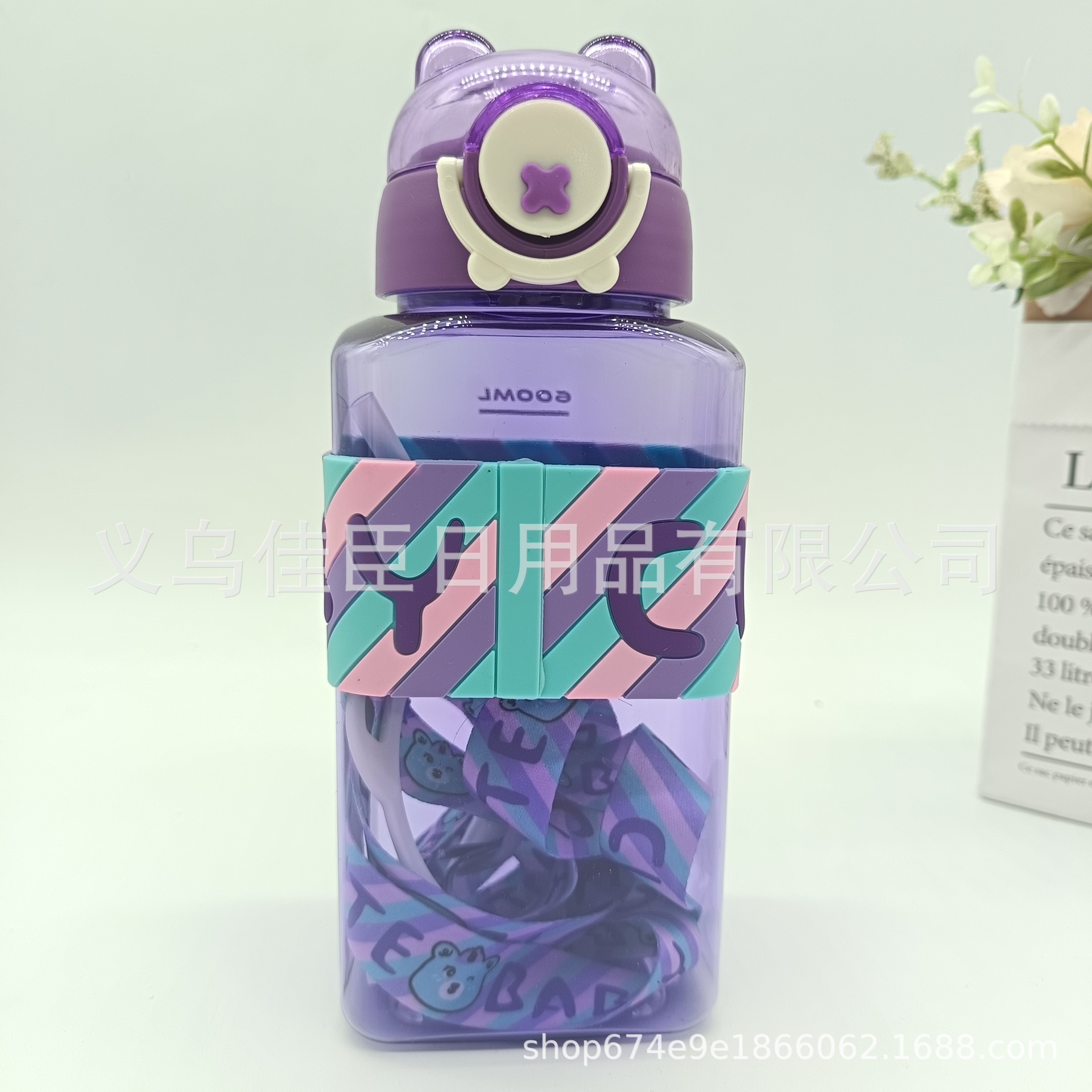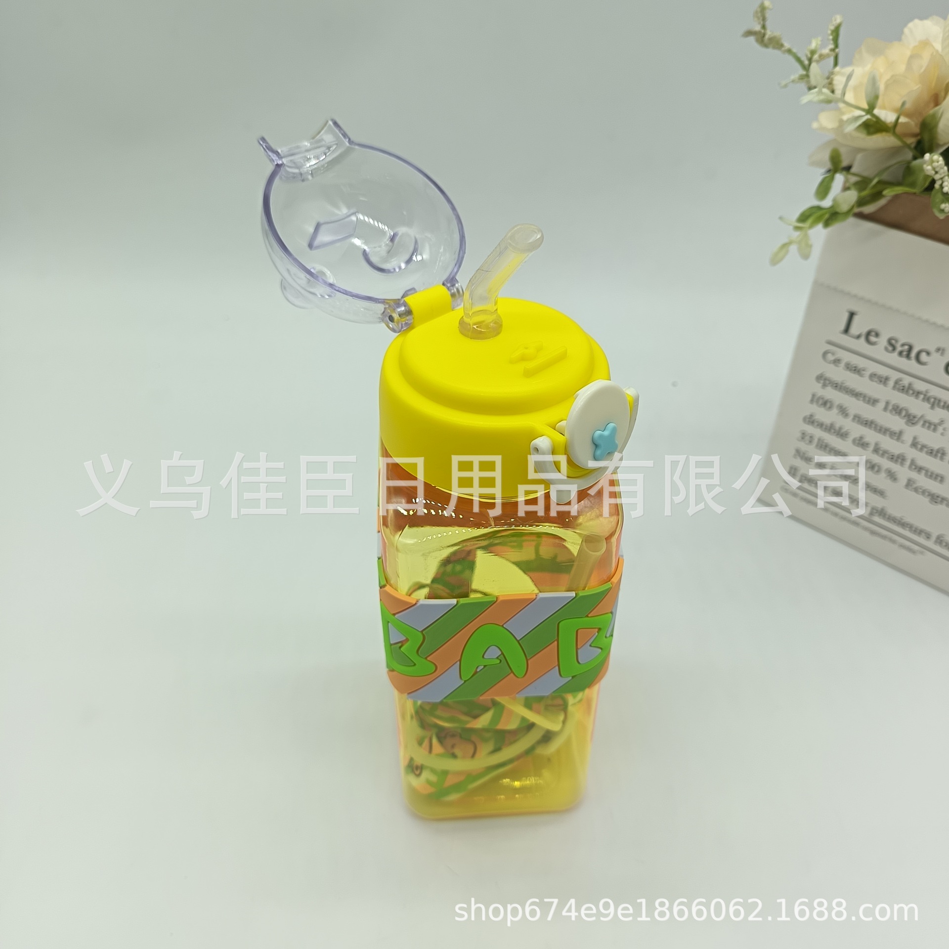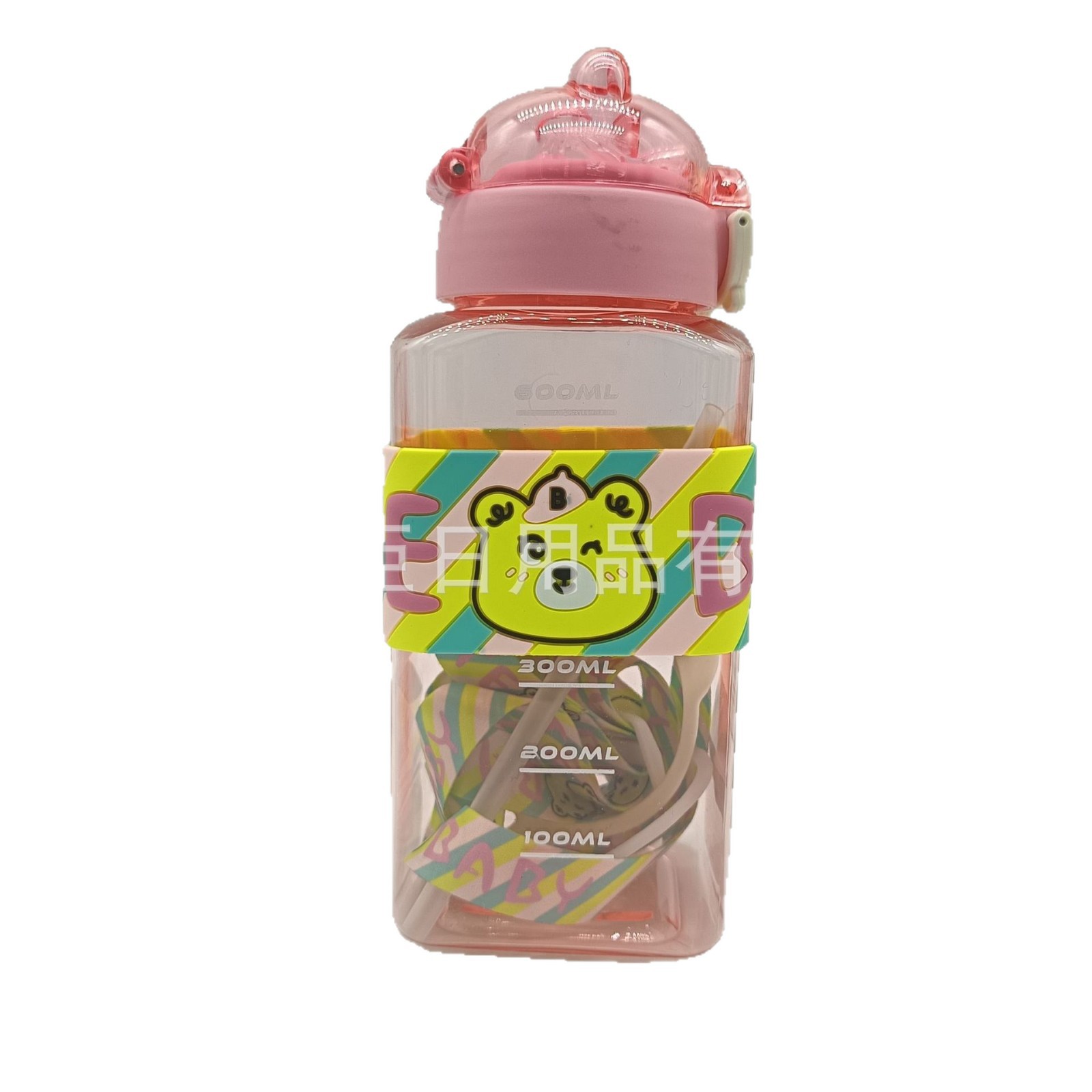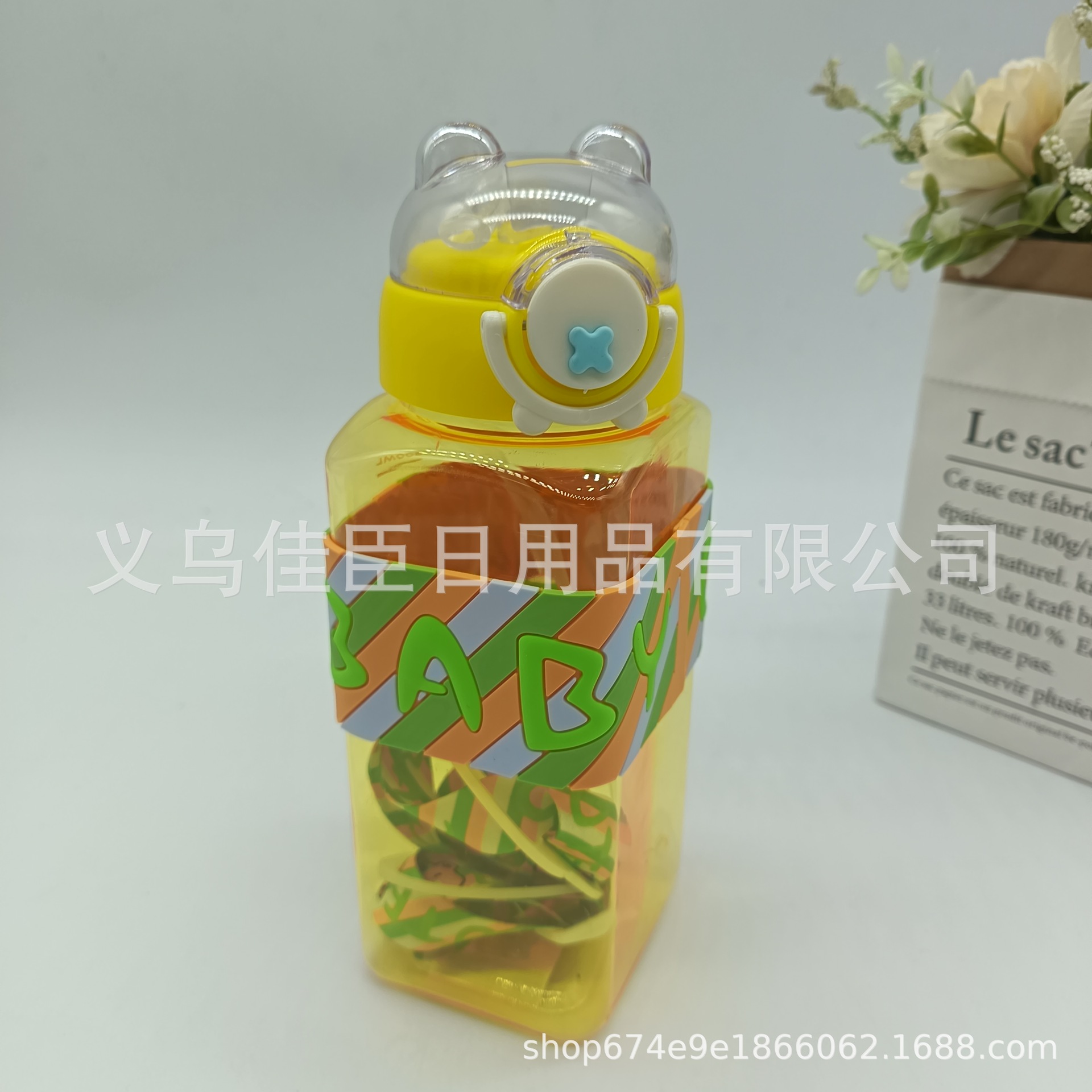 亚马逊夏季新款太空杯长方形小熊跳盖吸管杯儿童学生户外运动水杯