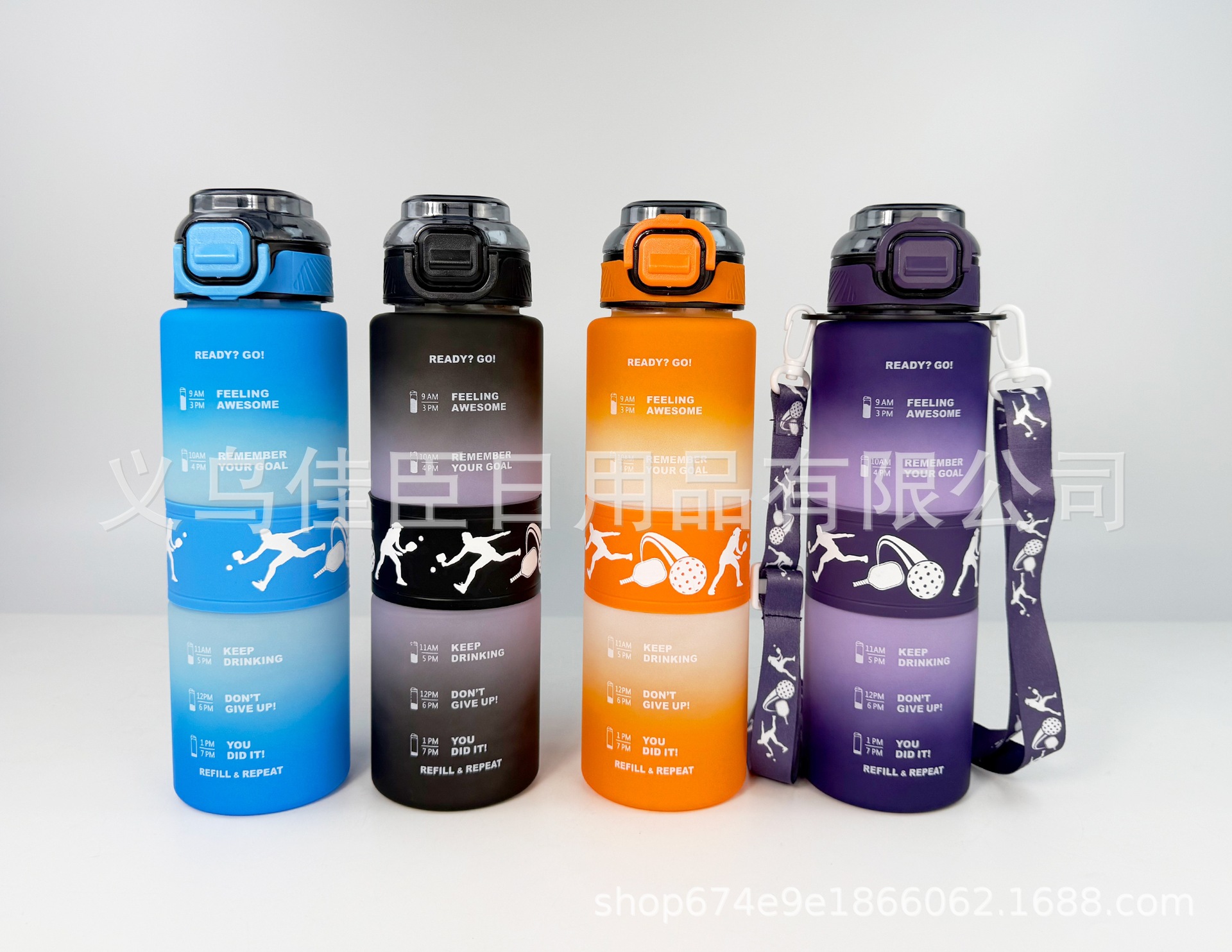 亚马逊夏季新款太空杯弹跳盖吸管杯可手提可背带学生户外运动水杯