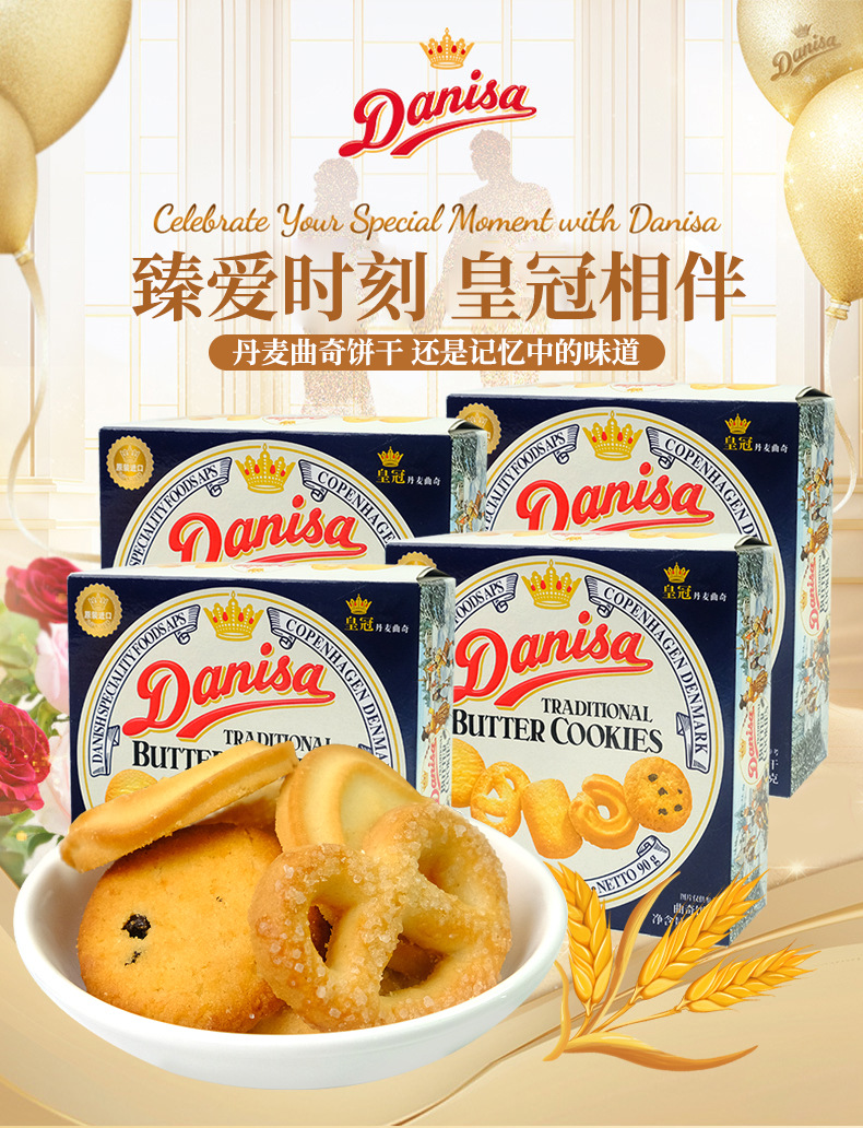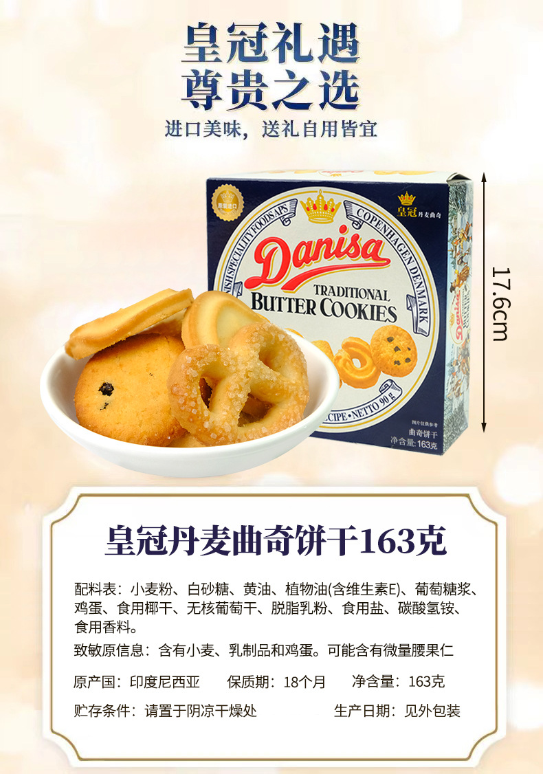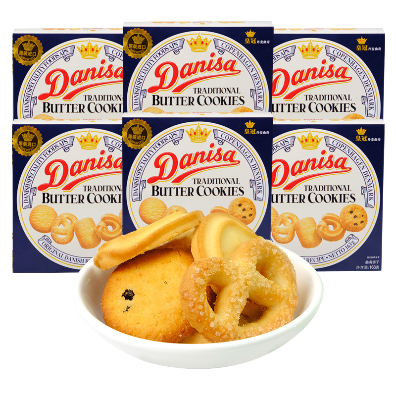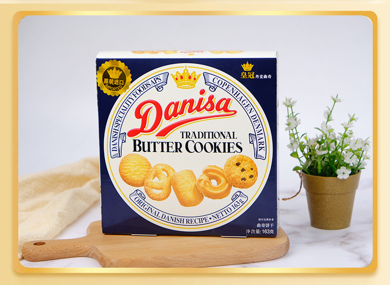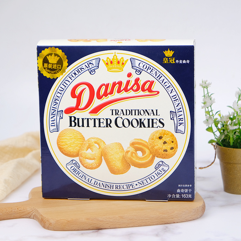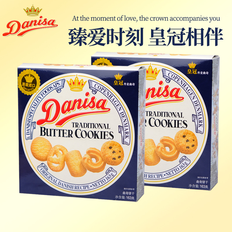 丹麦皇冠曲奇163g盒装黄油饼干结婚喜饼原装曲奇进口小零食批发