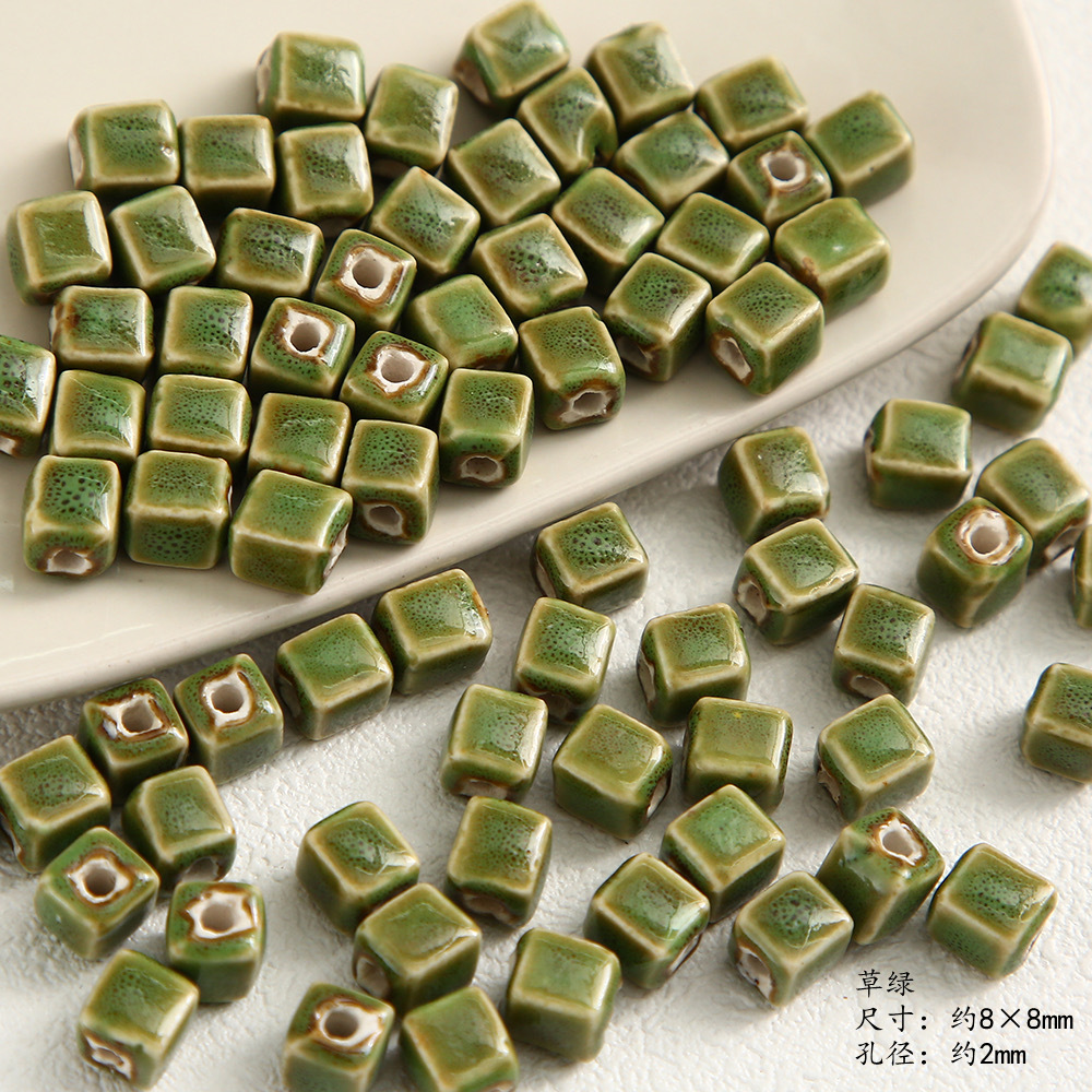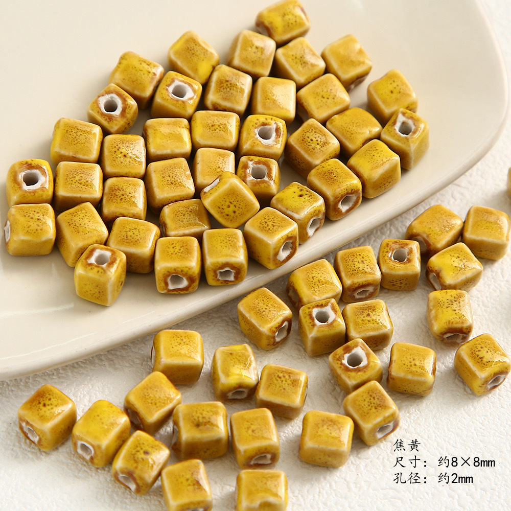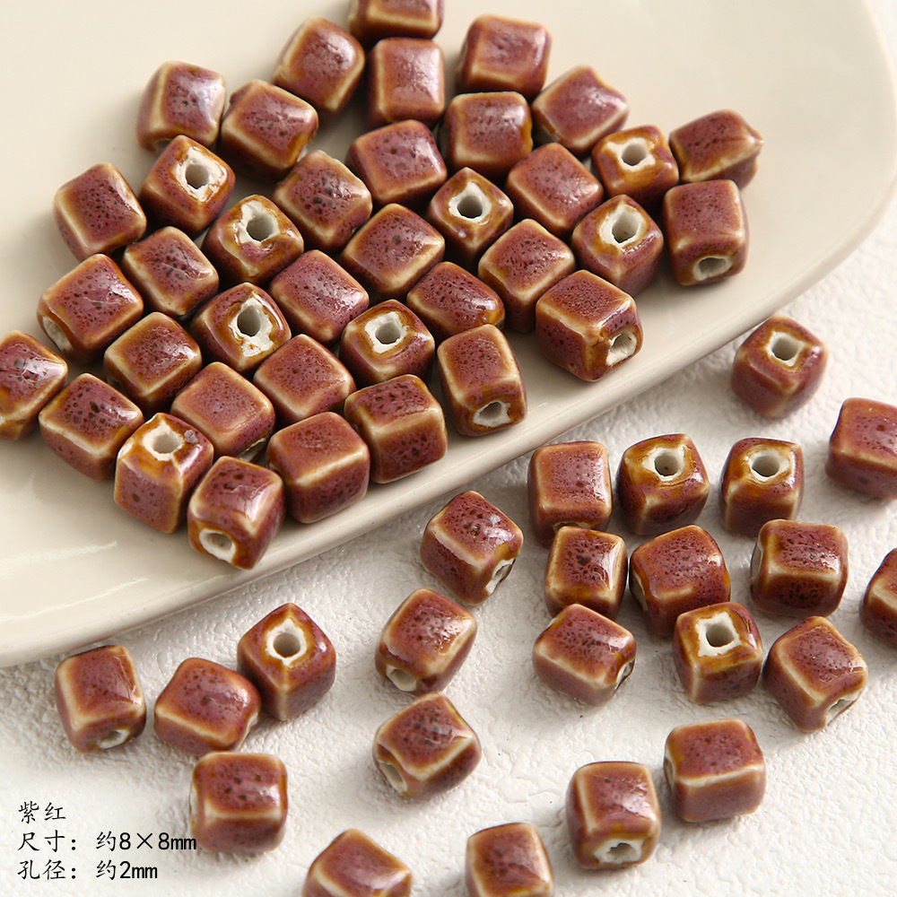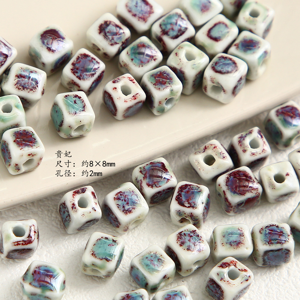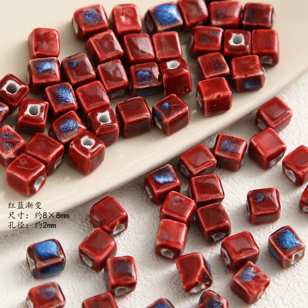 高温方块陶瓷花釉珠子窑变散珠8mm串珠隔珠diy手作饰品手链项链配