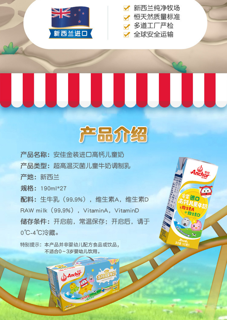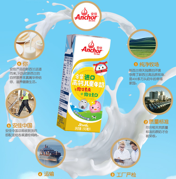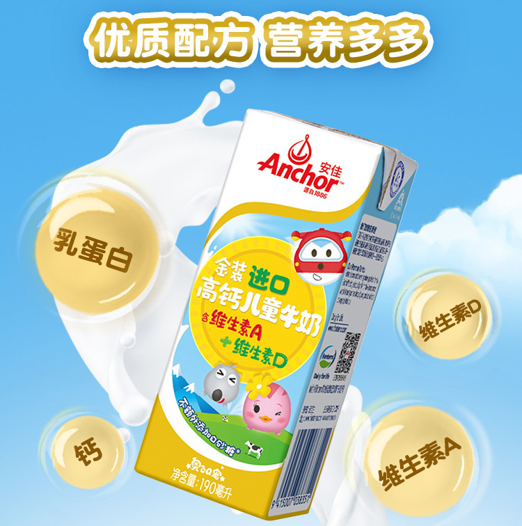 安佳金装高钙儿童牛奶礼盒 190ml*12 超高温灭菌儿童营养牛奶批发