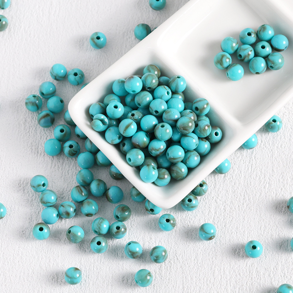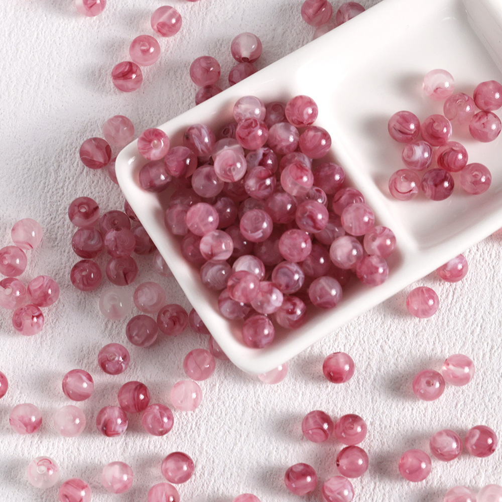 8mm仿天然石晕染圆珠复古新中式塑料圆珠diy配件材料串珠手链项链