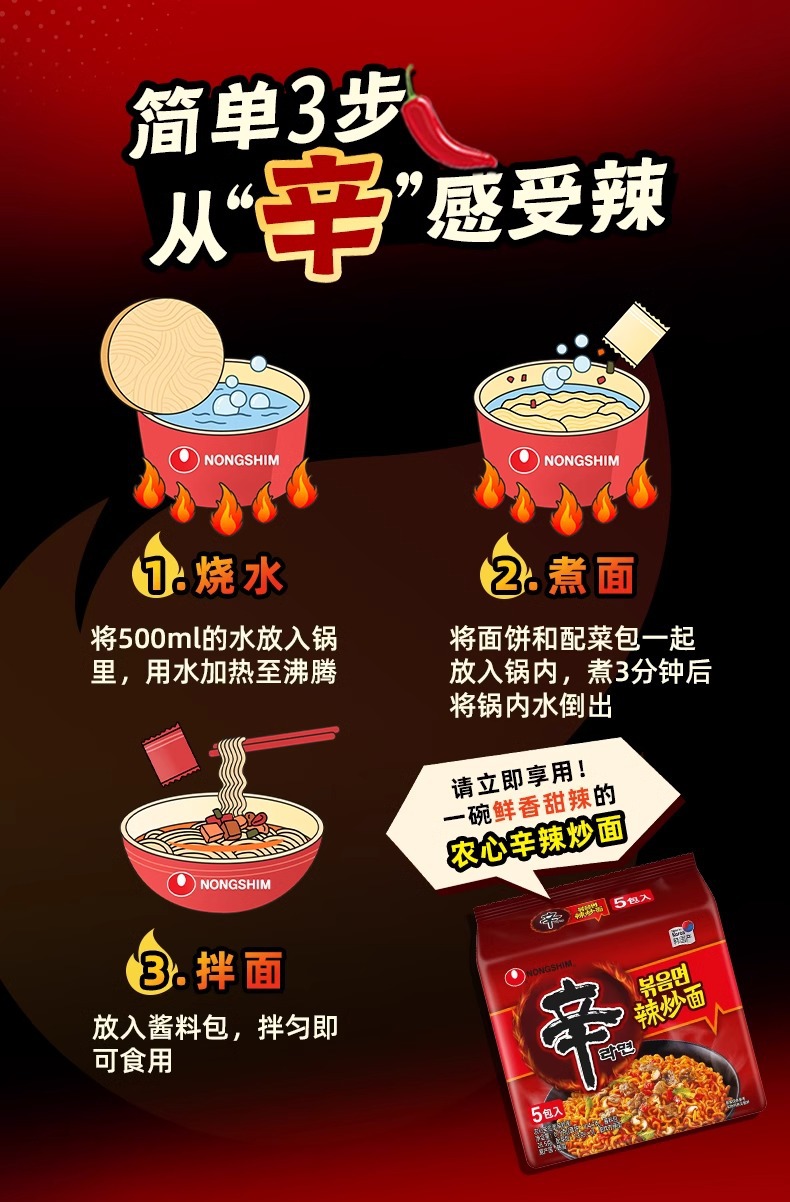 韩国进口农心辛拉面辣炒面泡面速食干拌面方便面火鸡面辛炒面批发