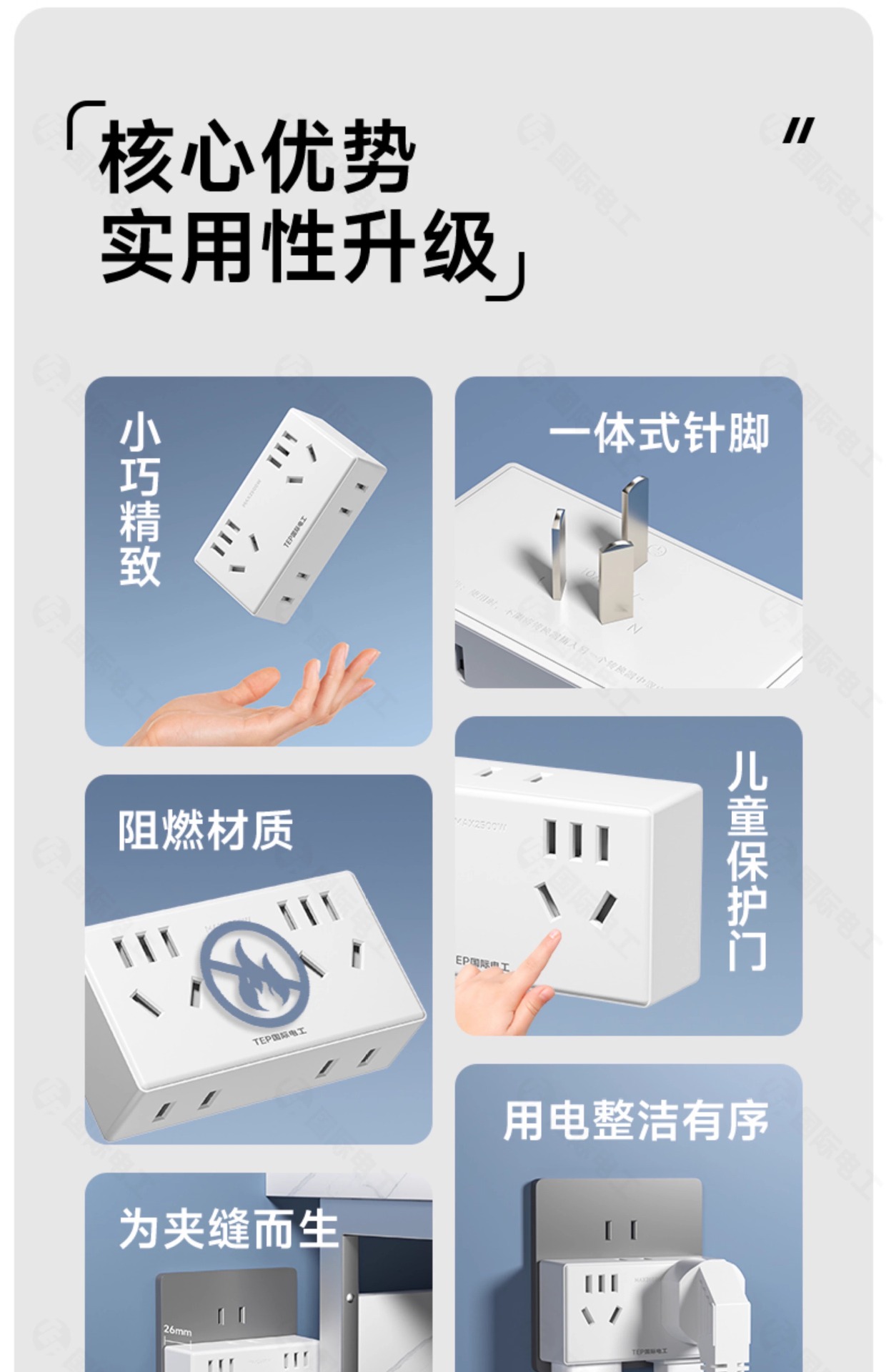 国际电工多功能一转五多孔插位插座转换器扩充电源无线插排插线板