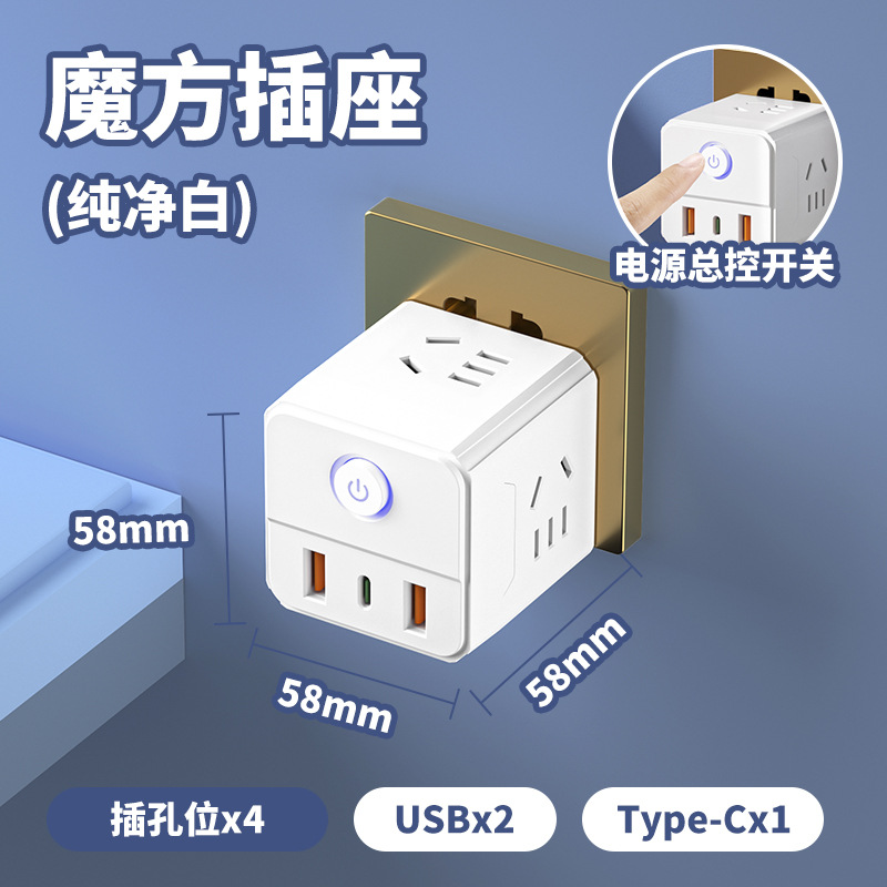 魔方插排家用电源插座转换插头一转多孔多功能孔带USB+c孔