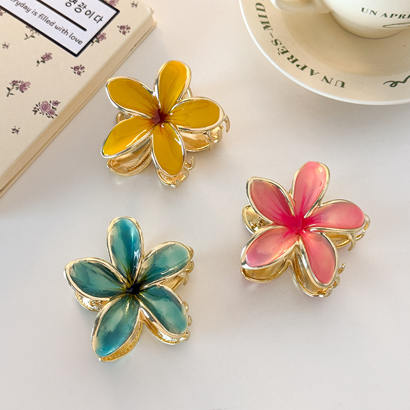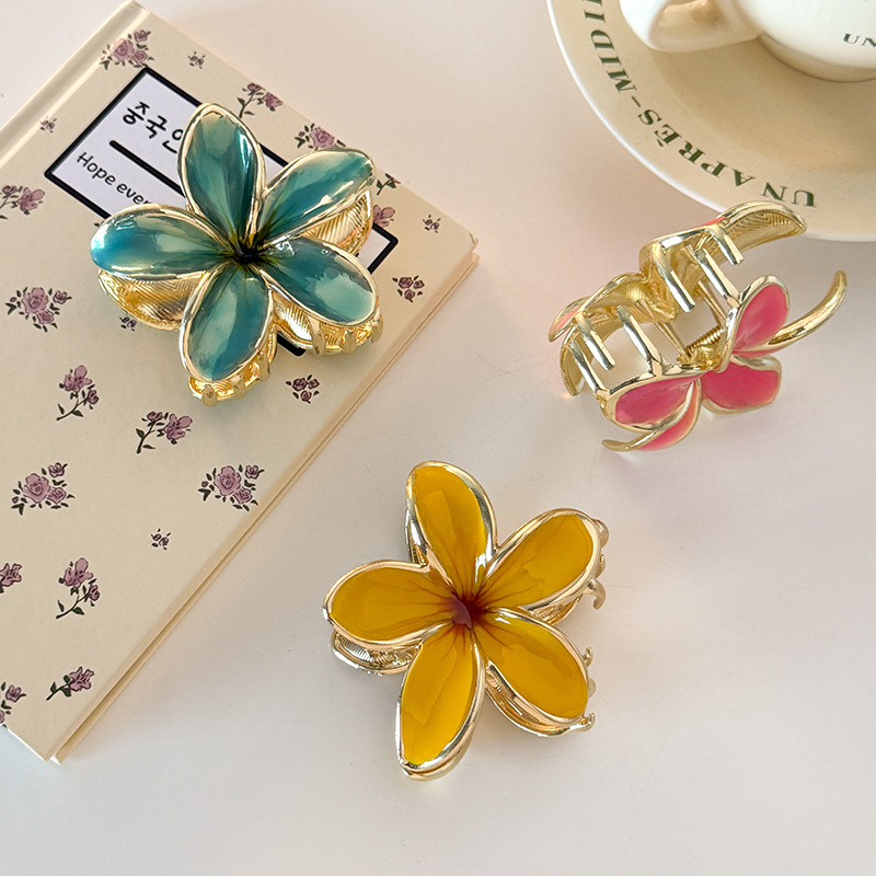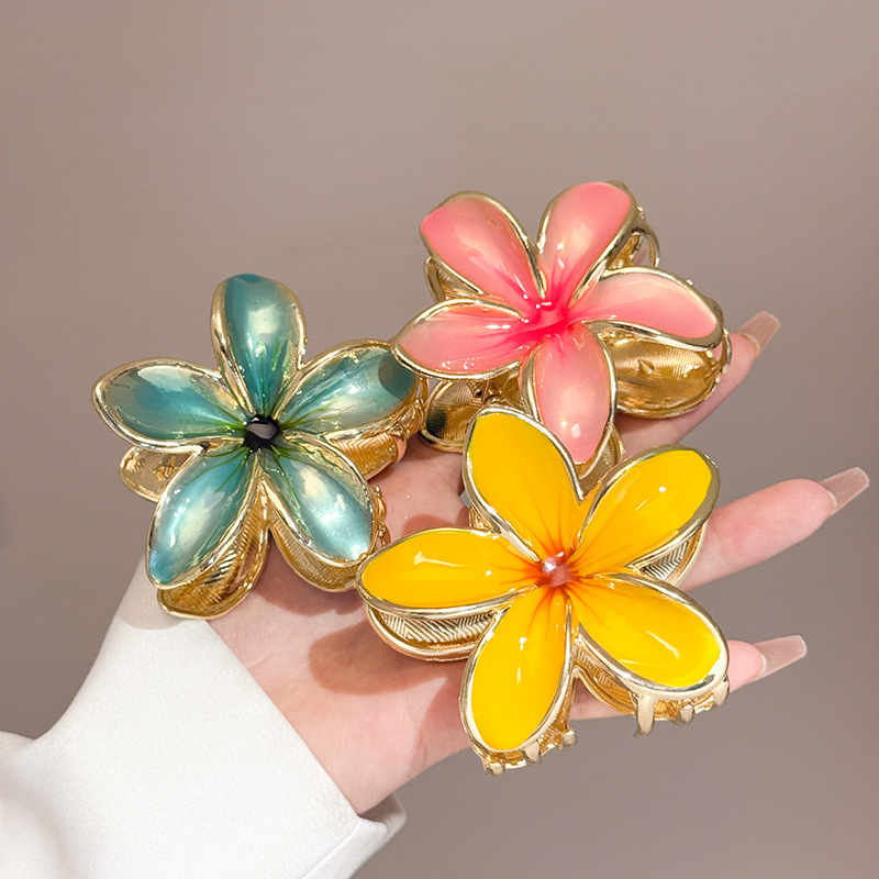 2025新款金属鸡蛋花抓夹8CM滴油抓夹发饰画油头饰