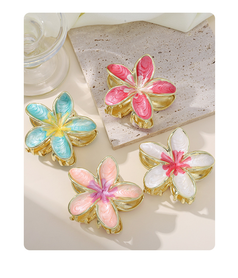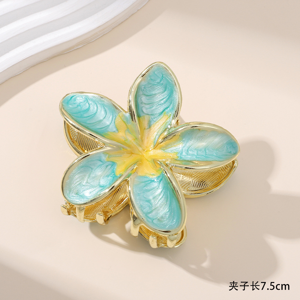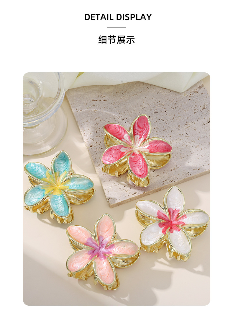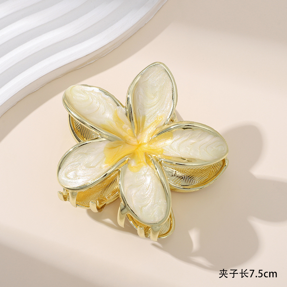 跨境爆款画油鸡蛋花抓夹花朵鲨鱼夹发抓头饰发饰
