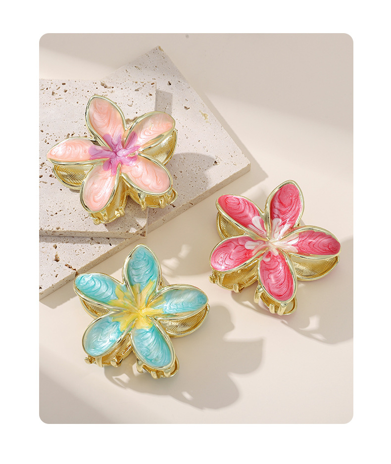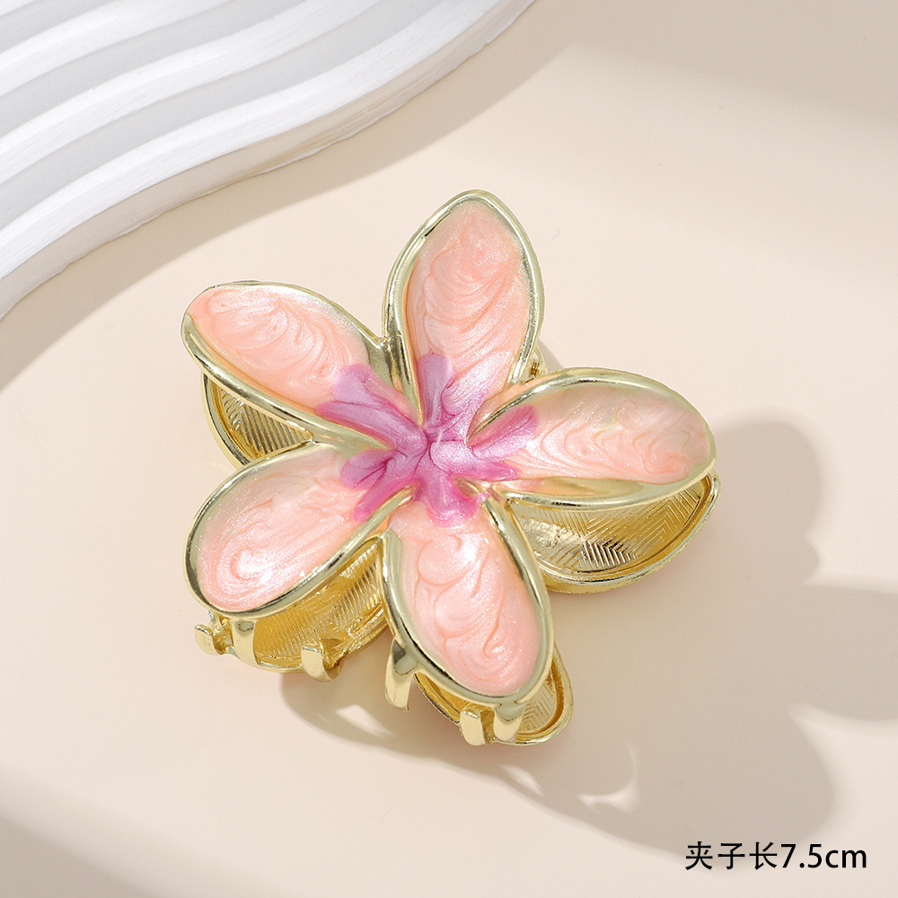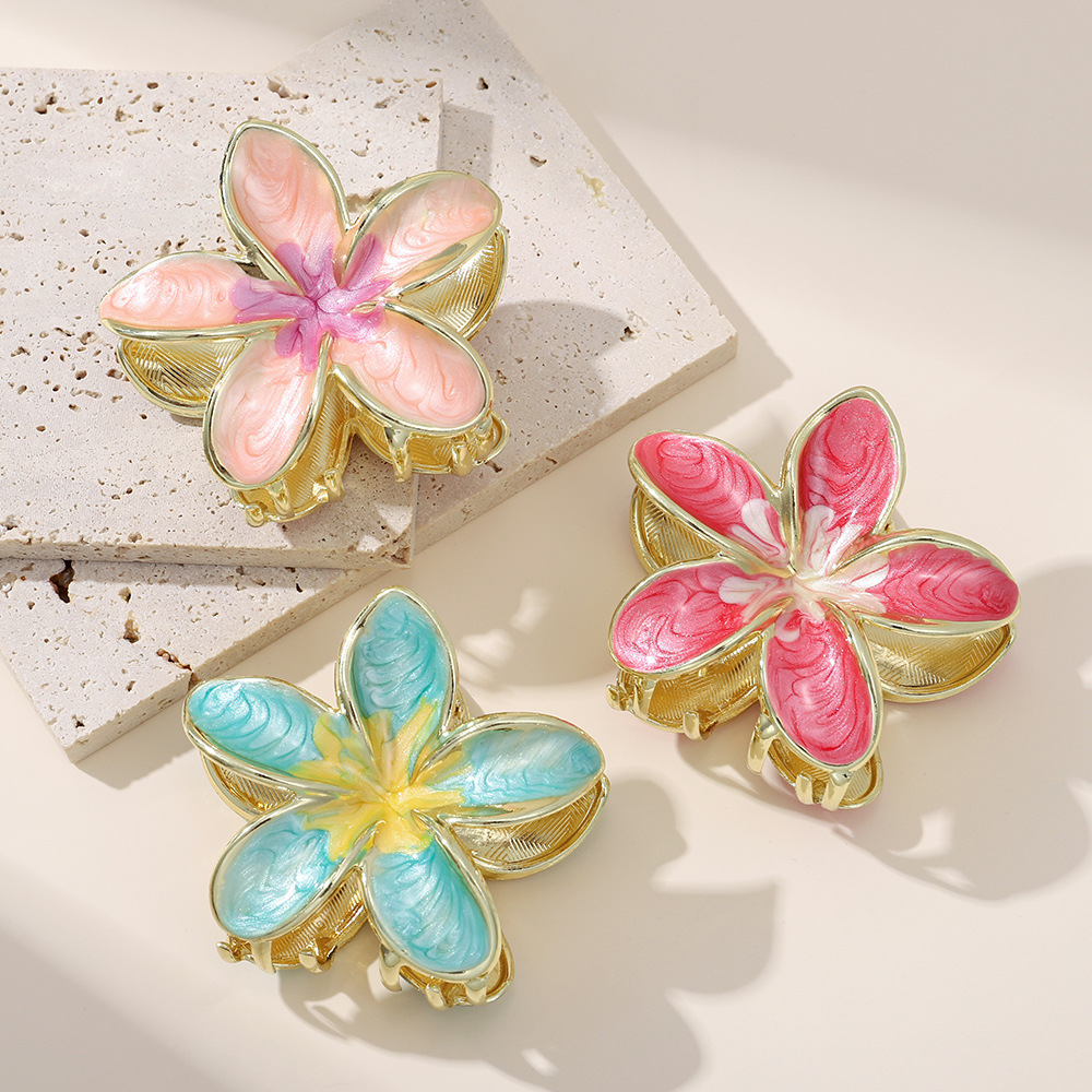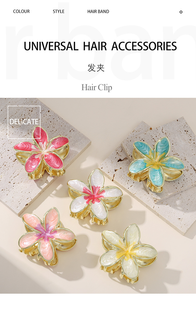 跨境爆款画油鸡蛋花抓夹花朵鲨鱼夹发抓头饰发饰