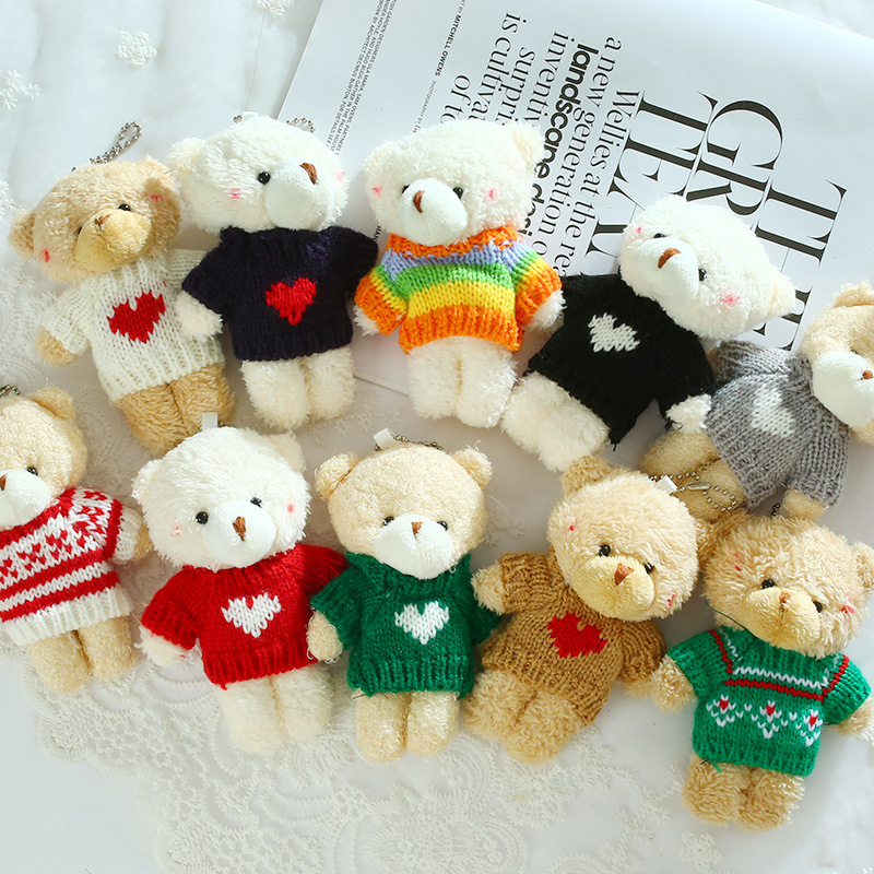 网红可爱毛衣腮红小熊挂件毛绒玩具泰迪熊公仔包包挂饰钥匙扣配饰