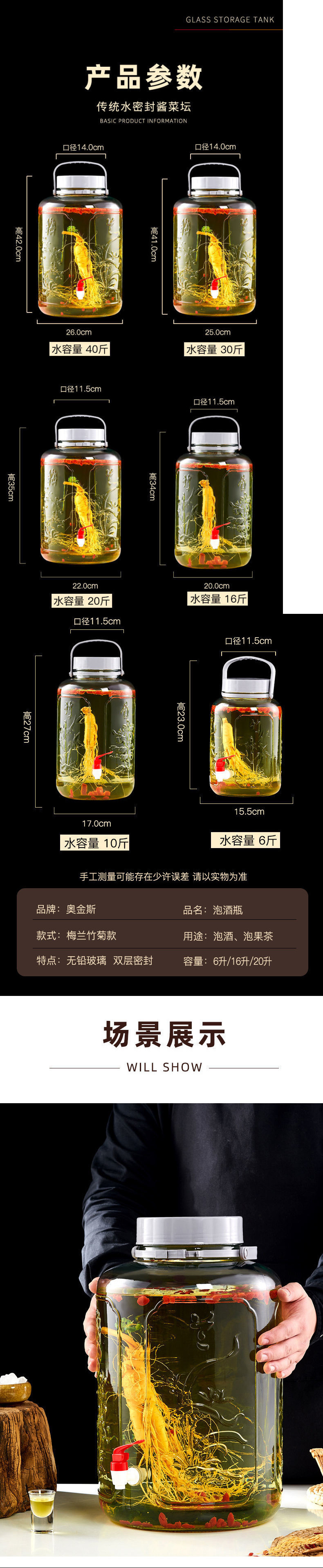 批发水果酵素桶发酵家用密封罐玻璃泡酒容器20斤自酿葡萄酒发防霉