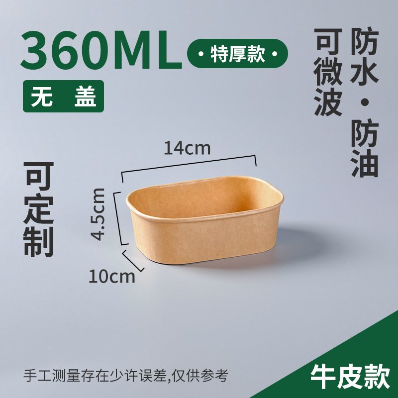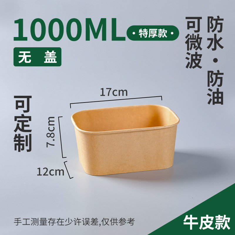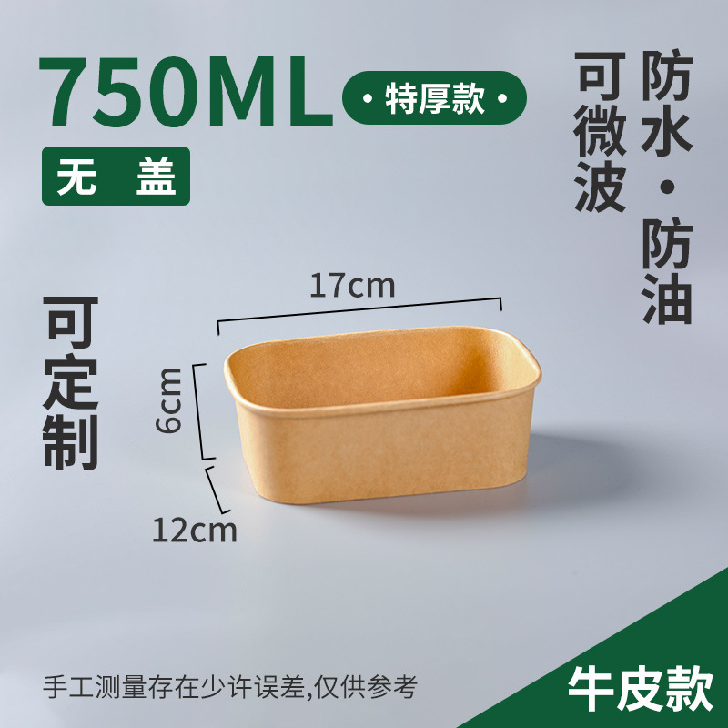 一次性加厚牛皮纸方形碗饭盒沙拉外卖便当打包快餐盒纸盒防漏加厚