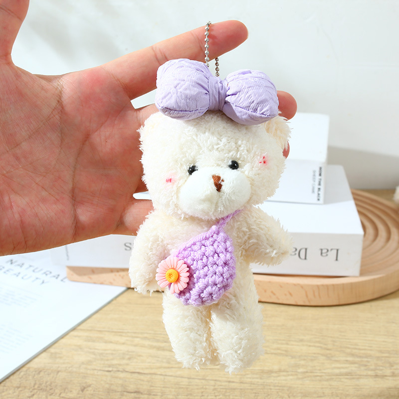 可爱毛绒挎包腮红熊玩偶书包挂件粉色少女心蝴蝶结小熊包包钥匙扣