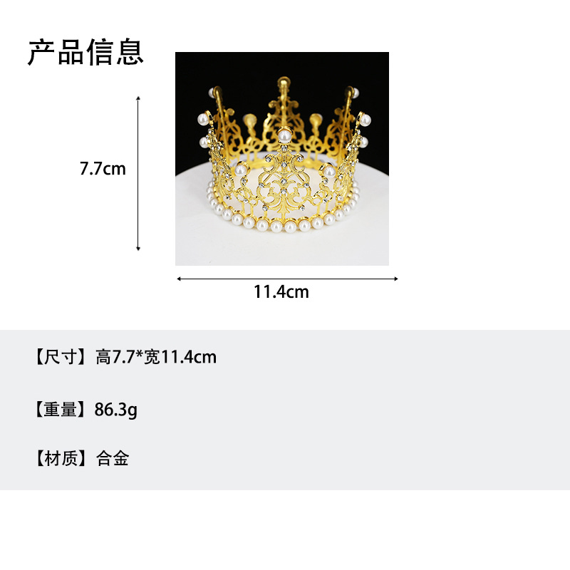 头饰儿童生日小孩整圈圆皇冠新娘饰品结婚高亮珍珠蛋糕烘培