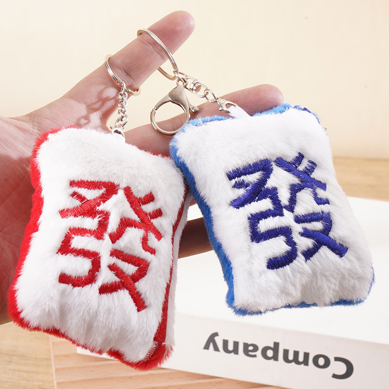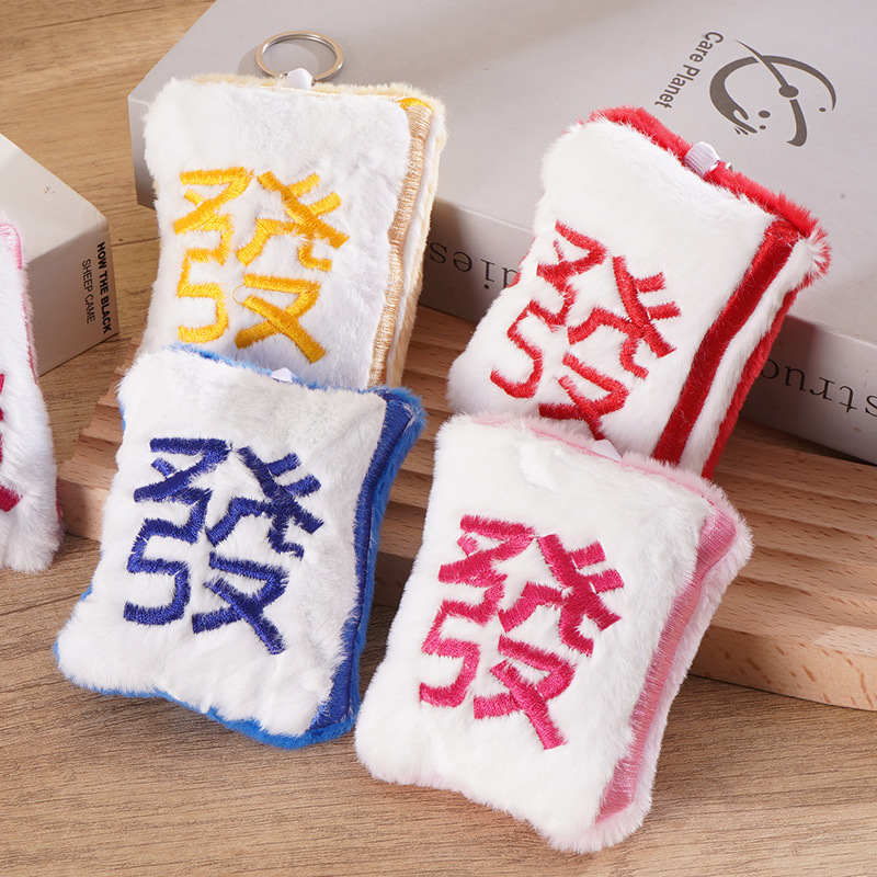 新年春节创意毛绒麻将发财钥匙挂件趣味麻将国风搞怪背包钥匙挂件
