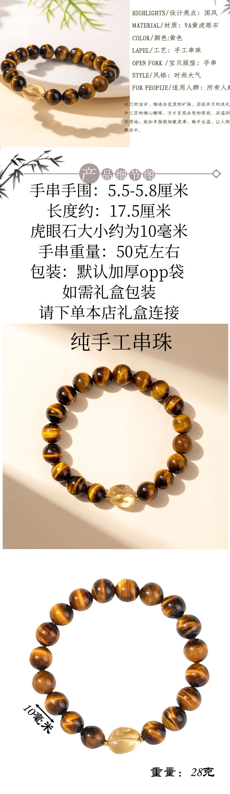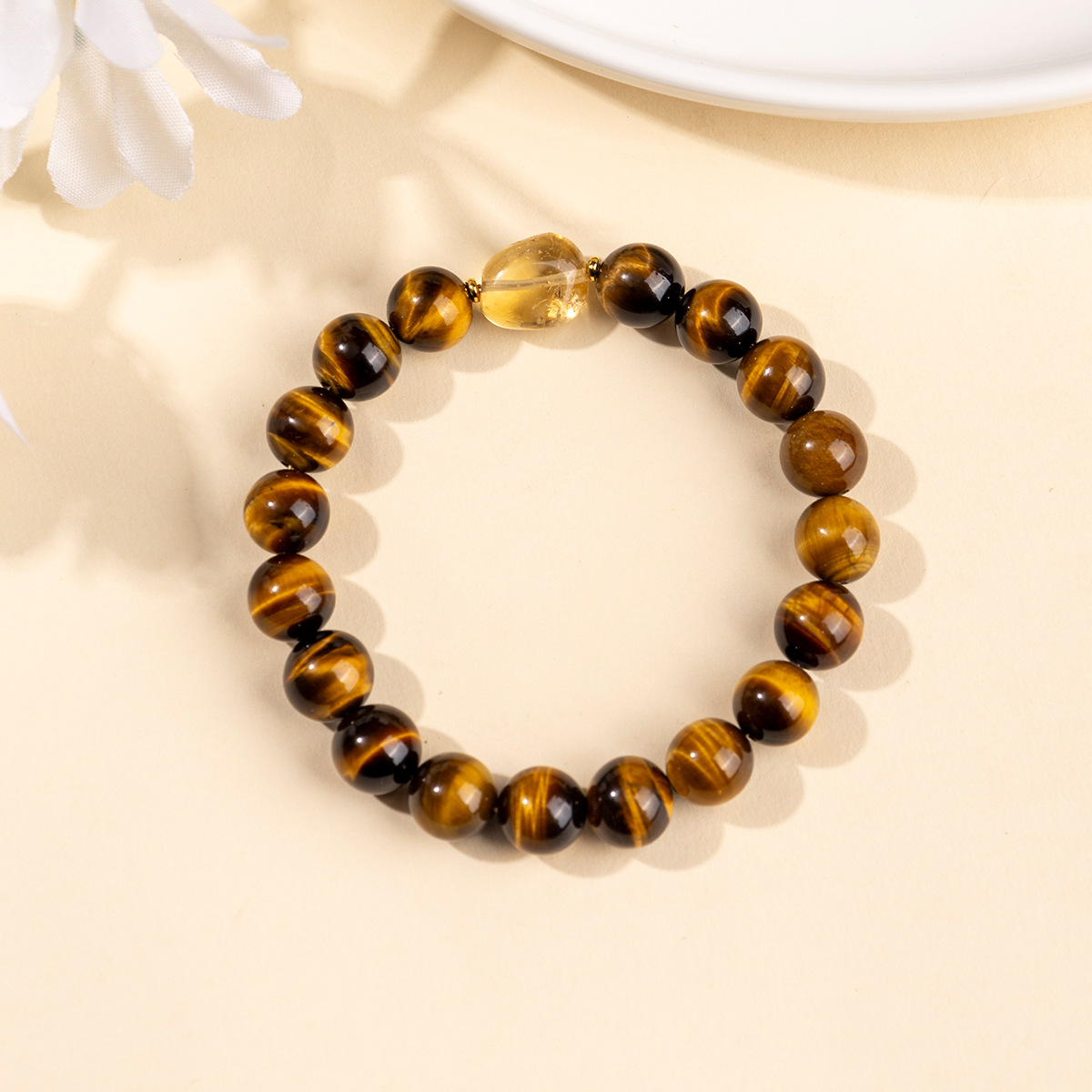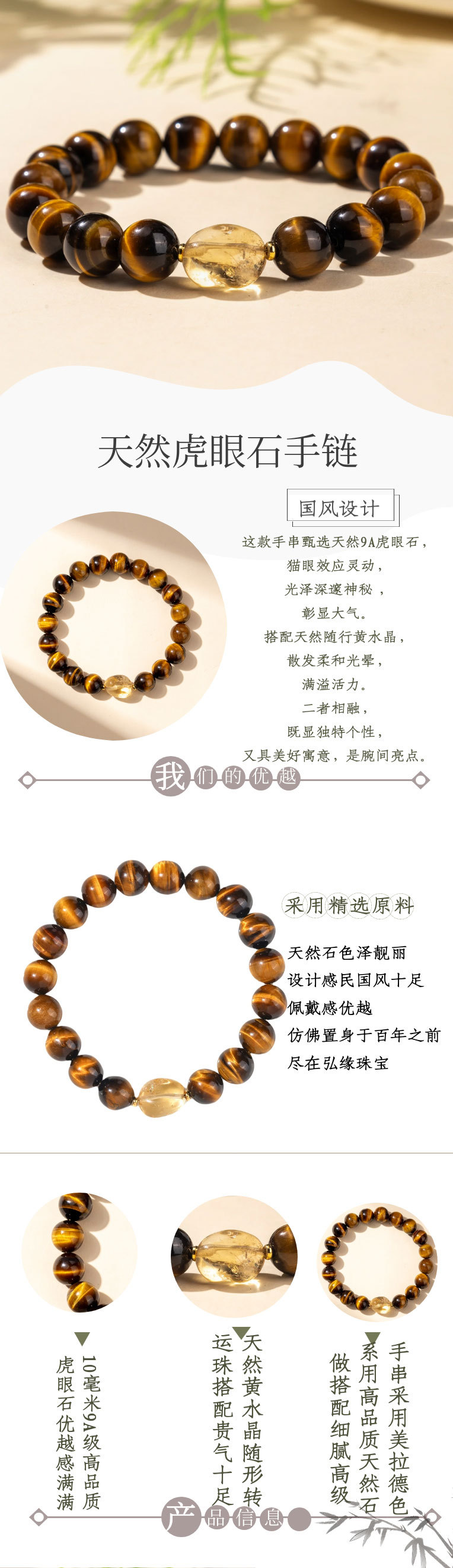 天然虎眼石串珠手串轻奢高级感黄水晶手链女新中式设计手饰爆款