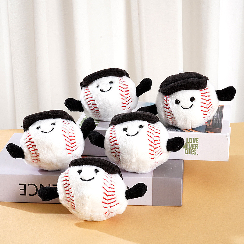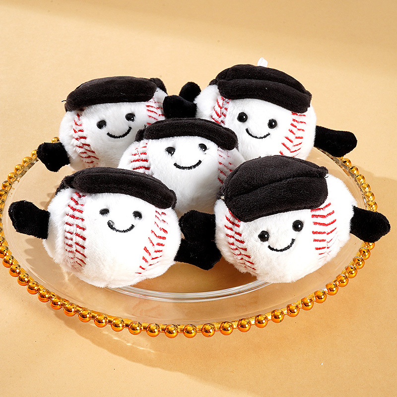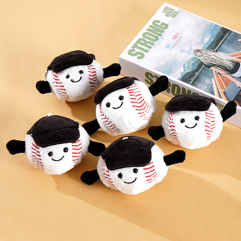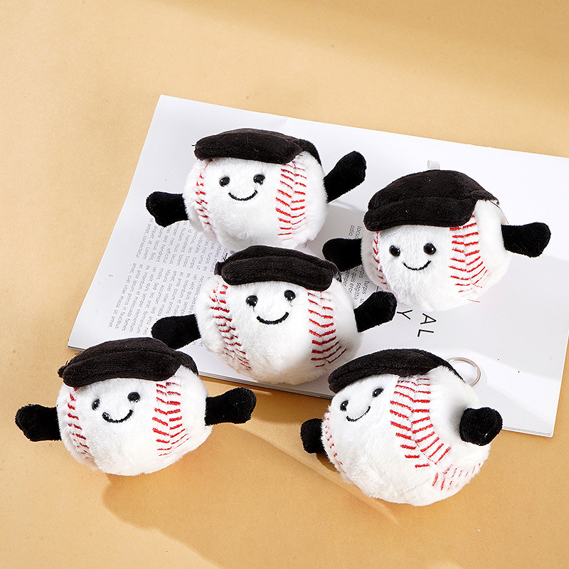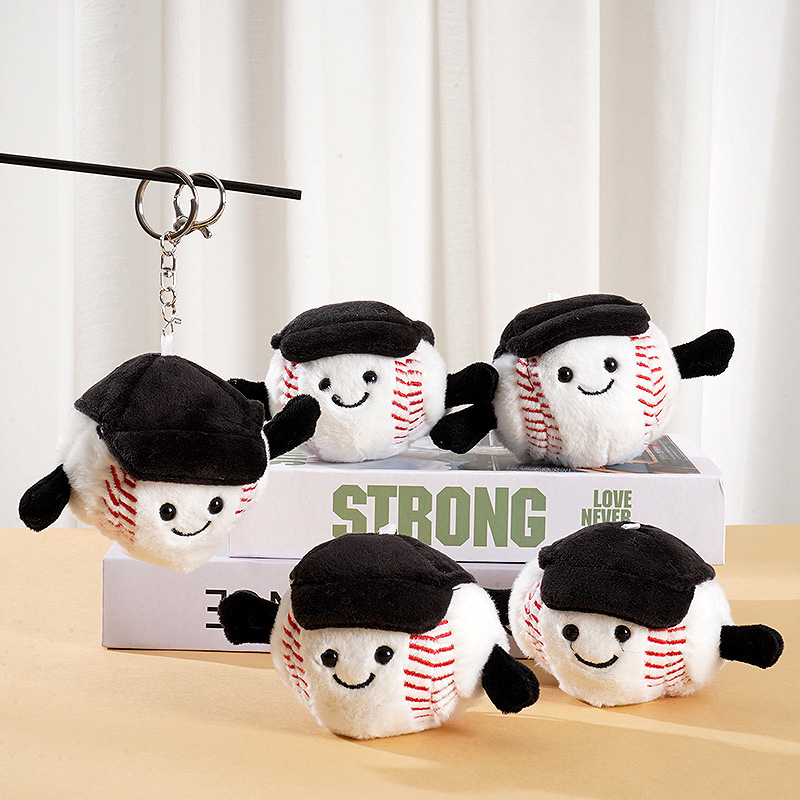 现货英国可爱趣味棒球帽子微笑棒球毛绒公仔包挂件游乐园抓娃娃机