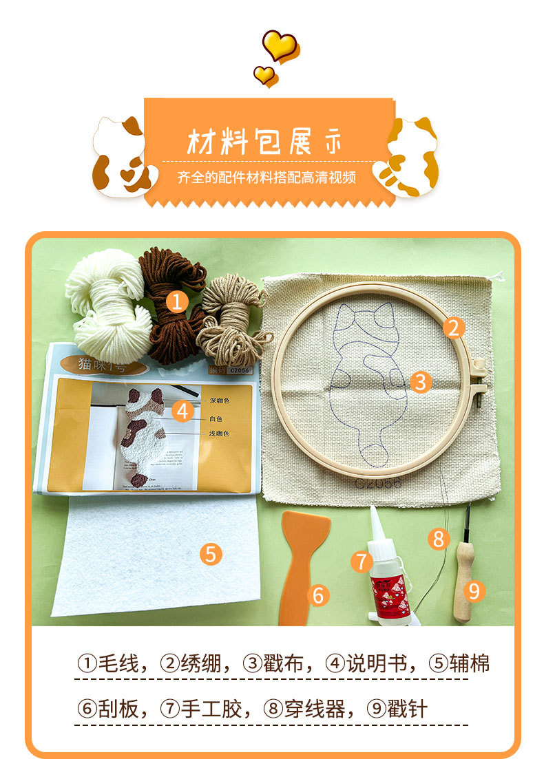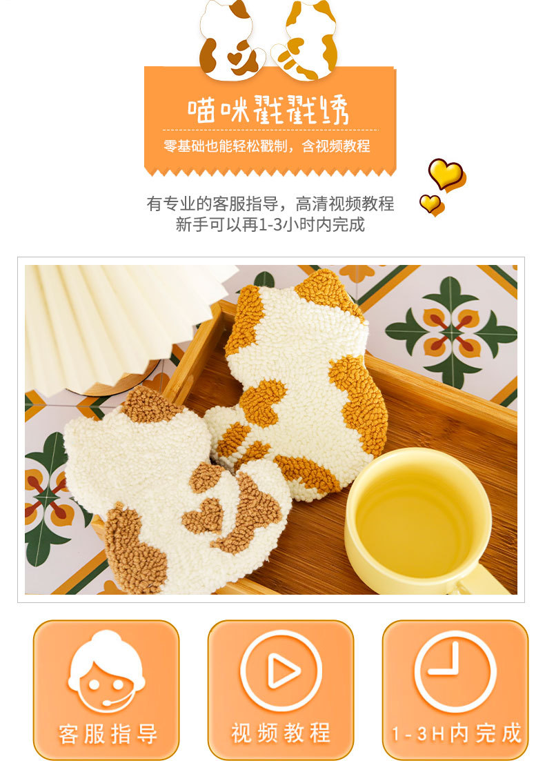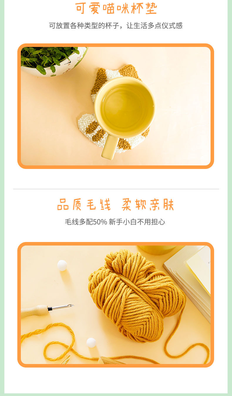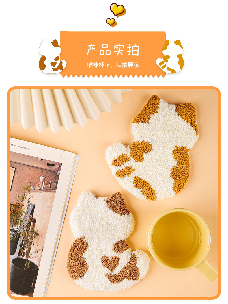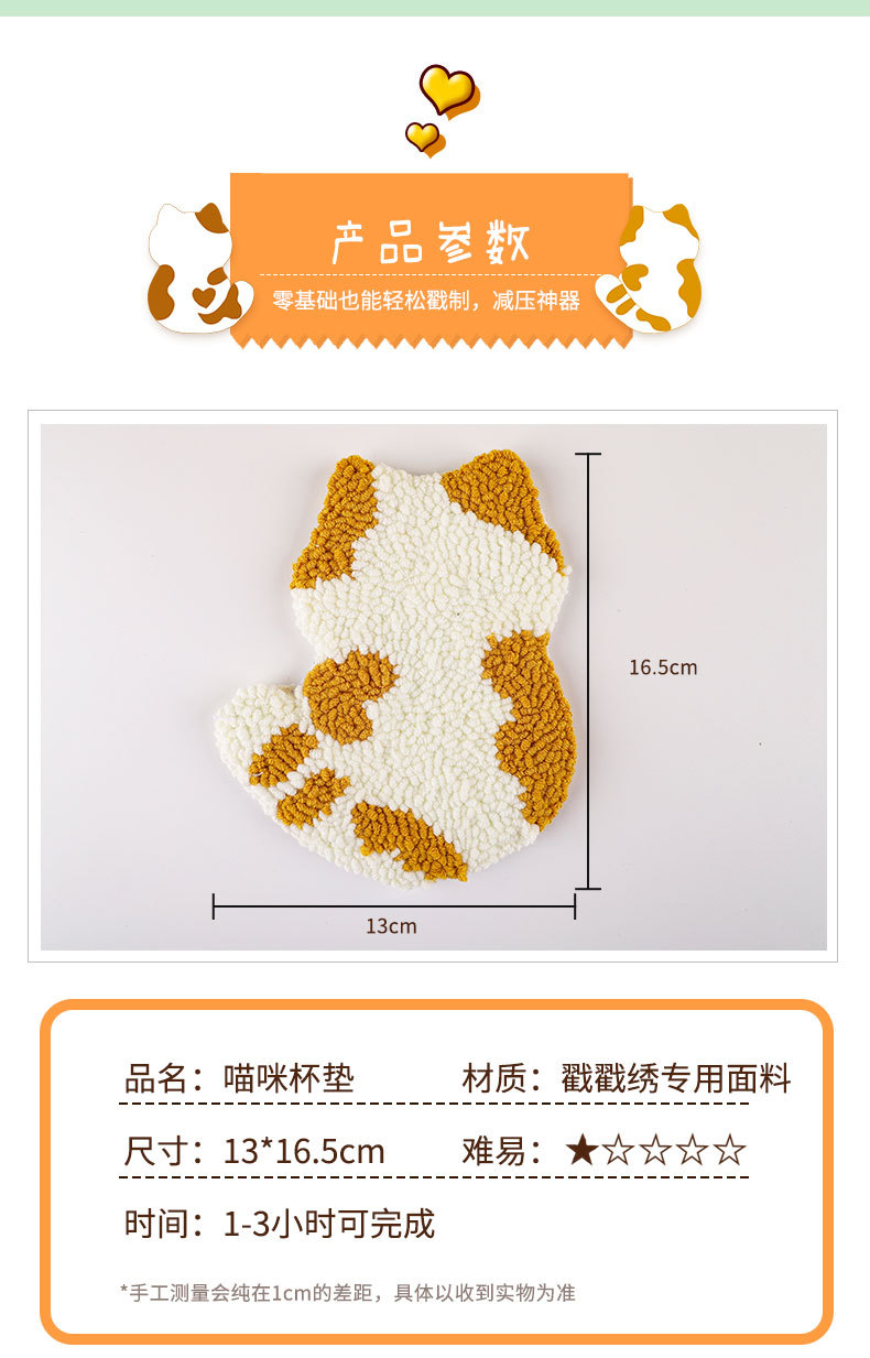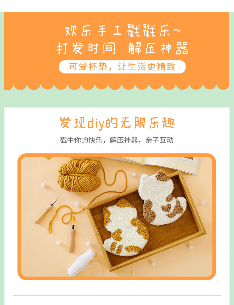 轻奢戳戳乐手工diy材料包 送女友礼物初学者戳戳绣猫咪大杯垫毛线