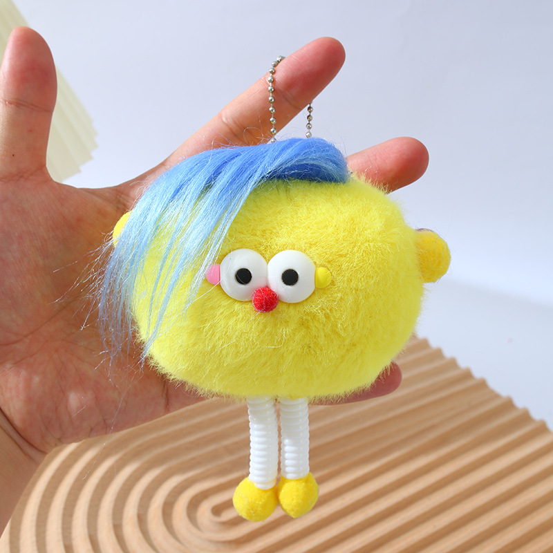 网红可爱炸毛公仔小挂件可伸缩弹簧腿玩偶挂饰抓机娃娃手机钥匙扣