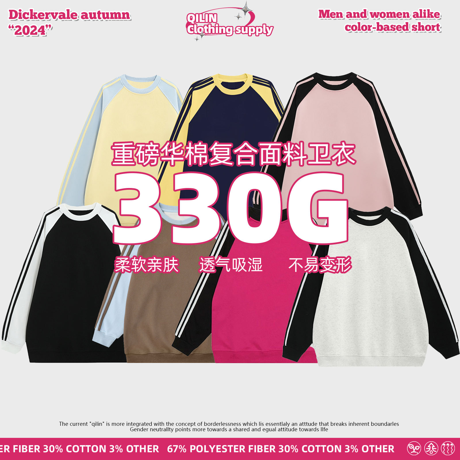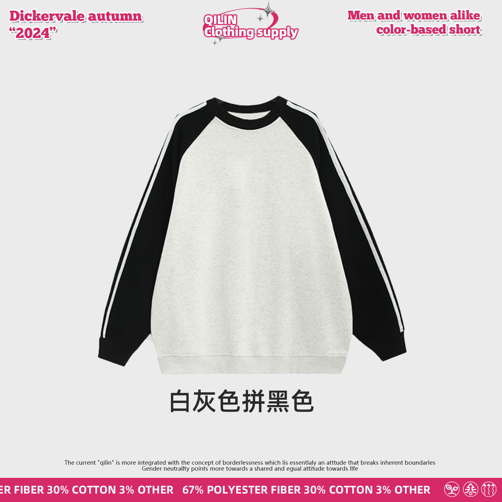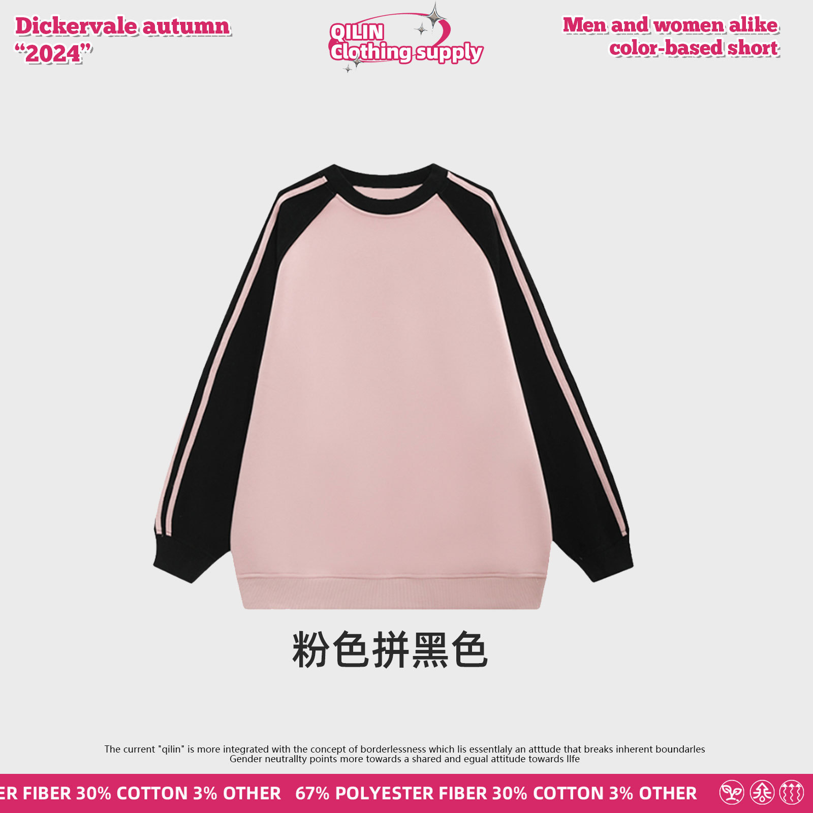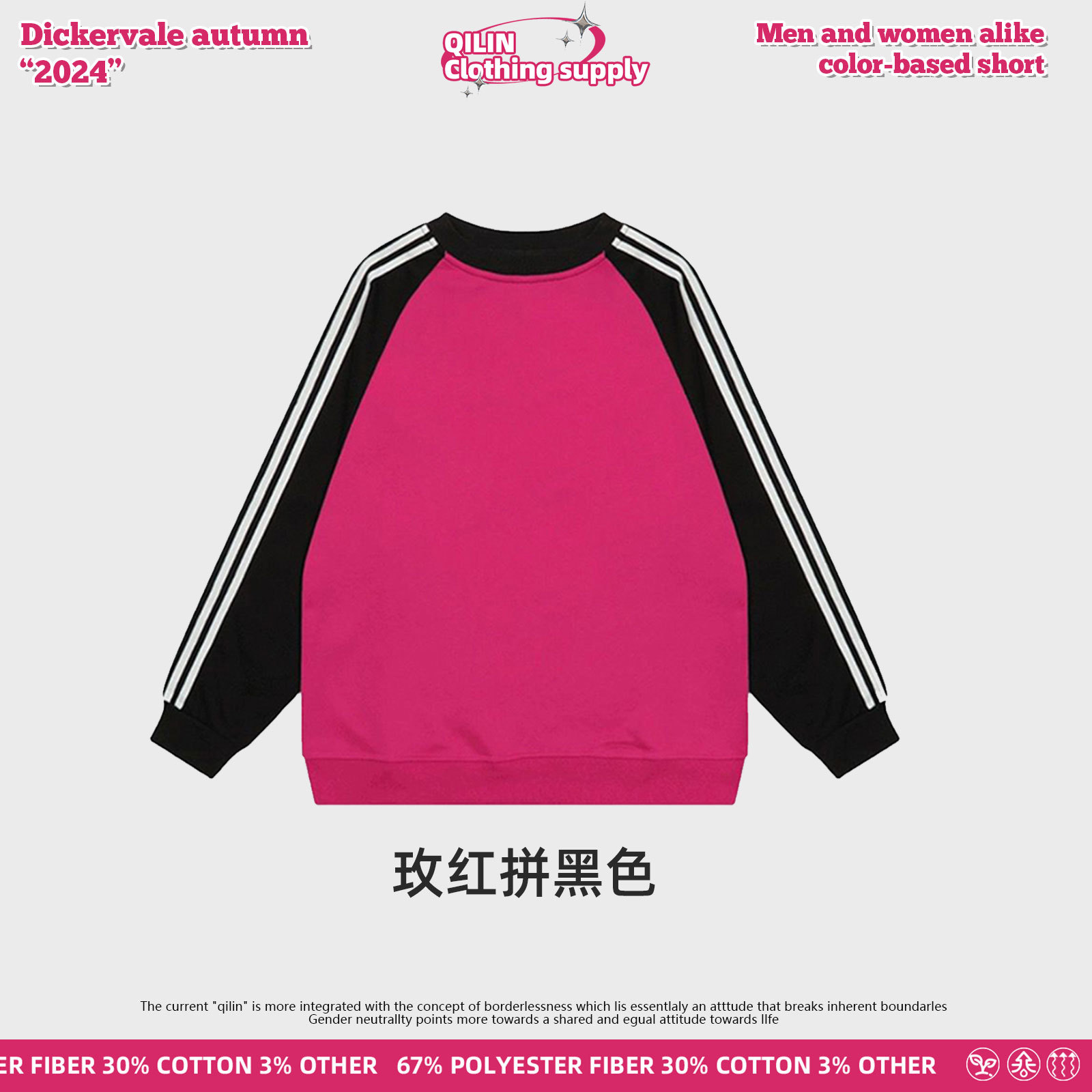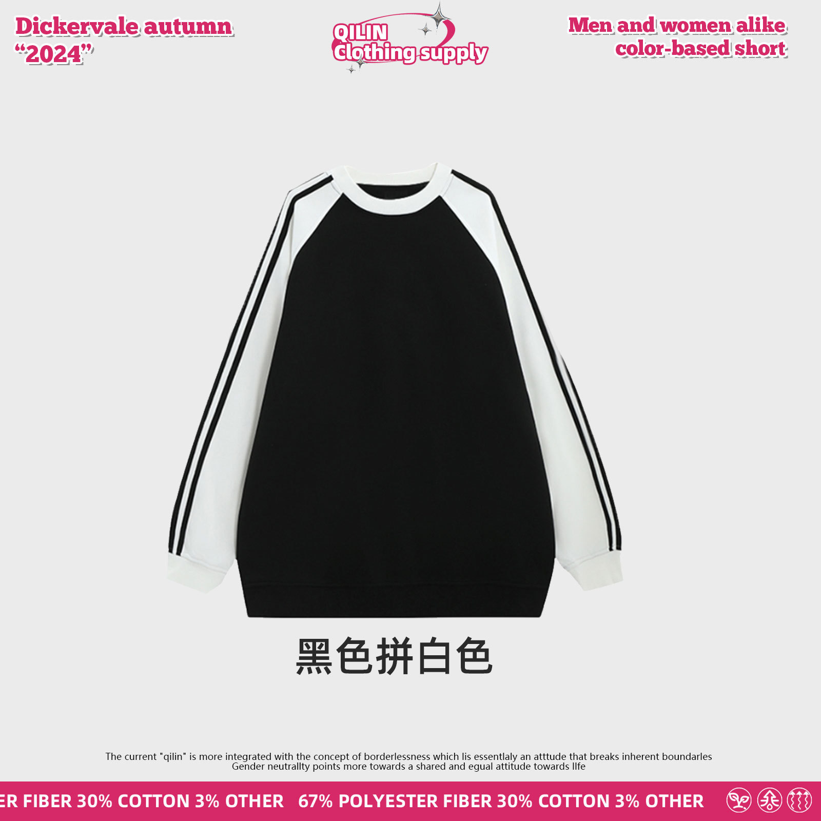 春秋三条杠运动卫衣潮男休闲圆领男女套头长袖外套大码青年打底衫