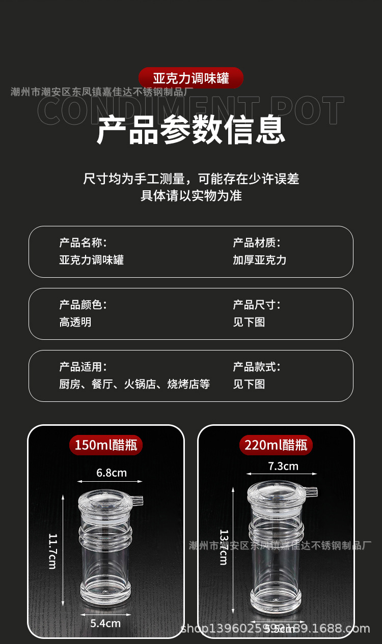 家用亚克力调料罐塑料酱油瓶调味瓶醋壶辣椒罐餐厅商用厨房用品