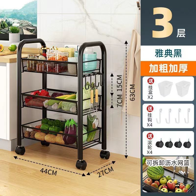 厨房置物架家用收纳储物架子落地多层用品大全小推车多功能蔬菜篮