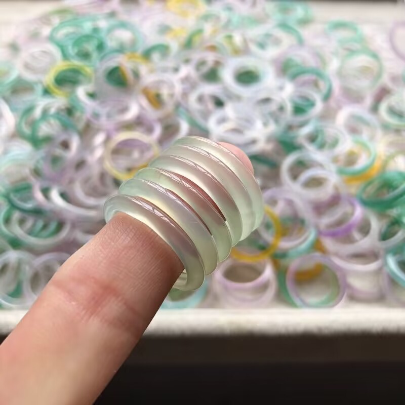 批发天然冰种绿玛瑙3mm极细戒指线戒 绿白红黑玛瑙细戒指戒圈尾戒