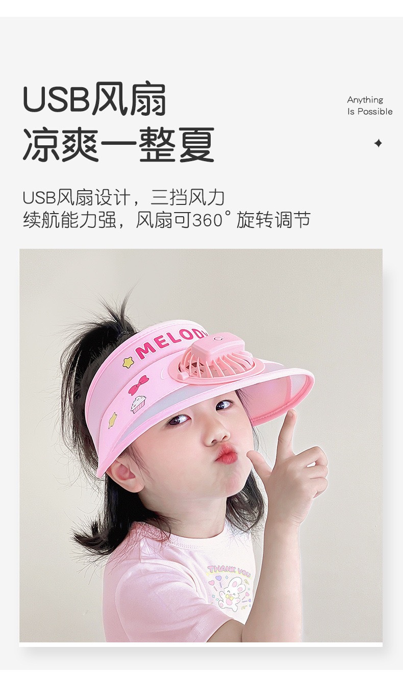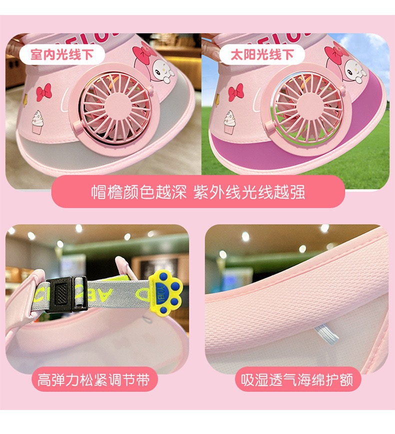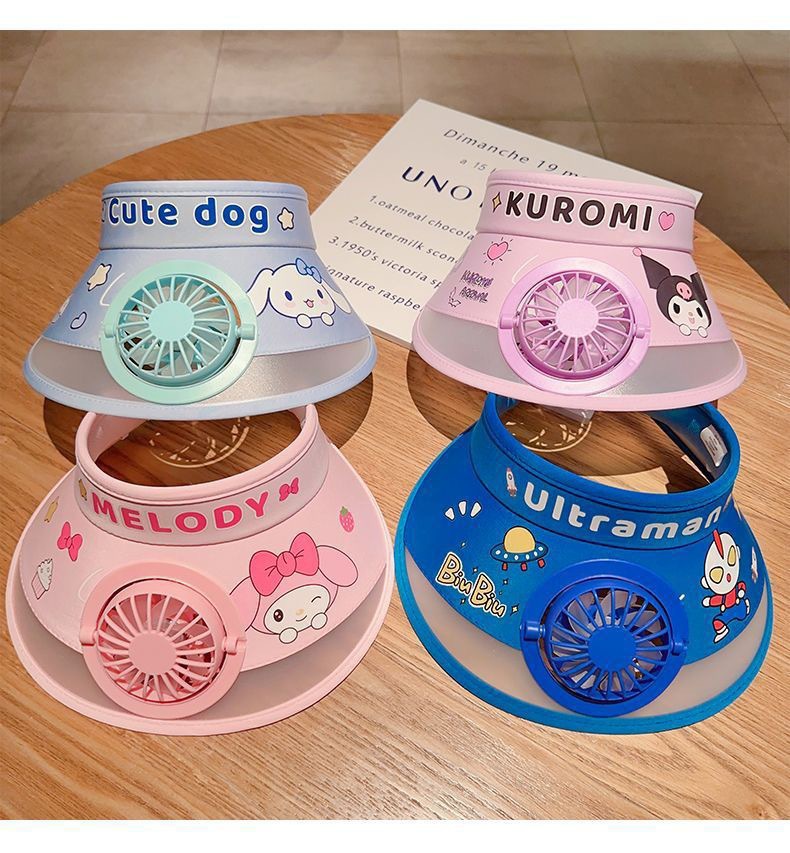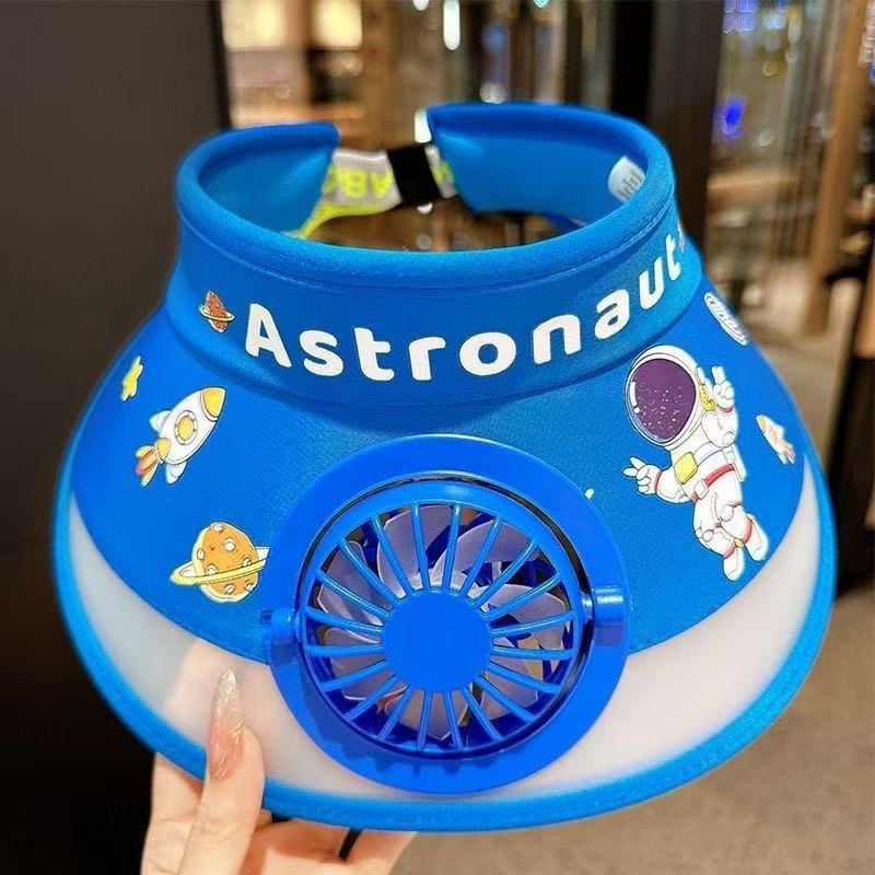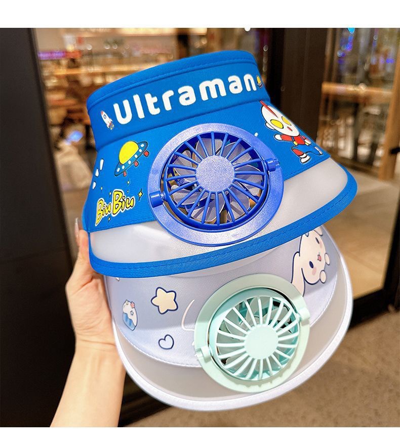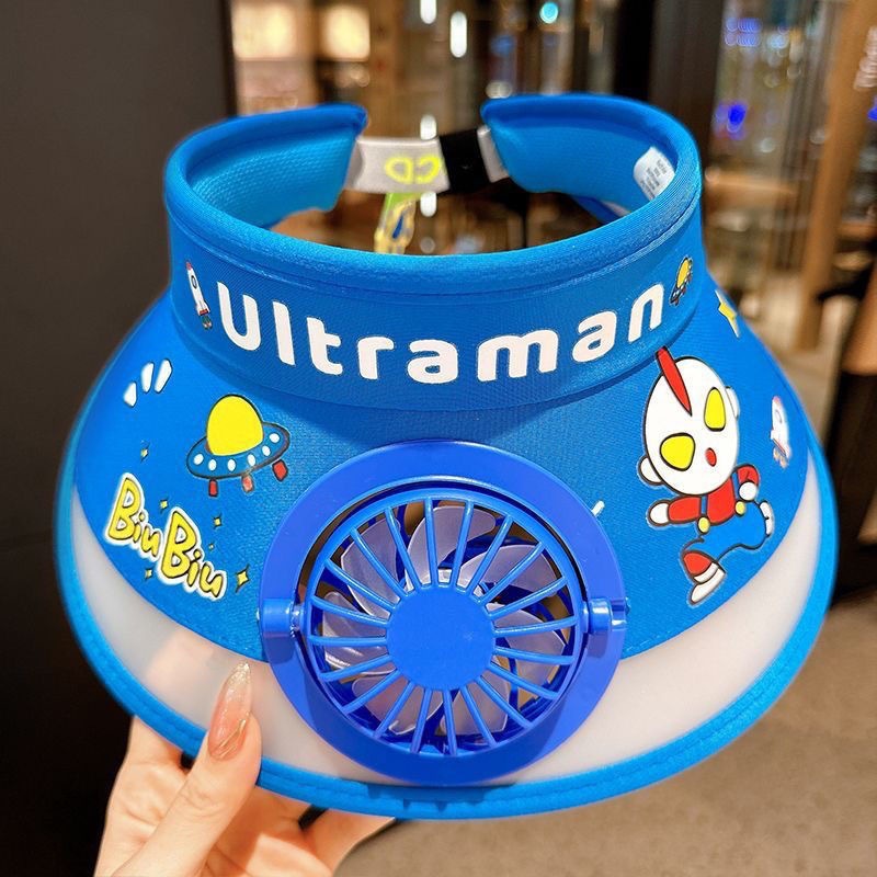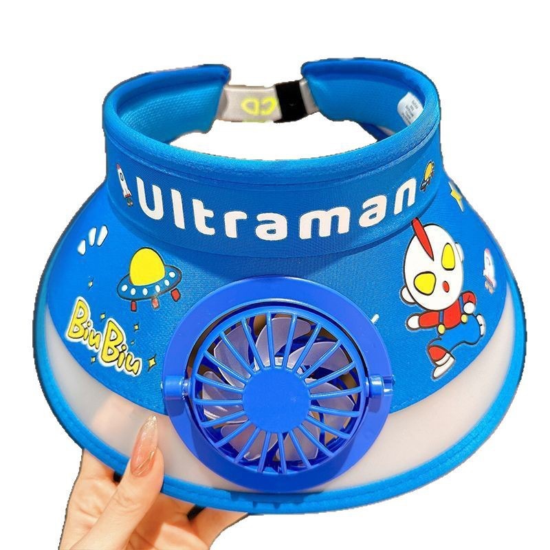 儿童遮阳帽带风扇帽夏季奥特曼防晒帽男女孩户外可爱空顶太阳帽子