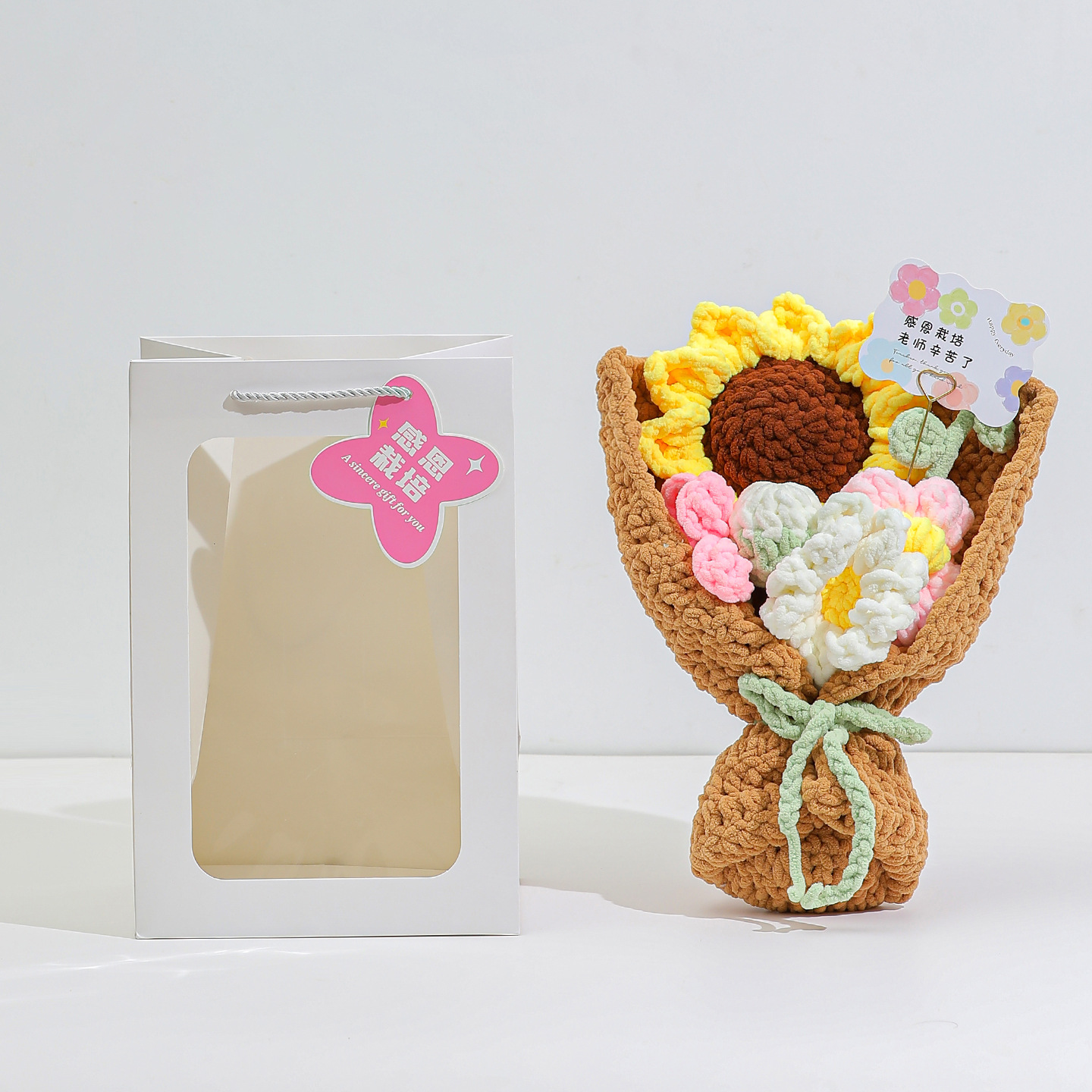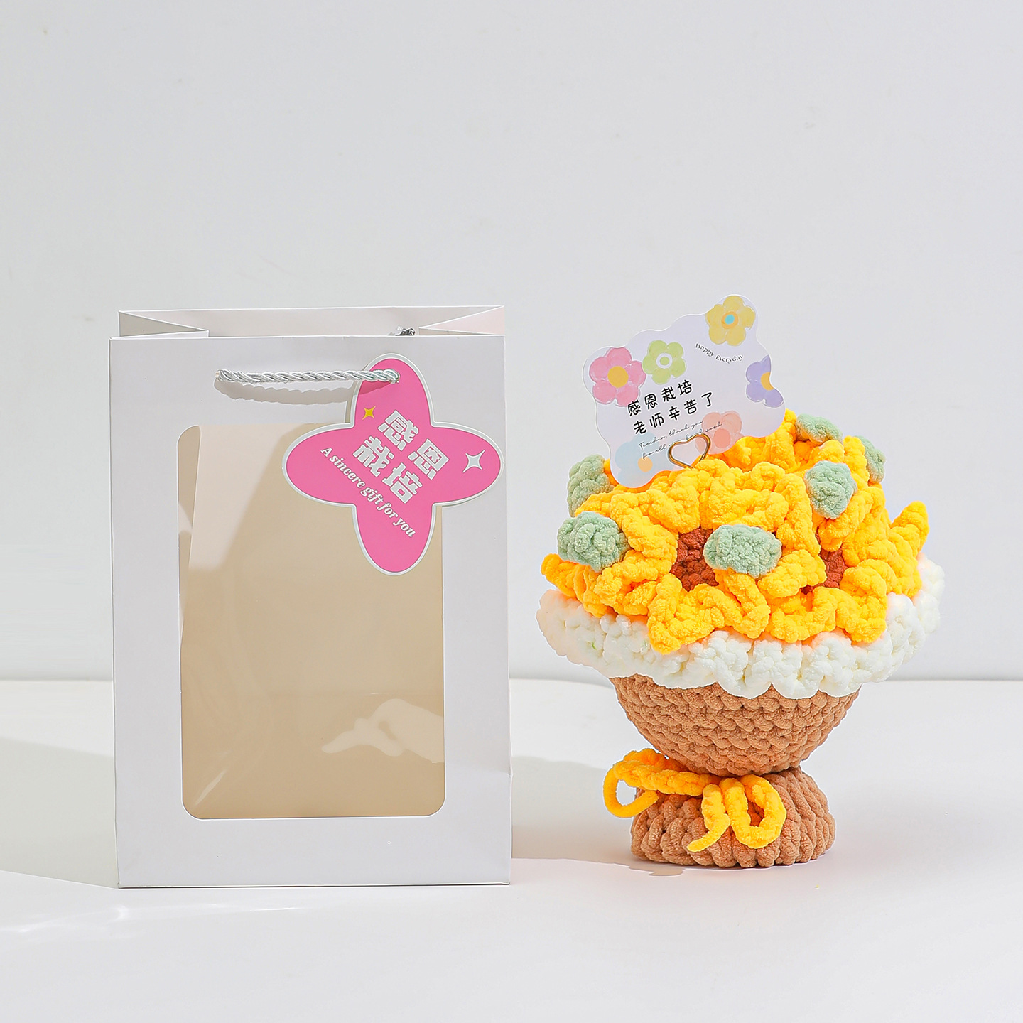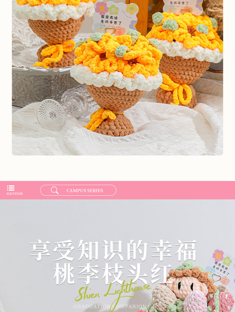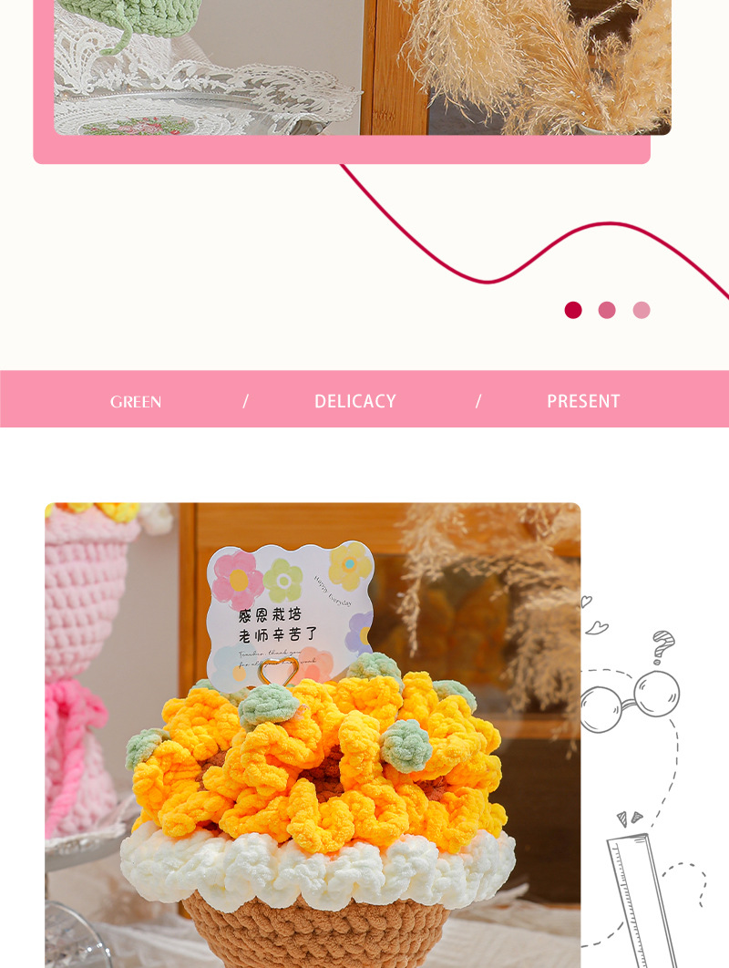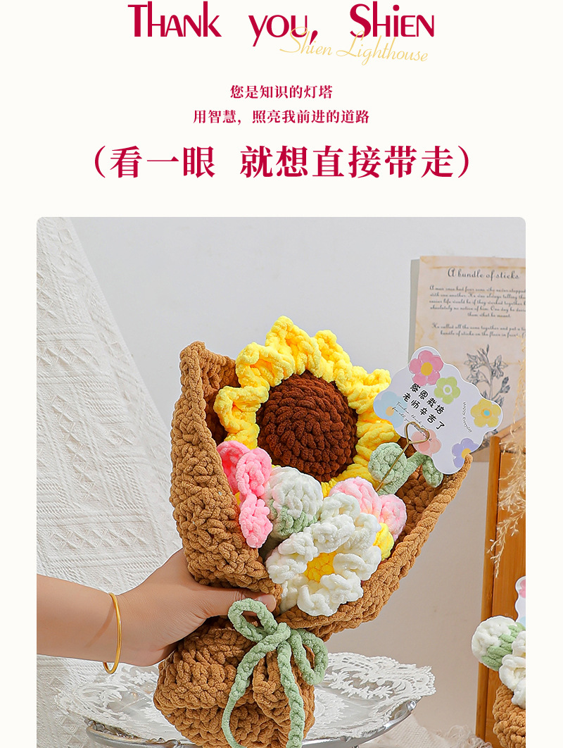 生日礼物创意手工编织针织毛线向日葵花束教师节仪式感七夕毕业季