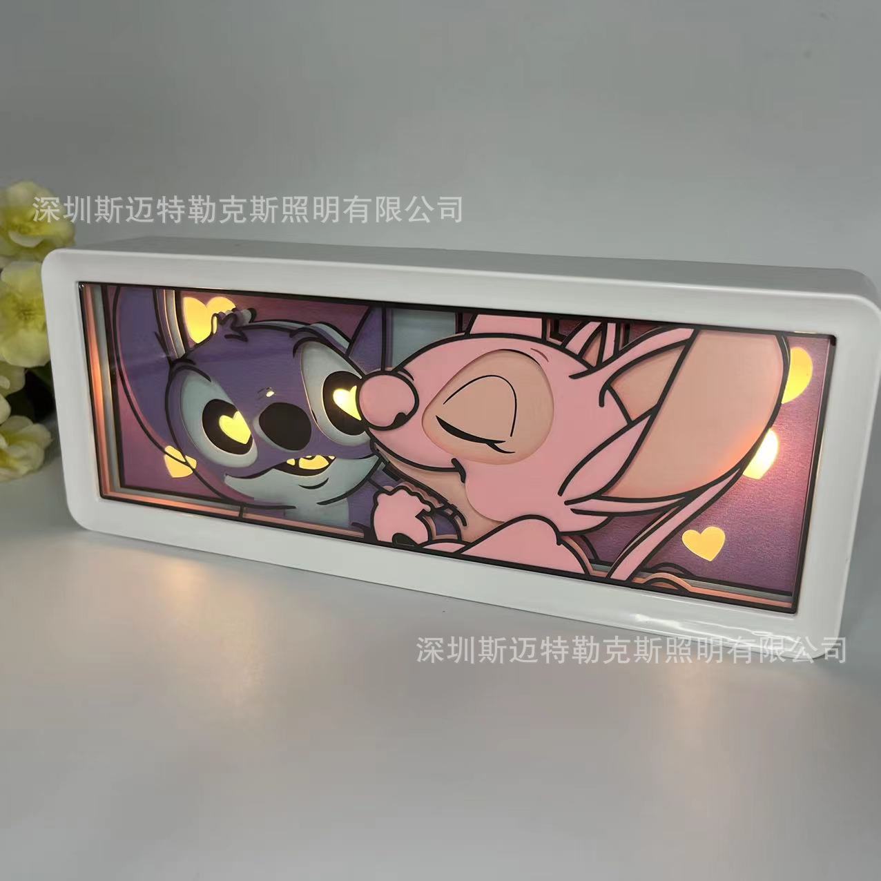 七夕礼物史迪奇安琪纸雕灯房间桌面装饰小夜灯床头灯送女友玩偶