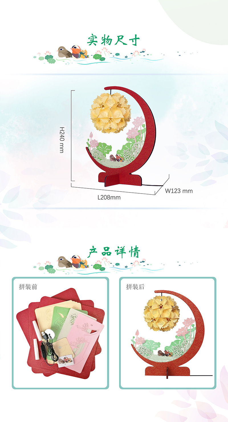 七夕文创荷塘月色手工礼物情人节母亲节创意礼品装饰小夜灯纸雕灯