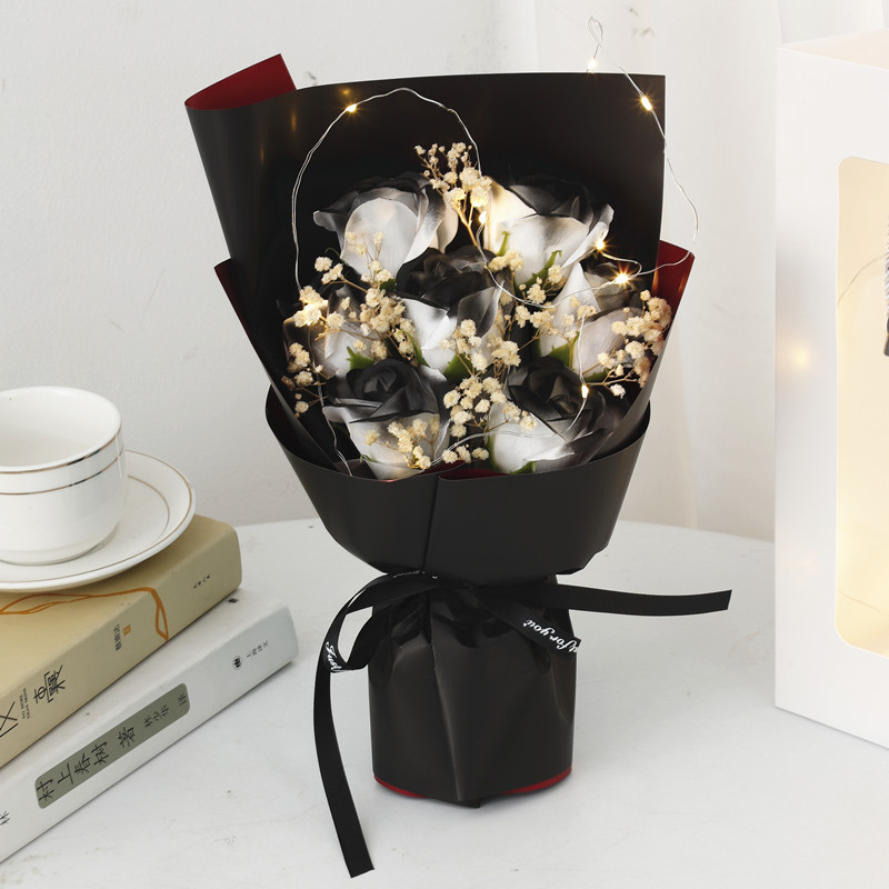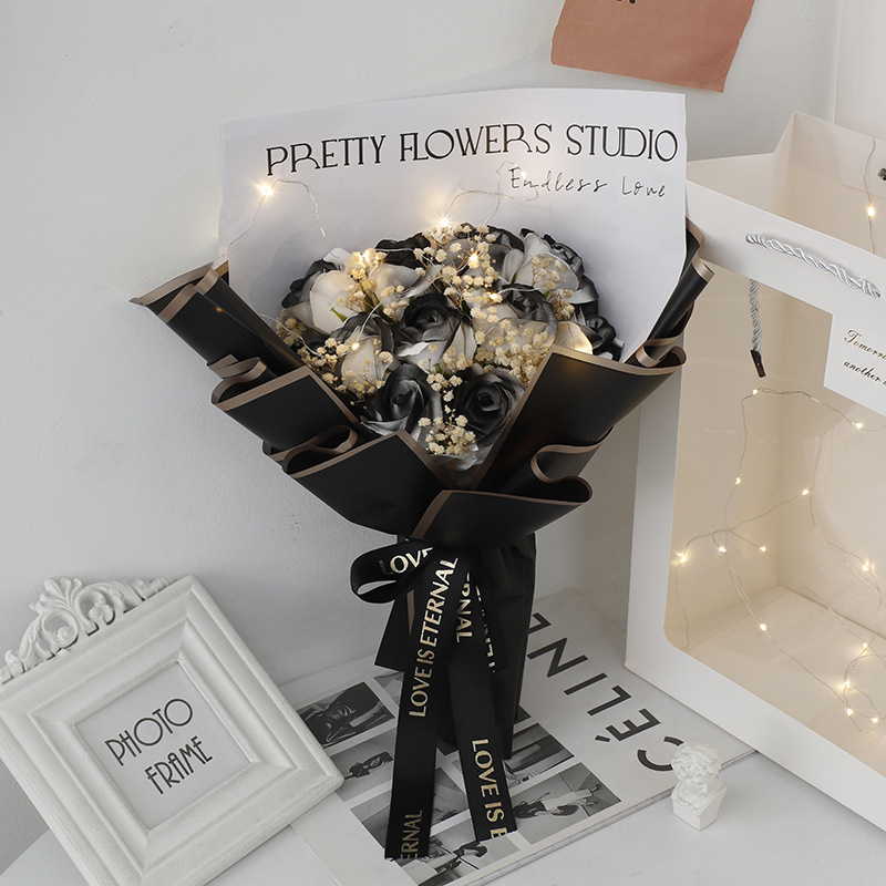 情人节七夕生日礼物19朵碎冰蓝香皂玫瑰满天星干花束送男女友老婆