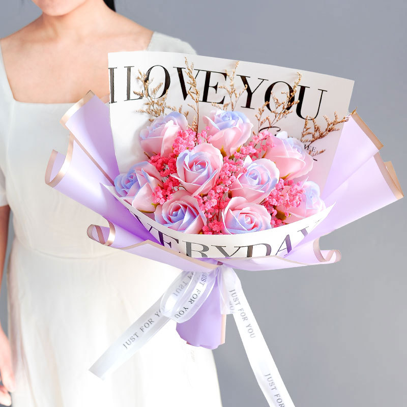 跨境七夕情人节礼物香皂花小花束送女友生日礼物碎冰蓝玫瑰成品