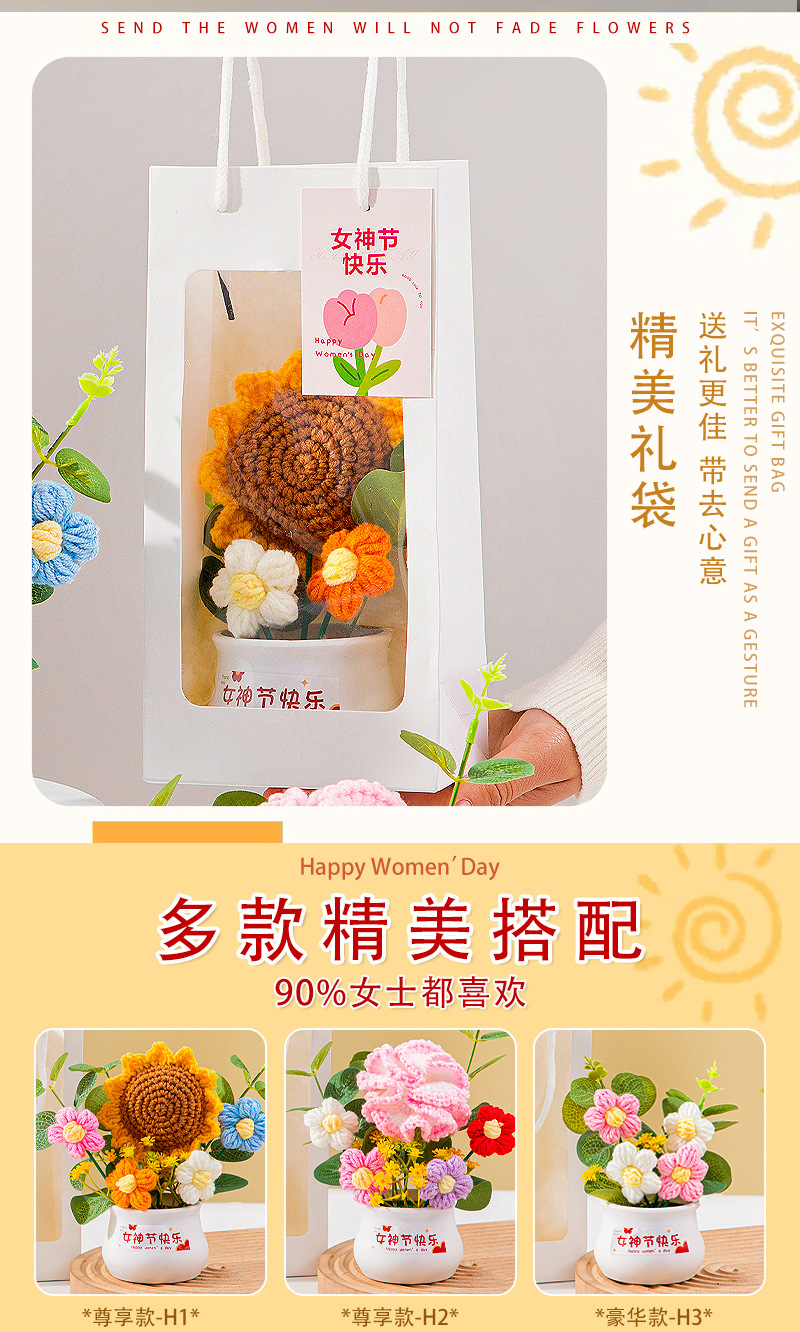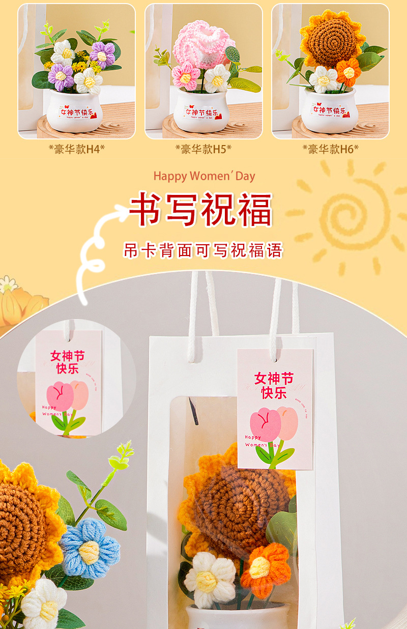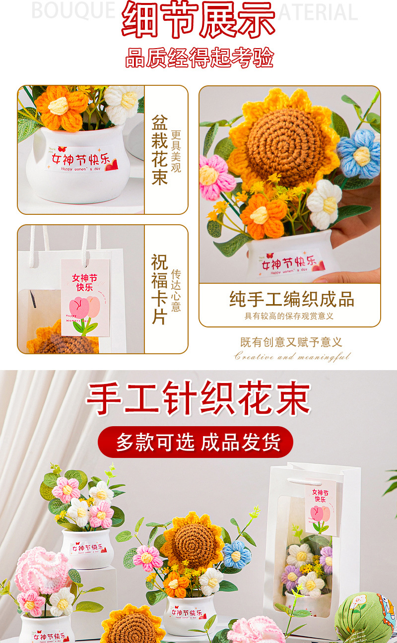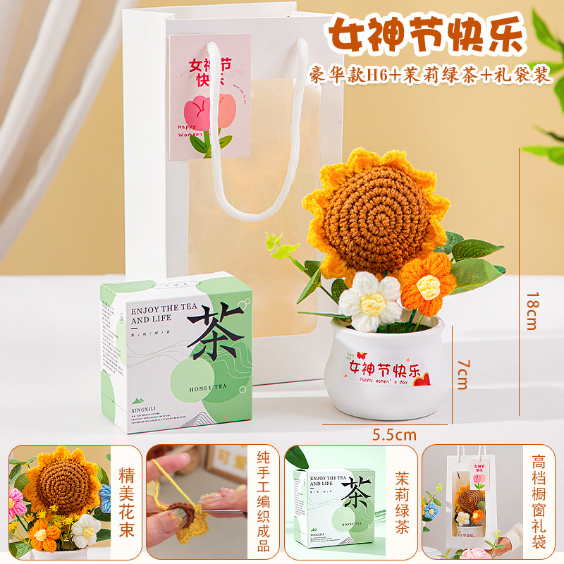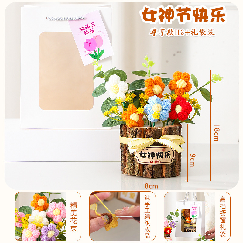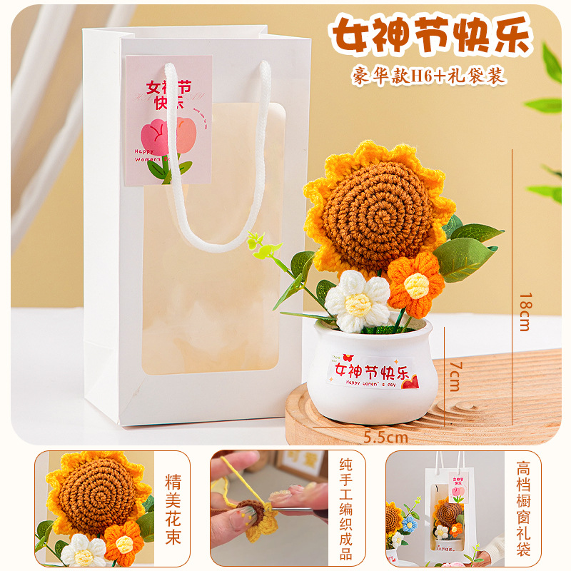 七夕情人节礼物高级感送女生小礼品向日葵针织花束妈妈生日伴手礼