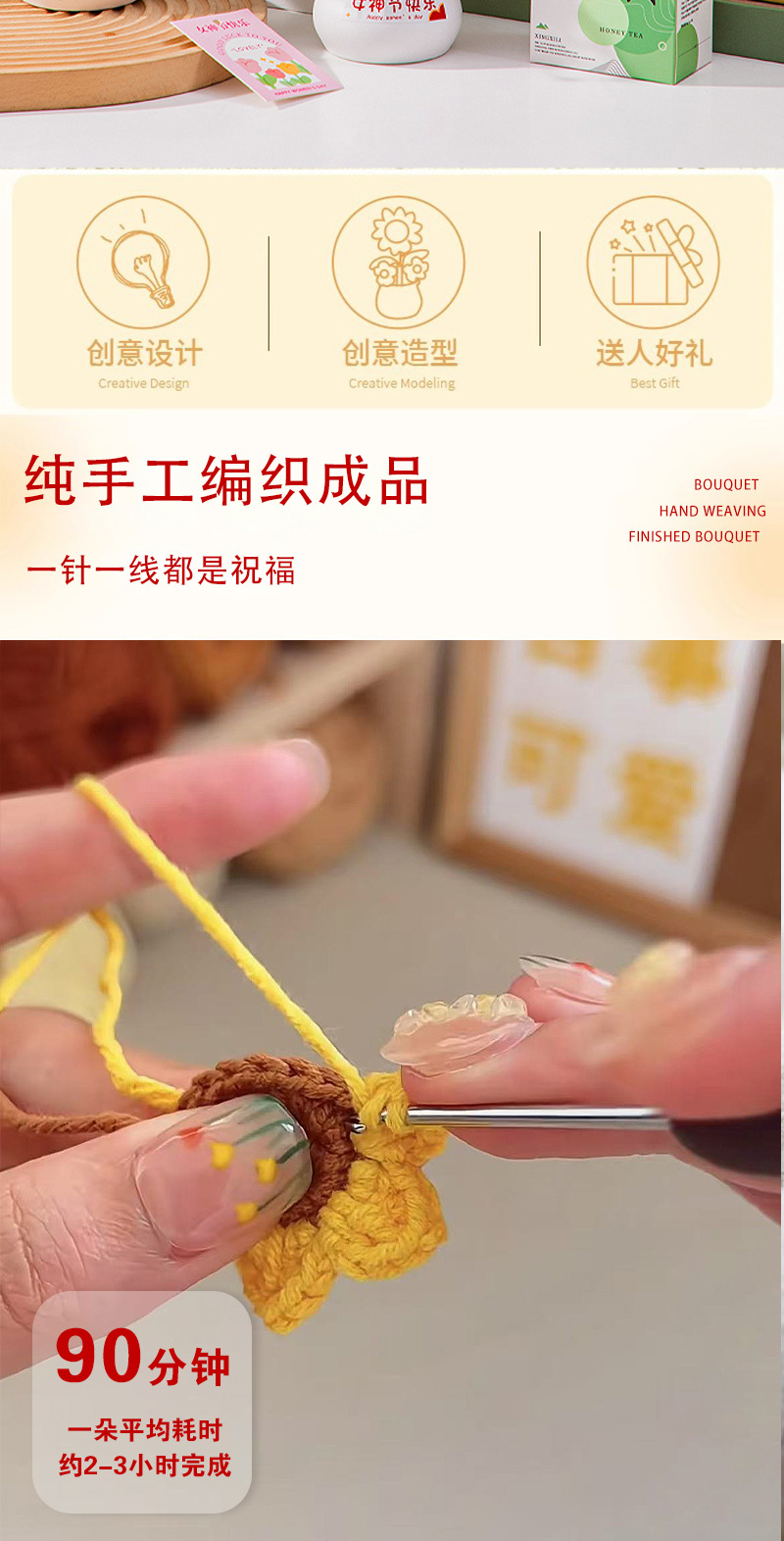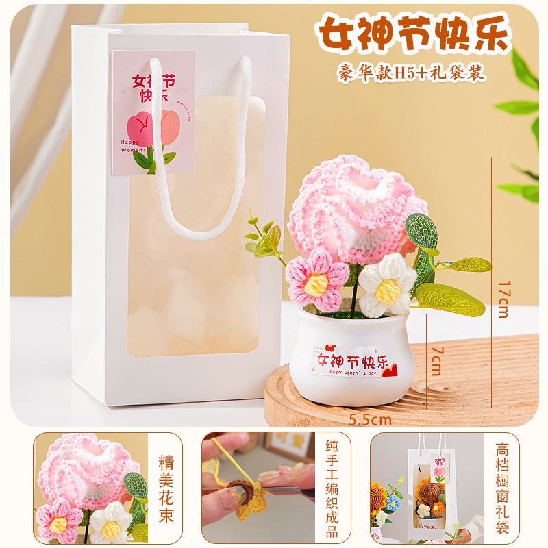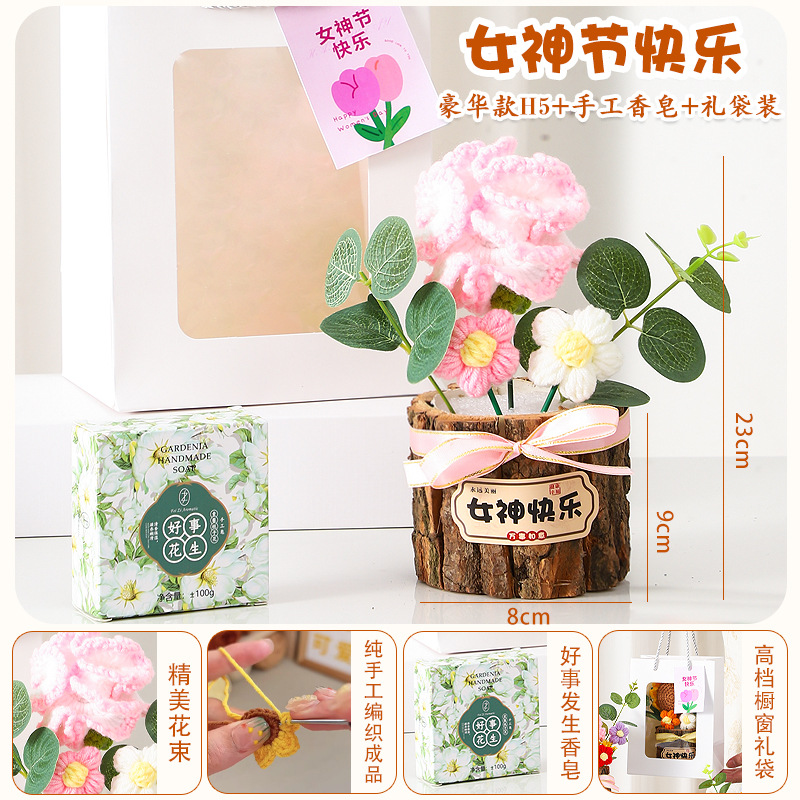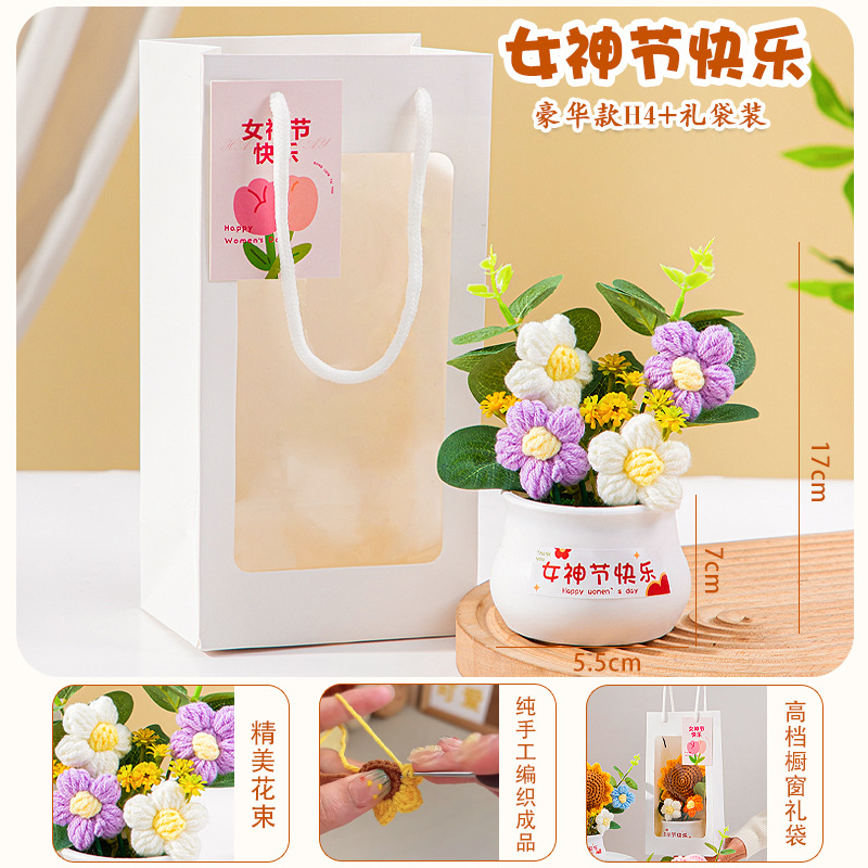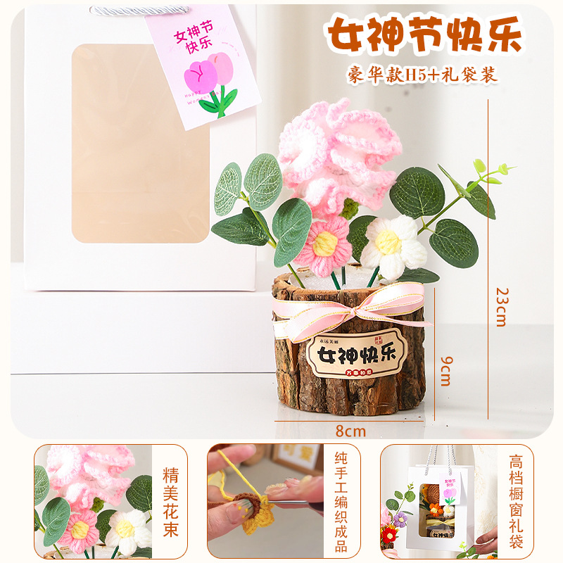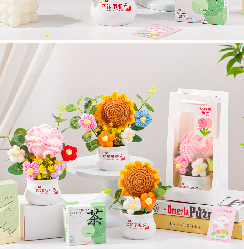 七夕情人节礼物高级感送女生小礼品向日葵针织花束妈妈生日伴手礼