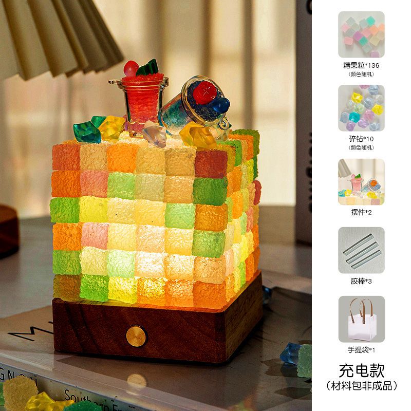 七夕情人节摆件方糖糖果小夜灯情侣生日装饰灯闺蜜手工diy礼物