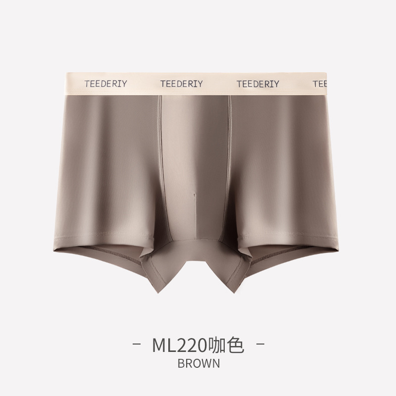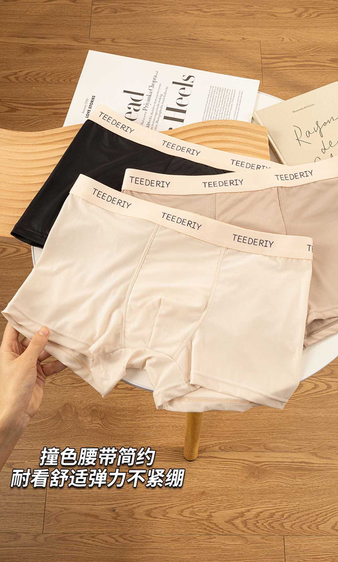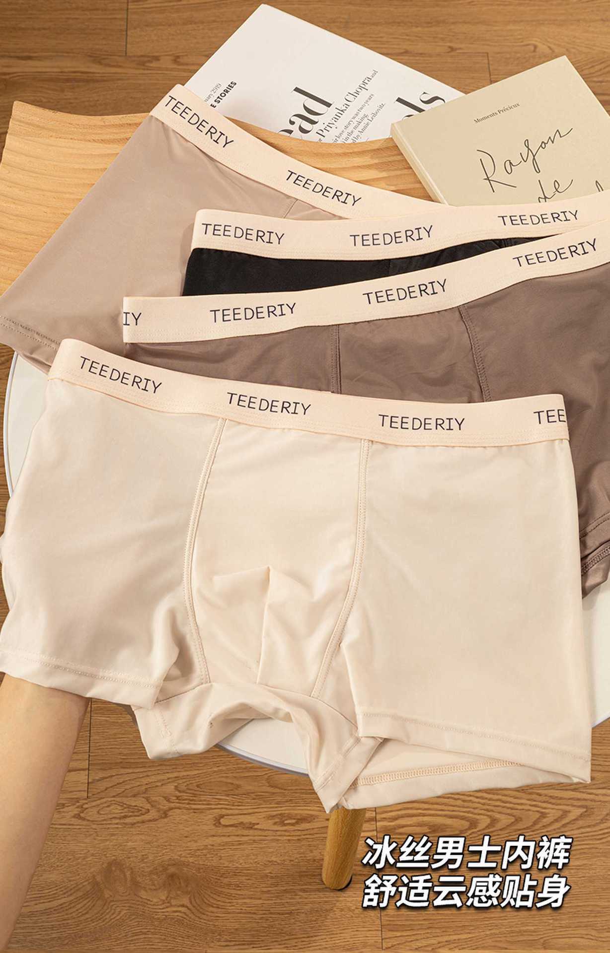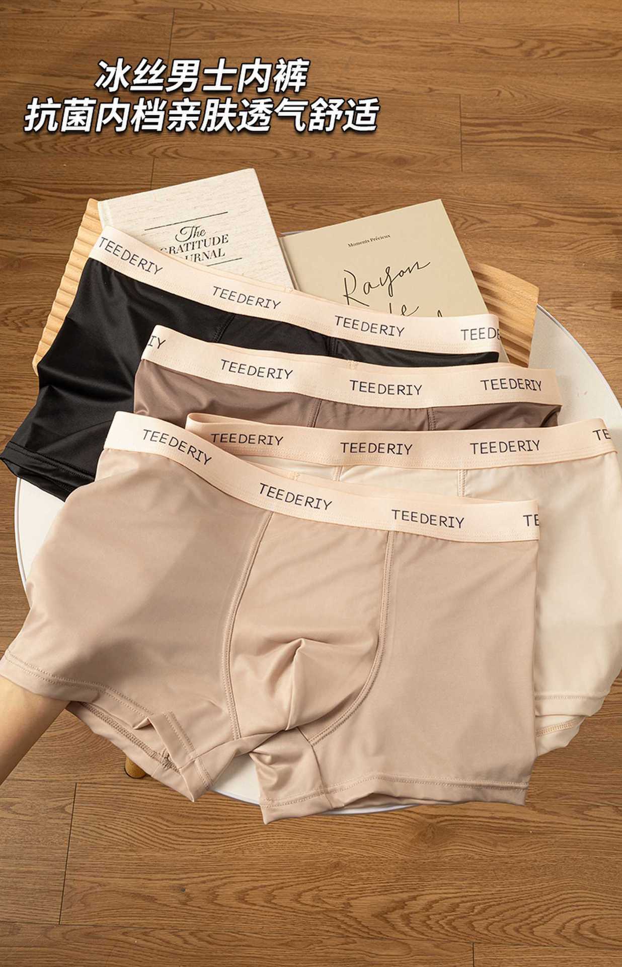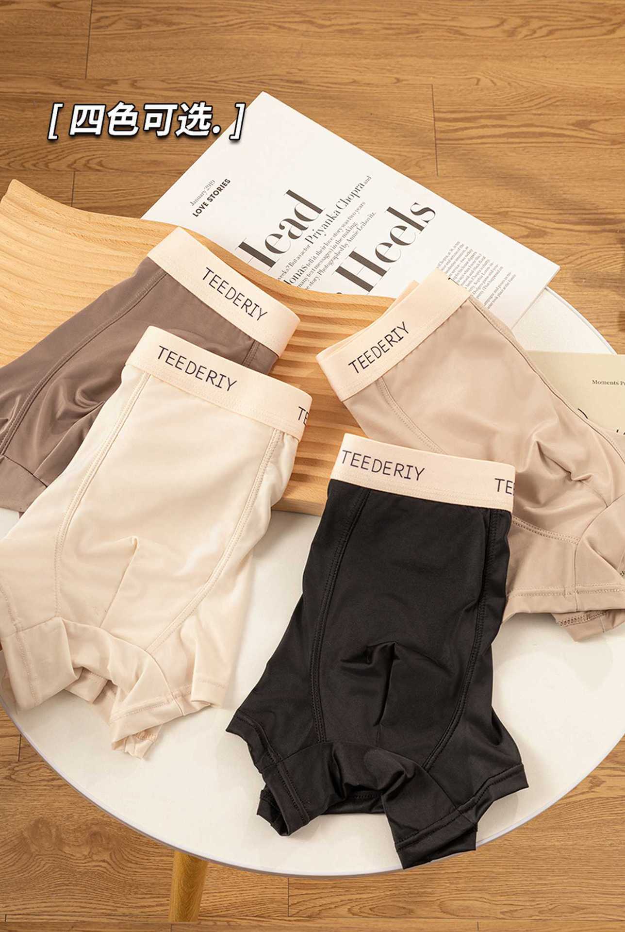 小香风纯色英文无痕冰丝大码男士内裤中腰亲肤透气男士平角内裤头