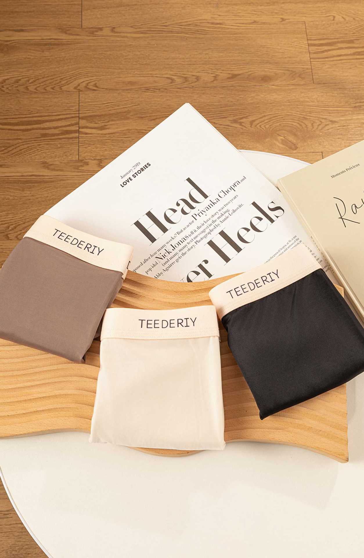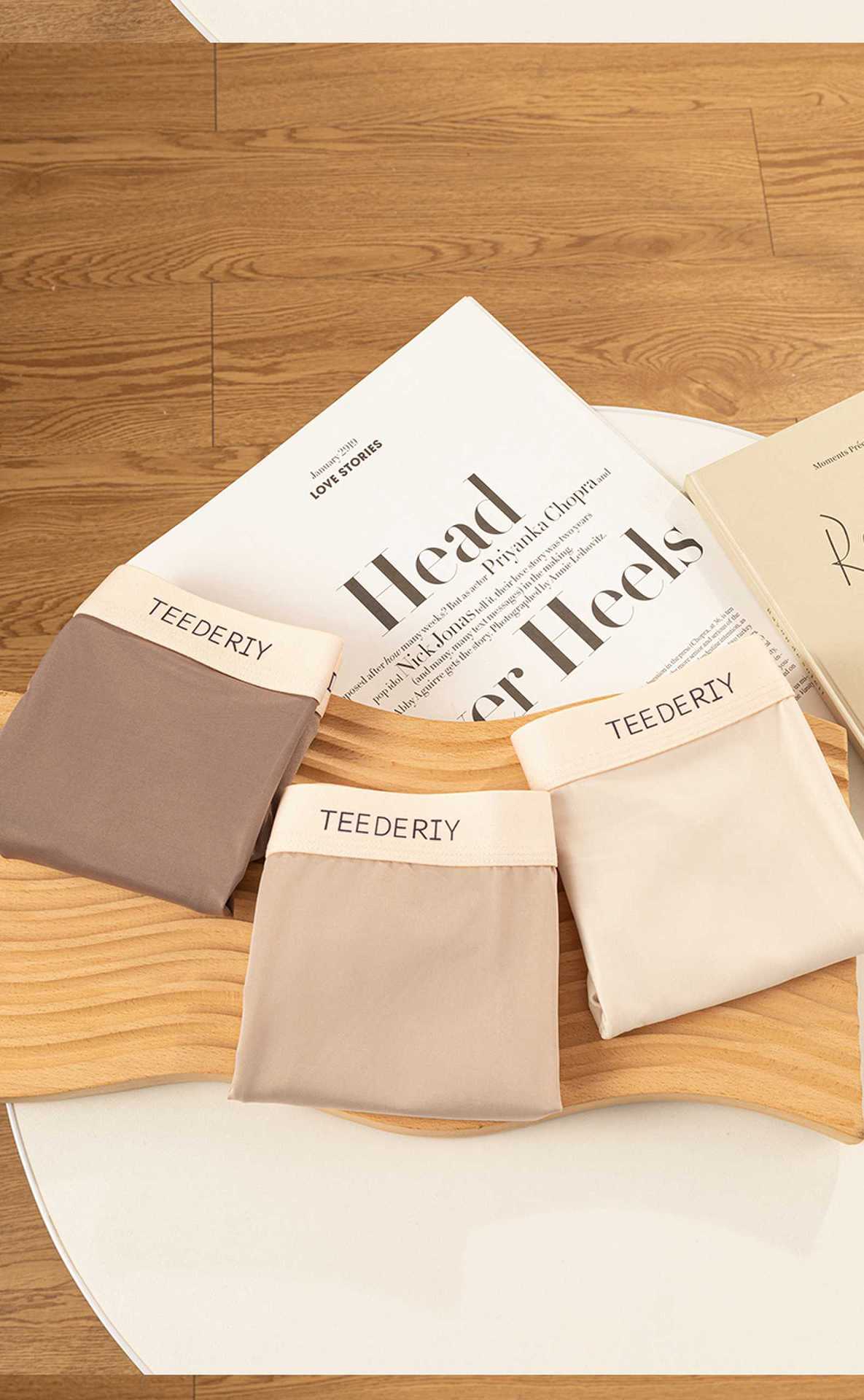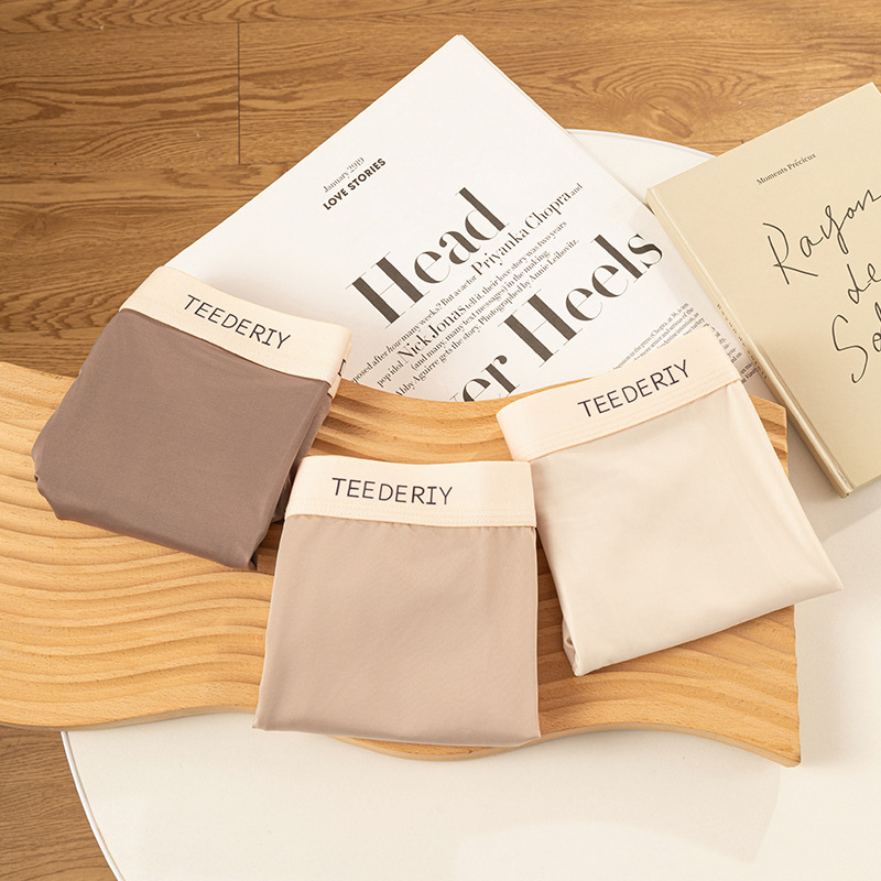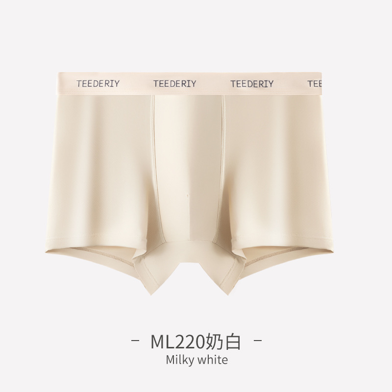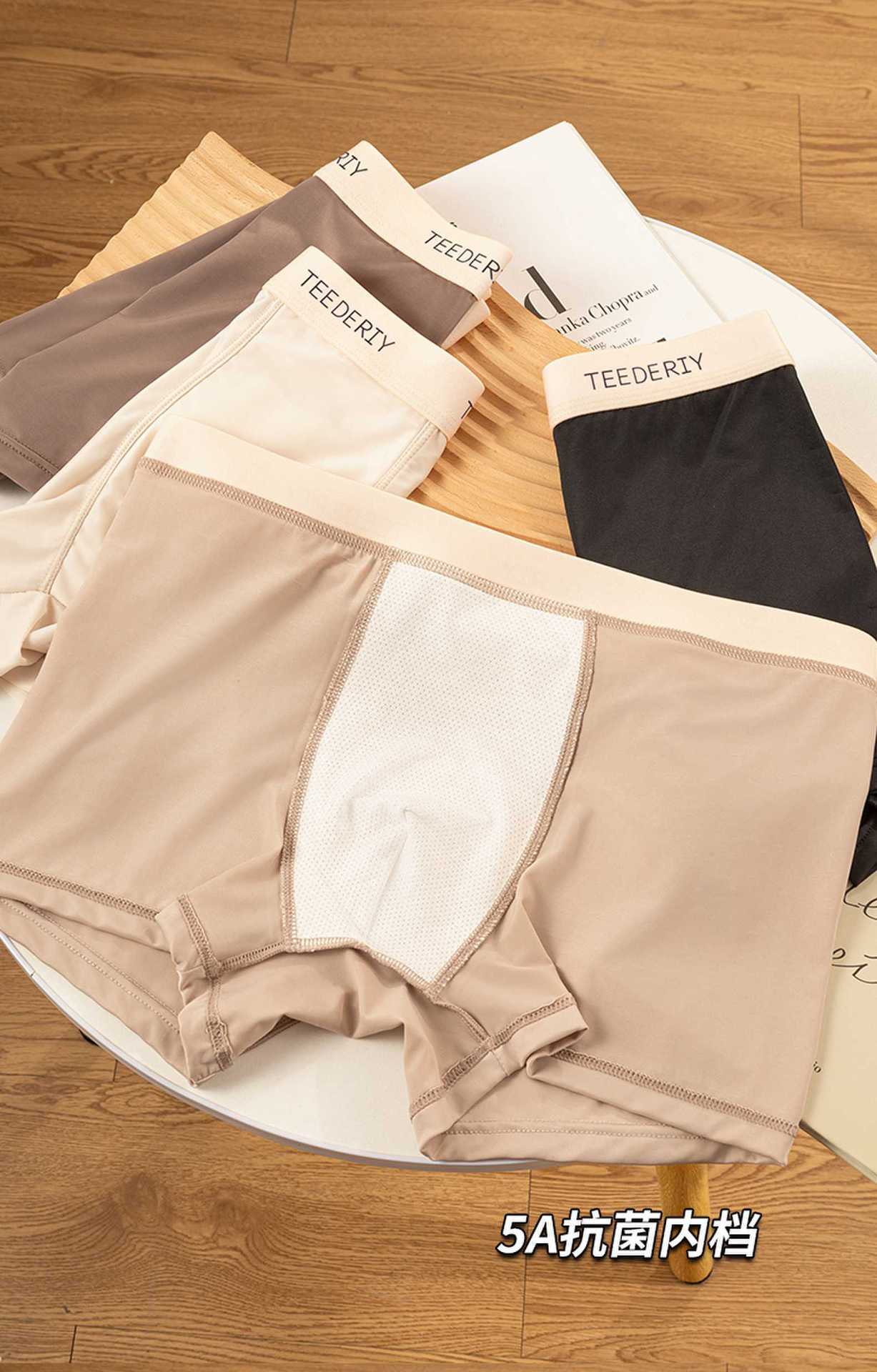 小香风纯色英文无痕冰丝大码男士内裤中腰亲肤透气男士平角内裤头